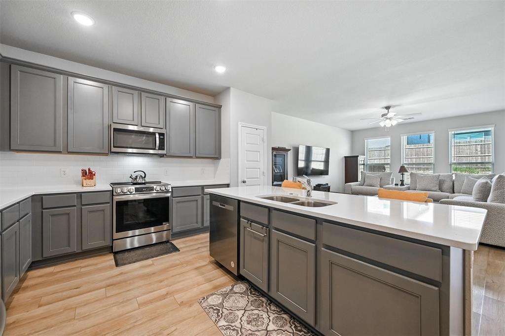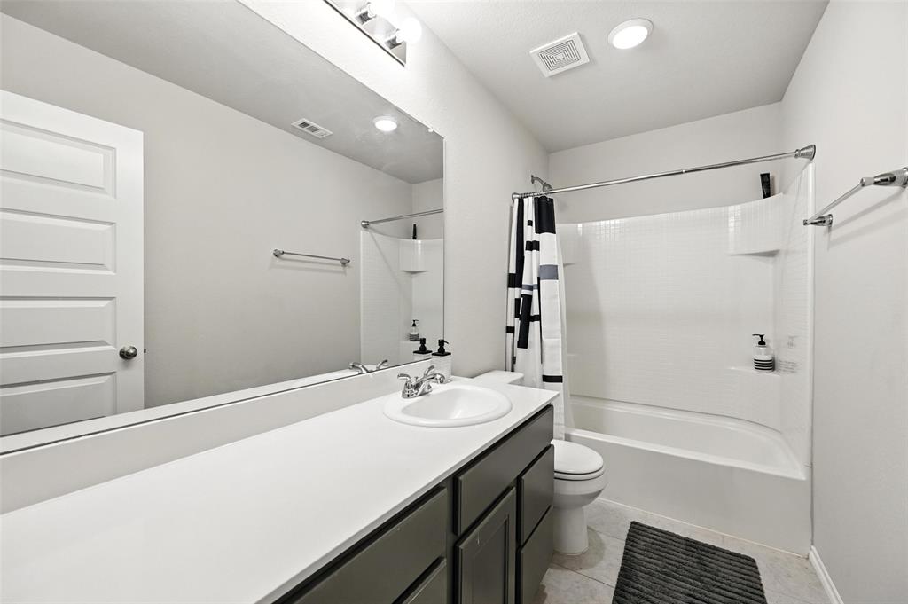 This amazing home located in the Lake Vista subdivision has 4 bedrooms and 3 full bathrooms, 2 car garage with spacious upstairs game room. The home offers 9 ft ceilings to an open floor plan with a kitchen overlooking the family room with master bedroom located on the first floor. Luxury vinyl plank flooring was installed throughout the home with carpet adorning the bedrooms in addition to ceramic tile in the bathrooms. Quartz counter tops and SS appliances located in the kitchen for your cooking pleasure.. The Master bath features a garden tub , separate shower with double vanity sinks,with a walk-in closet. This home is also close to Eagle mountain lake and some shopping destinations for the entire family to enjoy.