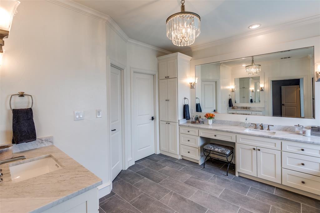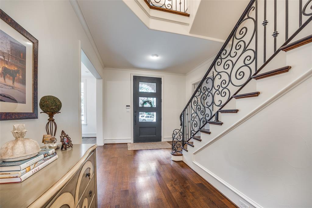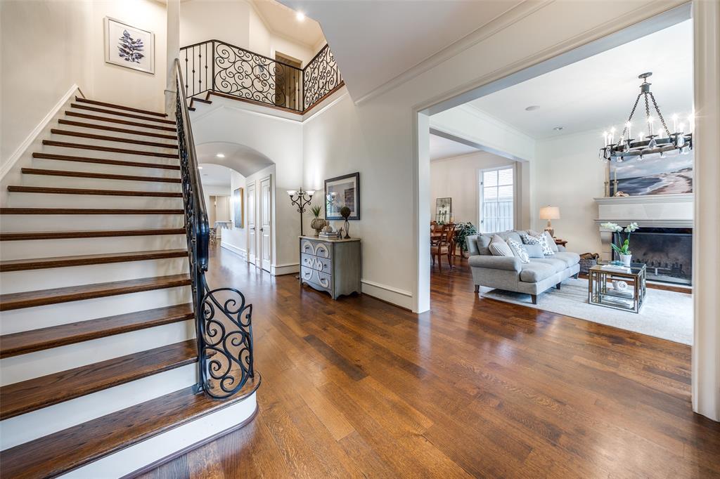 This wonderful University Park home combines classic architecture with modern updates, creating a place that’s both elegant and inviting. The first floor welcomes you with a generous entry and flowing layout including formal living and dining areas, a cozy study with built-ins, and a marble kitchen that opens to the breakfast nook and family room with fireplace. From here, French doors lead to a covered patio with its own fireplace, overlooking the pool and lush landscaping - a perfect spot for entertaining or quiet evenings.