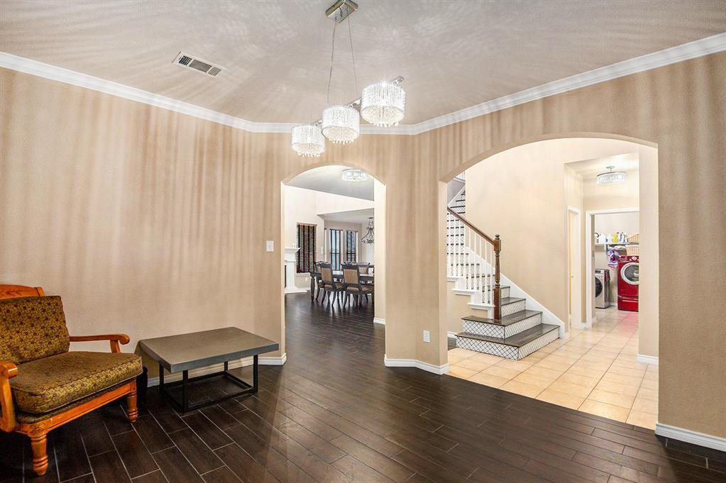 Nestled in a peaceful Saginaw neighborhood, this elegant two-story home combines modern design with inviting charm. As you enter, you're greeted by a bright, open-concept space with soaring ceilings and stunning tile flooring—perfect for both family living and entertaining.