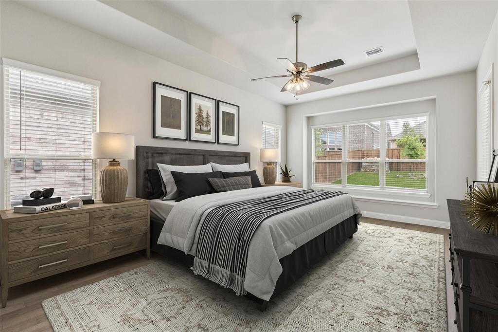 Mortgage savings may be available for buyers of this listing. This magazine worthy home offers show-stopping appeal & numerous upgrades that will put this gem at the top of your list! Once inside, you are welcomed by an abundance of natural lighting, grand spaciousness, soft neutral colors, and beautiful wood floors that flow throughout the main areas! The thoughtfully designed living room showcases double story ceilings, wall of windows, floor to ceiling stone fireplace, and connects seamlessly to the gourmet kitchen, offering an open airy layout ideal for easy entertaining & socializing while cooking! Speaking of cooking----this gourmet kitchen shows like a model home & comes equipped with chef's grade stainless steel appliances, double ovens, gas burner cooktop & custom vent hood, a large center island, gorgeous granite, and designer backsplash! The main level split primary retreat allows for privacy, and features an ensuite with a walk-in closet, large walk-in shower, and even larger soaking tub to unwind after a long day. There is also a dedicated office, a guest bedroom and a full bath on the main floor, perfect for visitors or multigenerational living. Upstairs, you'll find two additional bedrooms, a full bathroom, an expansive game room, and a media room. Ample storage throughout the home ensures everything has its place. The oversized backyard will certainly be the setting for many future gatherings, featuring a covered patio & tons of yard space for a trampoline, playscape, and garden for all those green thumb enthusiasts. Close proximity to the lake & about 2 miles from Sapphire Bay Marina for fun-filled weekends on the water. Conveniently located near major routes and just minutes from The Harbor—offering an exciting mix of restaurants, shopping, and vibrant entertainment options—this rare turnkey opportunity won’t last long.