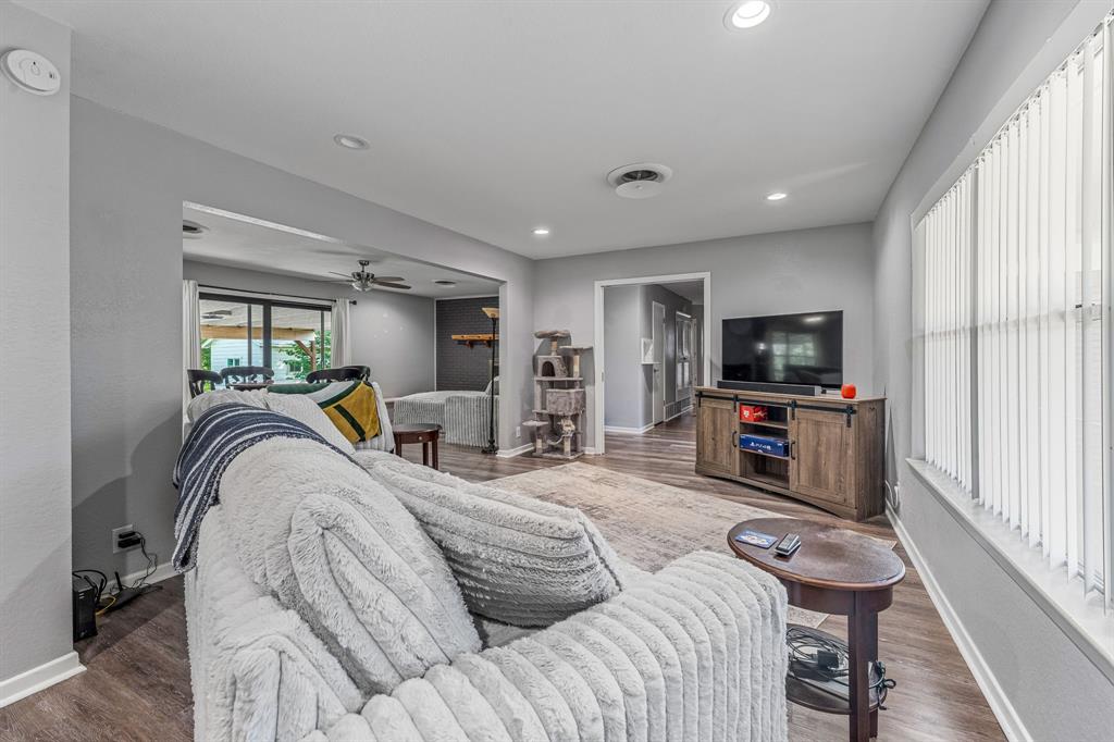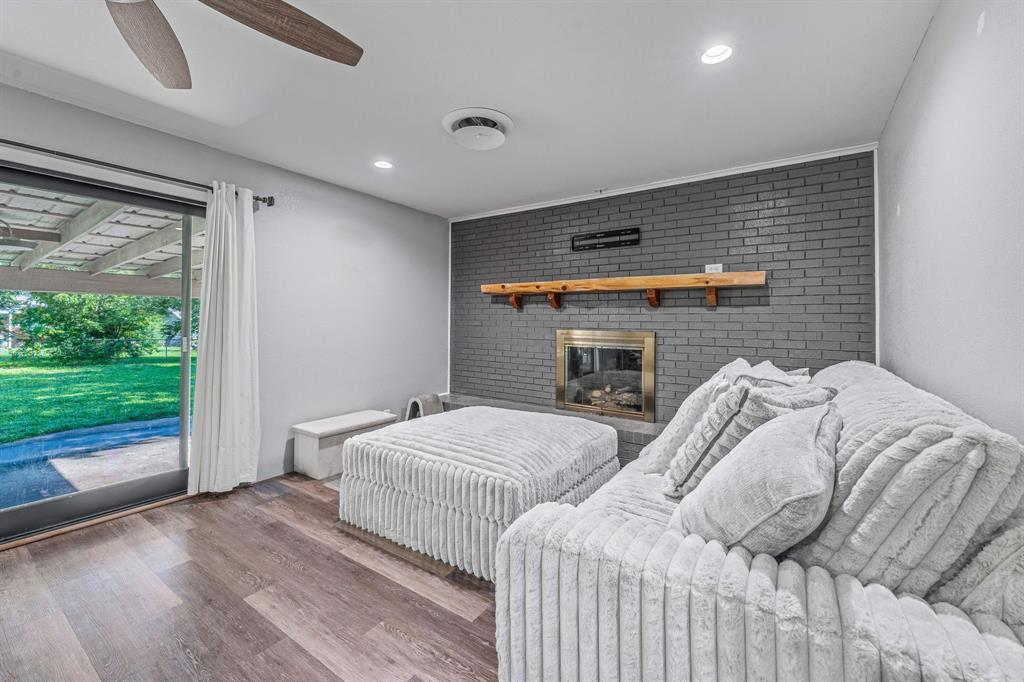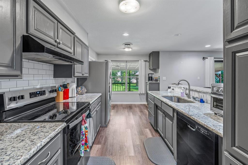 Charming, Updated Home in Prime Location! Don't miss this beautifully maintained 3-bedroom, 2-bath gem nestled in the heart of town! Featuring an open-concept layout with stylish luxury vinyl plank flooring throughout, this home offers both comfort and functionality. The modern kitchen boasts stainless steel appliances, granite countertops, and a convenient breakfast bar—perfect for entertaining or everyday living. Relax in the spacious living room with a cozy fireplace, or stretch out in the oversized family or flex room that adapts to your needs—ideal for a game room, home office, or second living area. The private primary suite offers a peaceful retreat with a walk-in closet, granite vanity, and a luxurious tiled shower. Step outside to your own backyard oasis! The covered porch overlooks a serene, park-like fenced yard with mature trees, a charming gazebo, a swing, and a workshop or storage building. Whether you're sipping coffee or hosting a barbecue, you'll love this outdoor space. Conveniently located close to the hospital, junior high, and Big Rocks Park, this home combines comfort, style, and unbeatable value. Schedule your showing today—homes like this don’t last long!