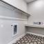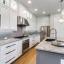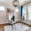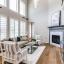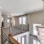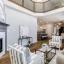 The living room is breathtaking with its 20-foot ceilings, a full wall of windows that bring in natural light and picturesque views, and a dramatic designer chandelier that anchors the space with elegance.