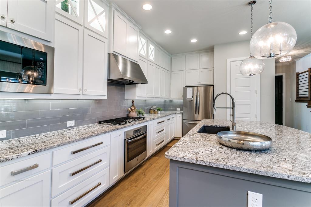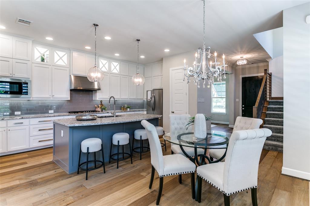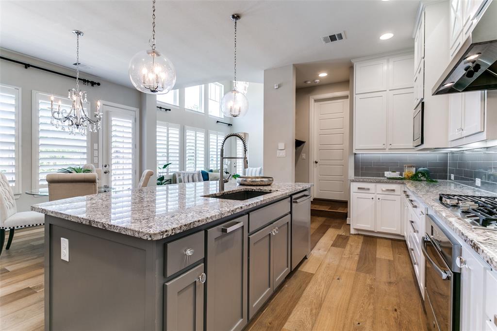 Step inside to find rich, continuous hardwood flooring, a sleek open staircase, and upscale designer lighting. The gourmet kitchen is a showpiece, featuring ceiling-height shaker cabinetry, an oversized granite island, and abundant workspace—perfect for everyday living or entertaining guests.