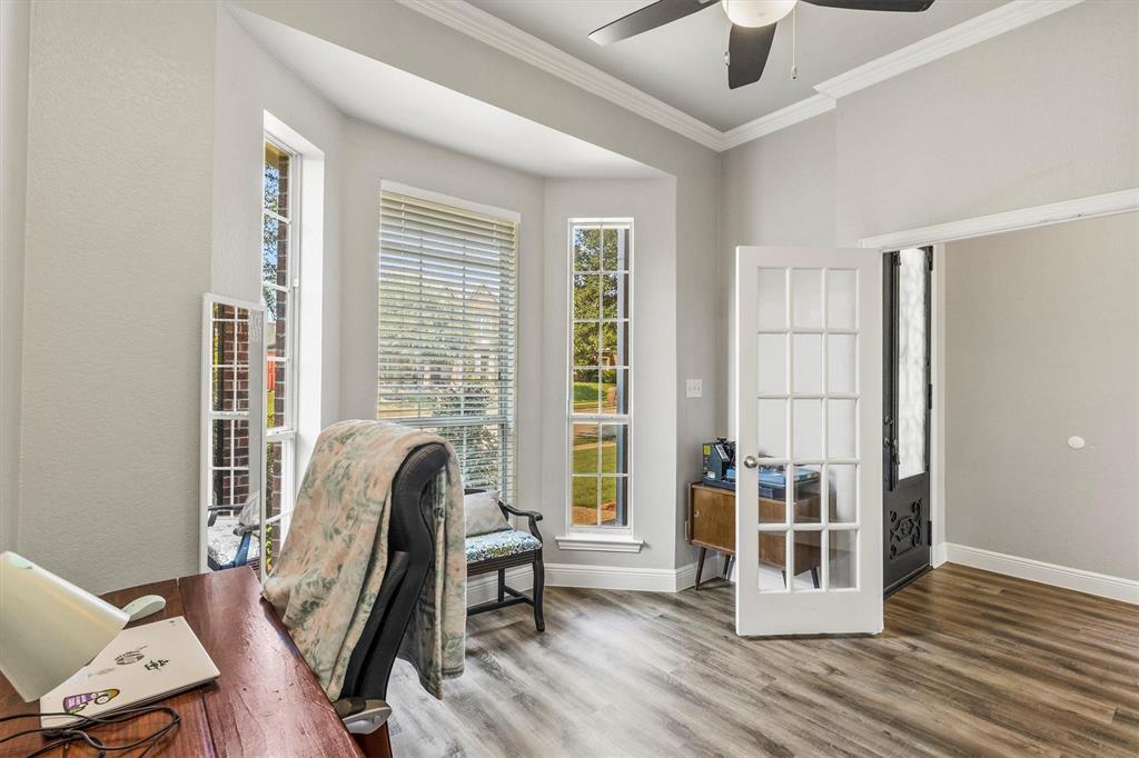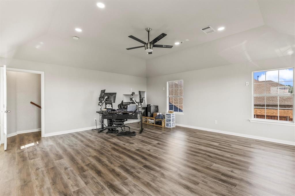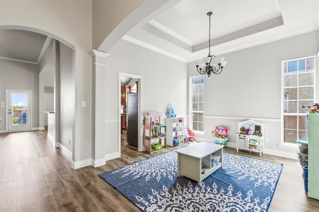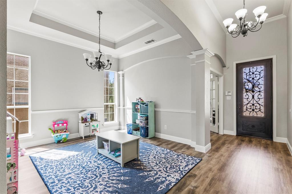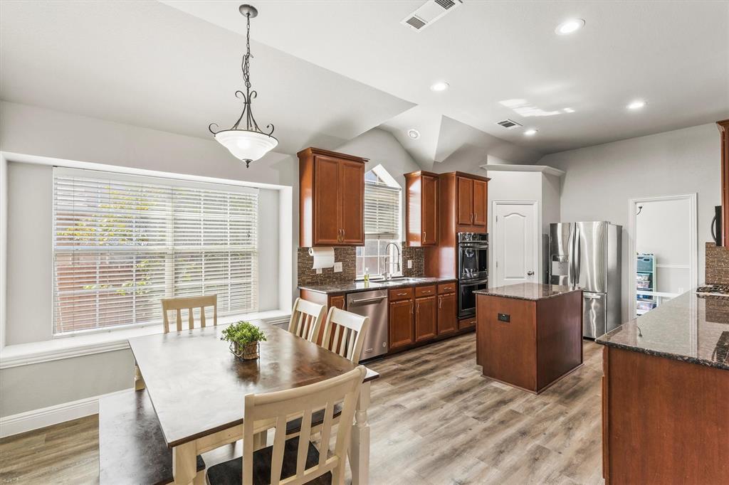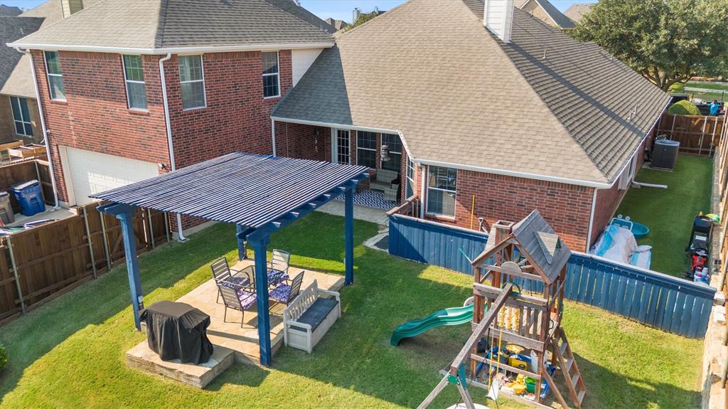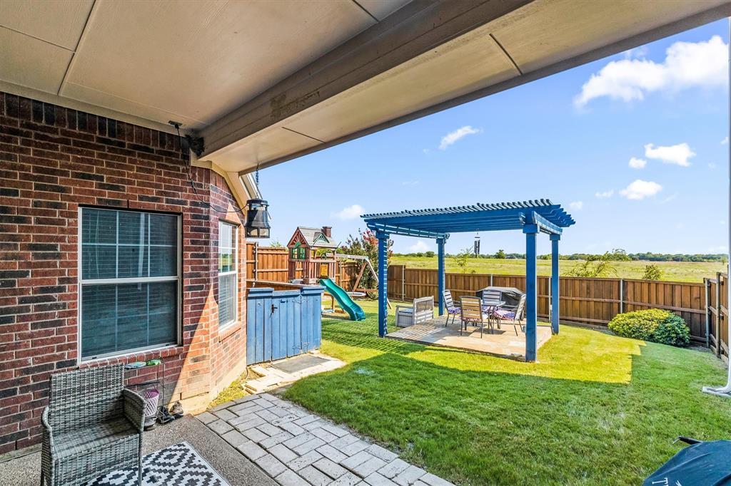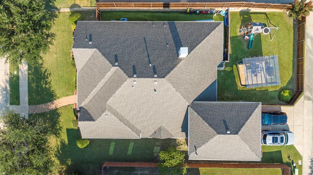 Welcome to 1728 Teakwood Dr that is a updated, move-in-ready home nestled in the highly desirable Country Ridge Estates in Wylie —where charm meets modern comfort in the best possible way. With a brand-new roof installed in July 2025, fresh paint throughout the entire house including the baseboards, newly stained fencing and pergola, and updated luxury vinyl plank and carpet (August 2025), every corner of this home is fresh, inviting, and ready for its next chapter. Step through the elegant wrought iron front door and discover spacious, thoughtfully designed interiors featuring four generously sized bedrooms, two fully renovated bathrooms, and a dedicated home office. A versatile formal dining room offers flexibility as a second office, playroom, or game room, while the upstairs enclosed media room creates the perfect retreat for movie nights or gaming. The heart of the home is the expansive kitchen with a massive island—ideal for entertaining and daily life—complemented by upgraded appliances, including a new cooktop and microwave, and double ovens. The primary suite offers a peaceful escape with a spa-inspired bathroom renovation completed in 2020. Energy-efficient living is made easy with two separate AC units—one solely dedicated to the media room—and practical upgrades like attic subflooring for extra storage, a foundation watering system (2025), and updated garage mechanics. Step outside to enjoy the private backyard oasis with no rear neighbors, a covered patio, and a charming pergola with built-in electrical—perfect for relaxing or entertaining. With a welcoming neighborhood pool and playground just down the street, this exceptional home blends style, function, and value in one of the area’s most loved communities.