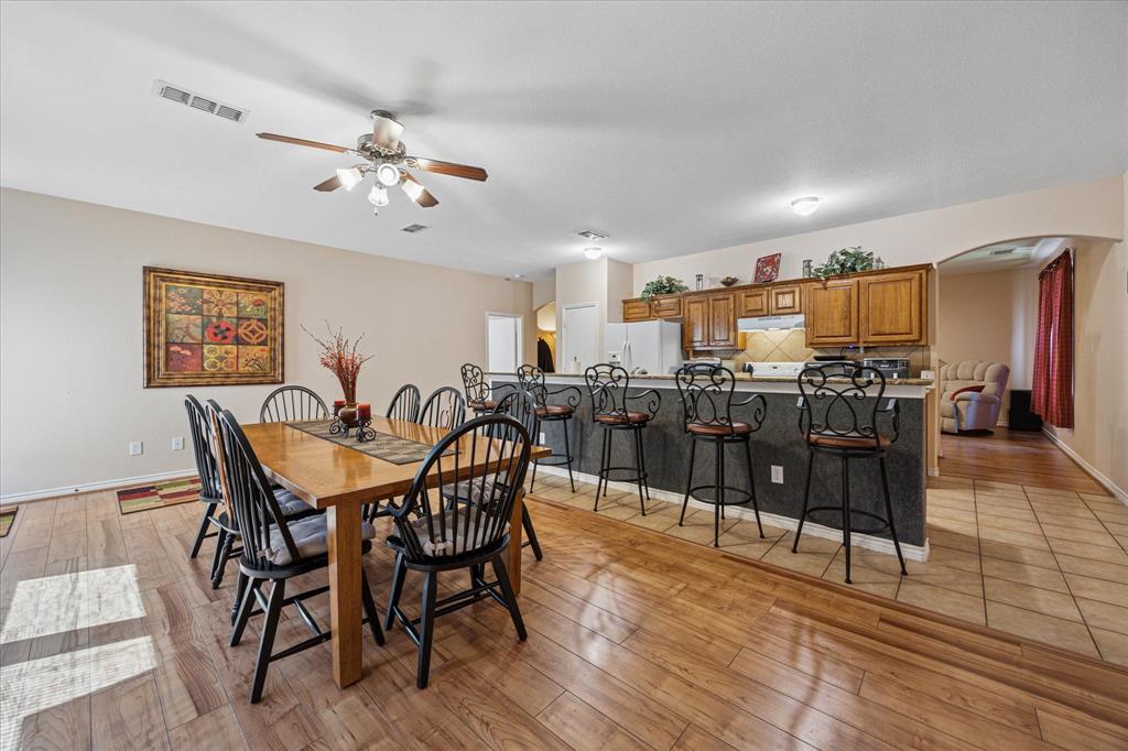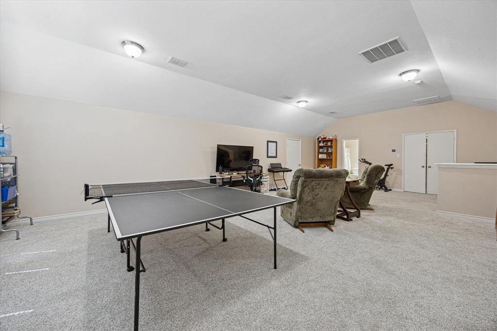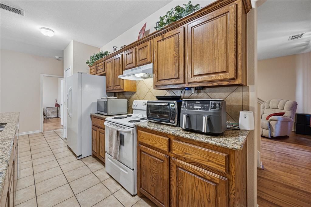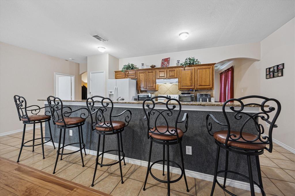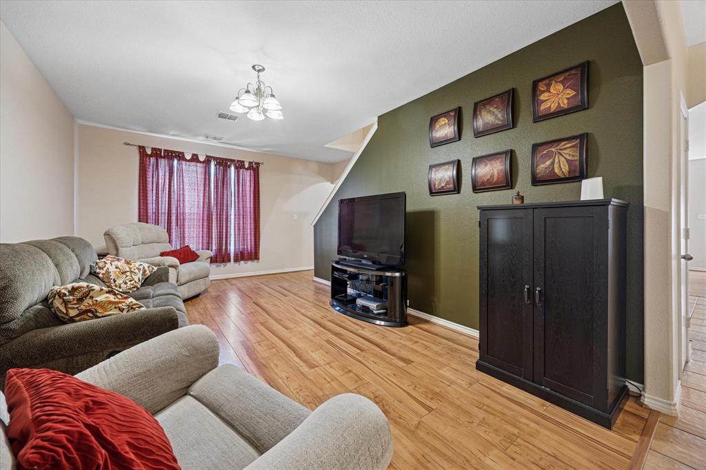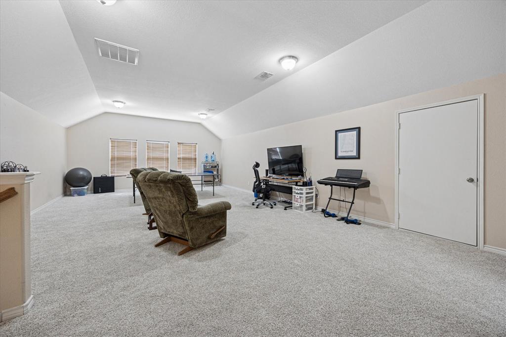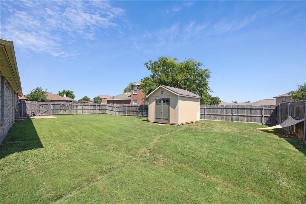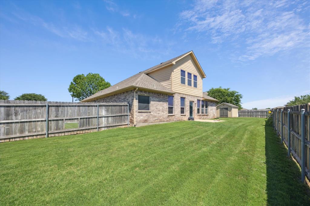 This extremely well maintained home has 4 bedrooms, 3 full bath on a lucious green corner lot. Shale Creek is a desirable neighborhood with community pool, play area and clubhouse in the incredible Northwest ISD. Great space for family gathering and entertaining friends. Two living areas to welcome everyone with a downstairs living and an Xlarge flex space upstairs that is a blank canvas with a full bathroom. In heart of the home you will find a Texas size kitchen with island and breakfast bar, family dining area that overlooks the backyard. Primary bedroom is big enough for a seating area with an ensuite bathroom with large master closet. Primary suite is split from other bedrooms allowing more privacy and Spa like bathroom is a great place to escape from the busy life. Home offers amazing storage and big closets. Secondary bedrooms all downstairs with a shared bathroom. Extra concrete poured by builder to allow for extra parking. Backyard is welcoming and has plenty of space for play, garden and so much more.