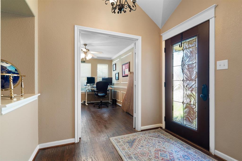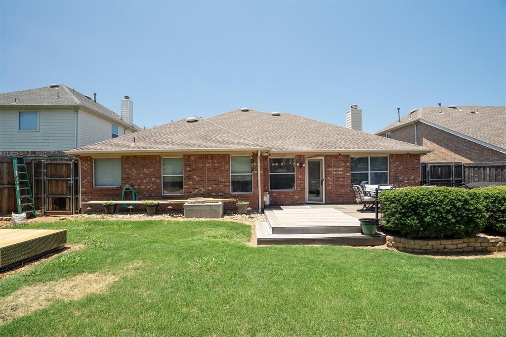 Upgraded Lennar Home in Sunset Pointe! Greeted w Handscraped Hardwood Floors Throughout Living Areas & Owners Retreat, Study w French Doors, Vaulted Ceiling Entry onlooking Dining Room...Flows Seamlessly into this Open Concept Floorplan w Spacious Kitchen...Granite Countertops, Large Counter Height Breakfast Bar, Coffee Bar & Walking Pantry...Onlooking Generous Size Nook & Living Room w Corner Fireplace. Bedrooms are Separate from Living Areas...Offering Additional Privacy. Primary Suite w Hardwood Floors, Vaulted Ceilings, Ceiling Fan & Ensuite Bath...Dual Sinks, Garden Tub, Separate Shower & Walkin Closet. 3 Secondary Bedrooms w Carpet & Full Bath. Plenty of Entertaining Space in the Backyard...Generous Size Deck for Grilling, Chilling & Relaxing while still having Plenty of Room for the Kids & 4 Legged Friends to Roam & Play! Community Features Pool, Park, Walking Distance to Lakeview Elementary & Lake Lewisville!