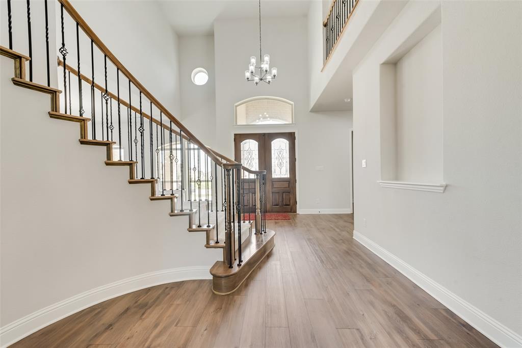 5K Seller credit available for rate buydown or closing cost assistance! Constructed by First Texas Homes in 2022, this stunning residence boasts four spacious bedrooms and three and a half luxurious bathrooms. The home features an elegant curved staircase and a gourmet island kitchen, complete with a breakfast bar, double oven, custom cabinetry, and a decorative wood cabinet vent above the cooktop. The butler’s pantry is adorned with quartz countertops, adding a touch of sophistication. The master suite offers a spa-like experience with a bench seat in the shower and a garden-style soaking tub. The media room is perfect for entertainment, featuring a bar area and pre-wired surround sound that extends throughout the house. Upgraded flooring enhances the formal areas, entryway, and family room, providing a seamless flow and elegant ambiance. Situated on a corner lot, this property includes a two-car garage with epoxy floor and an 8-foot smart side wood garage door and showcases an upgraded elevation with beautiful brick accents. The sizable covered back patio is ideal for outdoor gatherings, and the central vacuum system adds convenience to daily living. This residence is a must-see and is ready for immediate occupancy.
