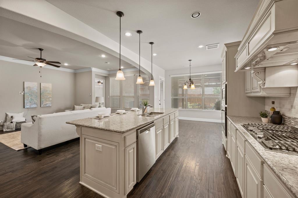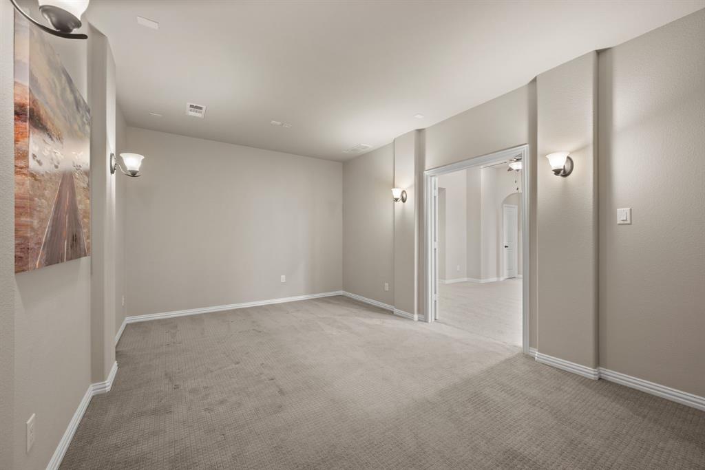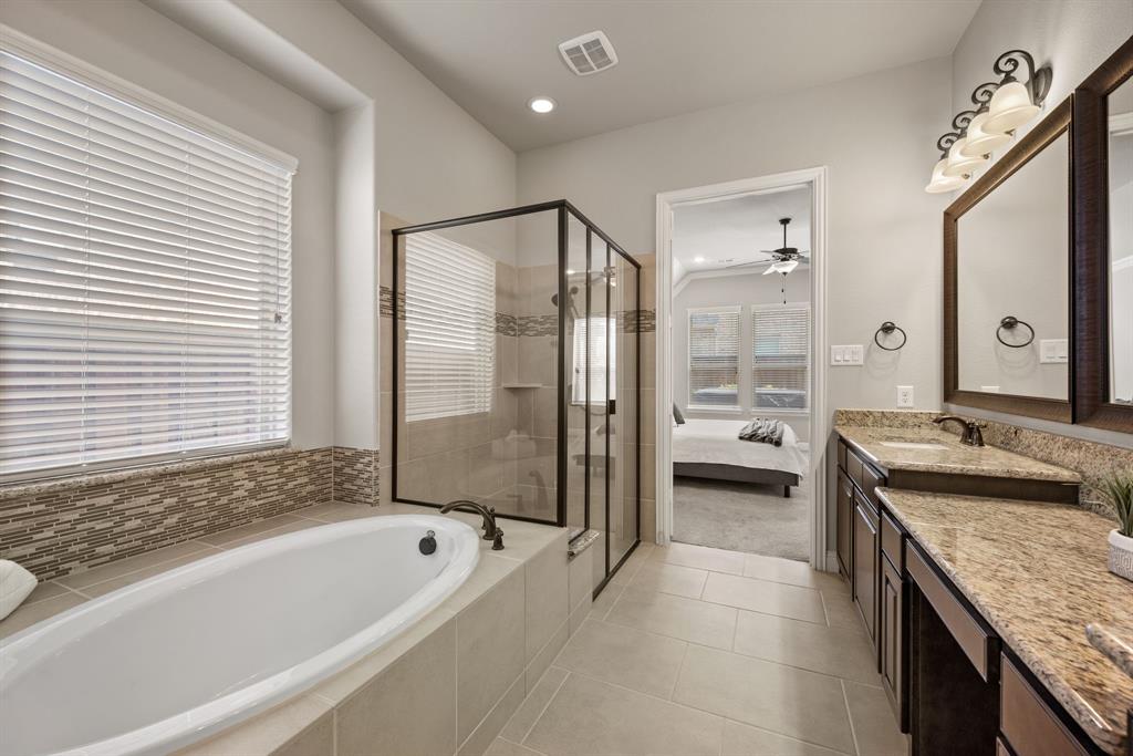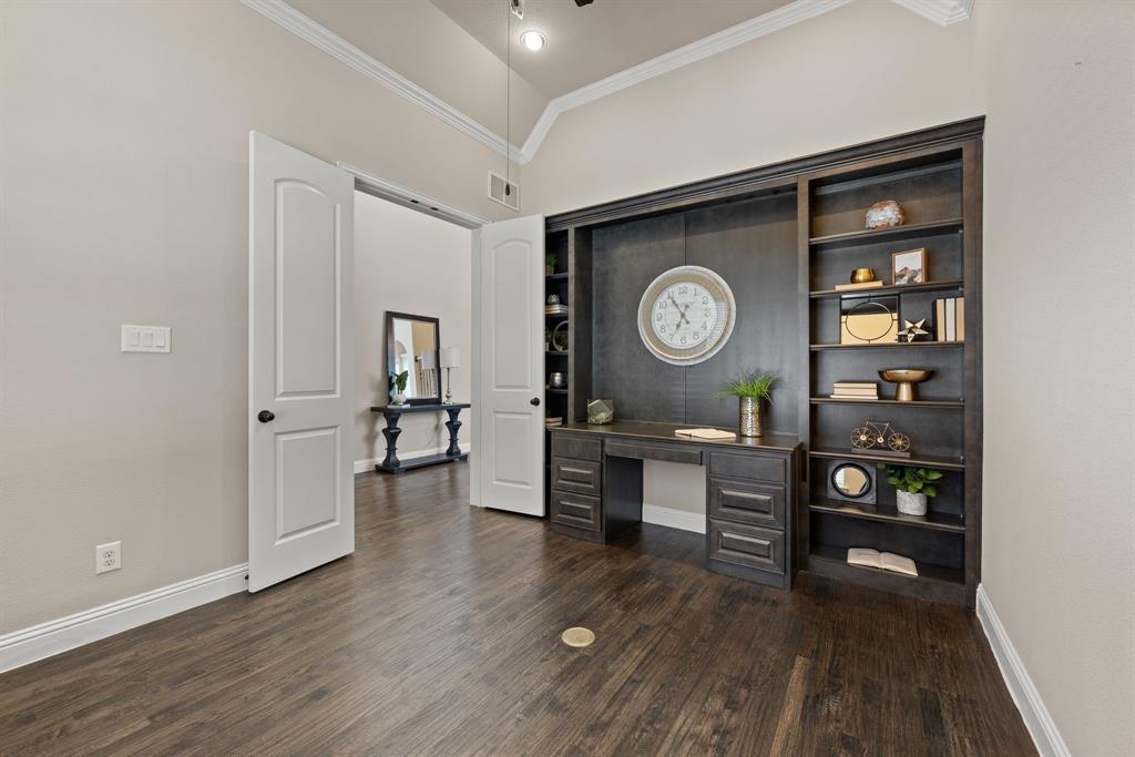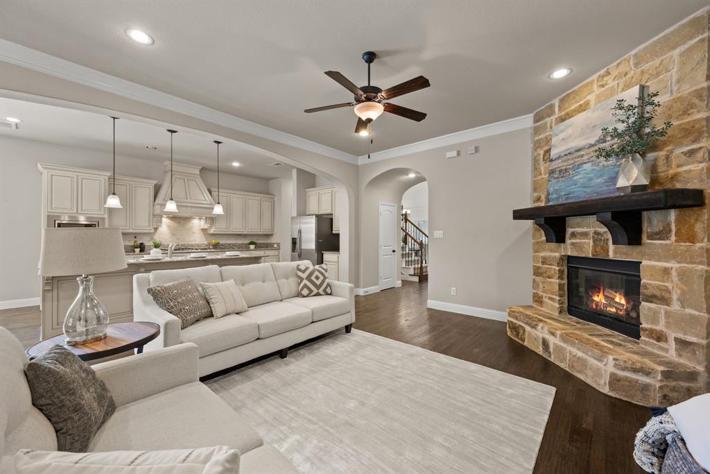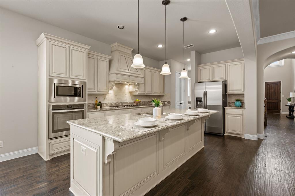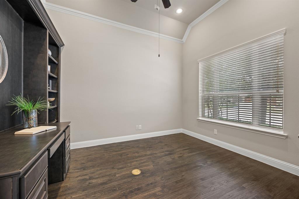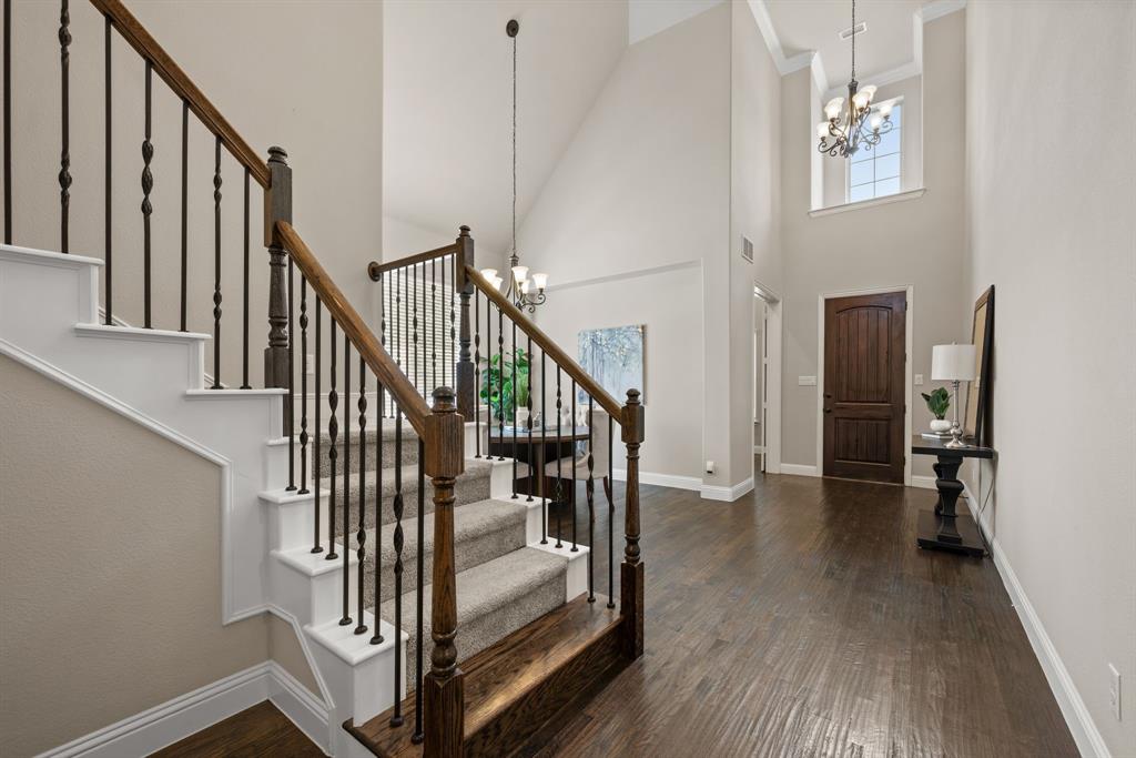 Located in a gated community in the heart of Colleyville, This stunning 4-bedroom, 3.5-bathroom two-story home greets you with soaring ceilings and rich hand-scraped hardwood floors that flow throughout the main level. A dedicated home office with elegant built-ins welcomes you at the entrance of the home. The open concept floorplan leads you to the living area, dining and gourmet kitchen. The luxurious primary suite is conveniently located downstairs, featuring granite countertops, a soaking tub, and a spacious walk-in shower. Upstairs, enjoy a large game room and media room complete with a wet bar—perfect for entertaining. Three additional bedrooms and two full bathrooms are also located on the upper floor.