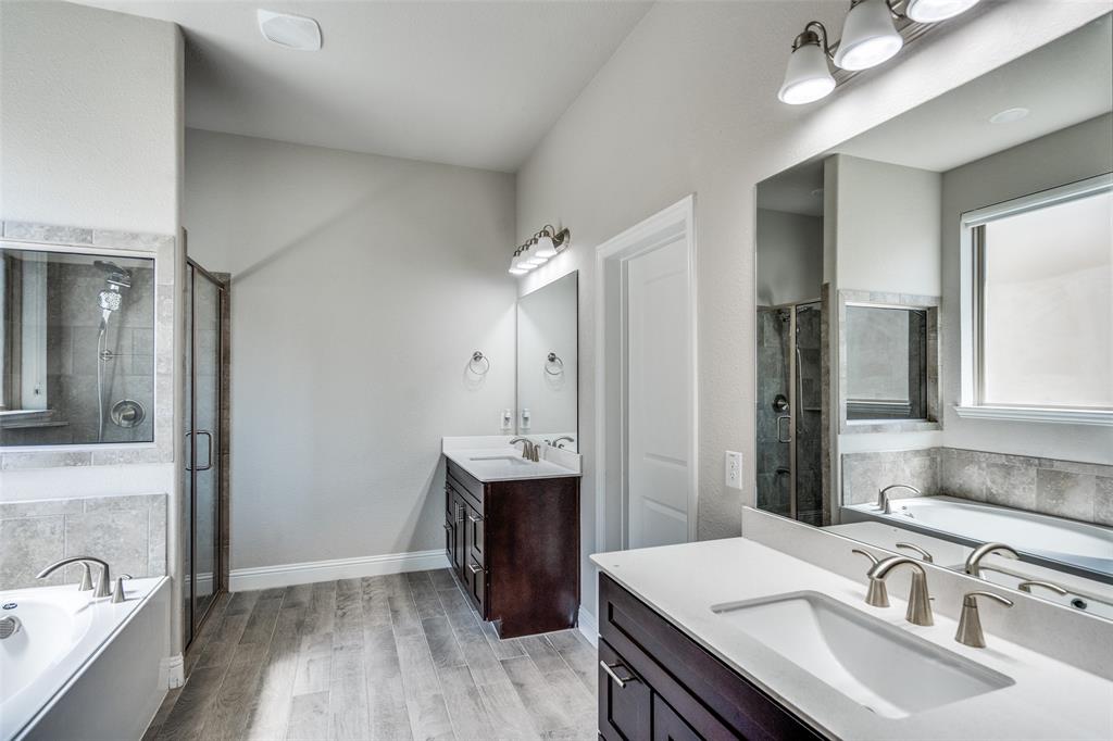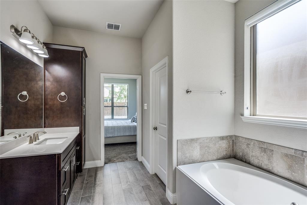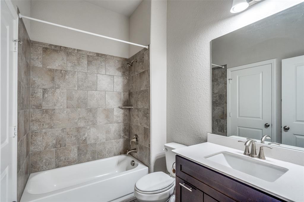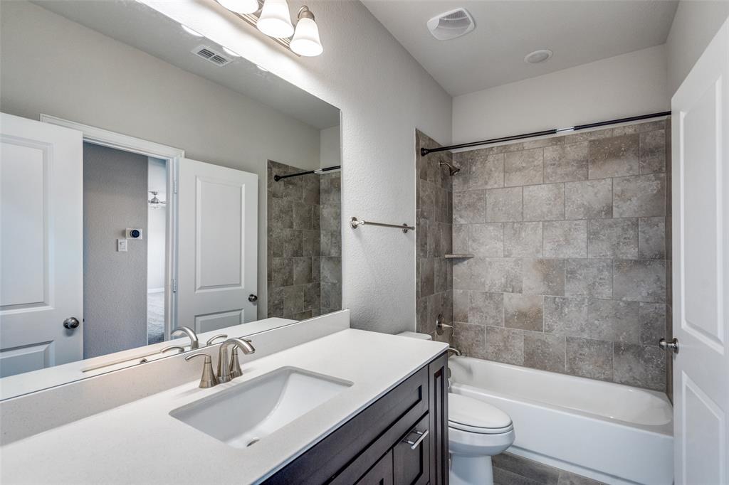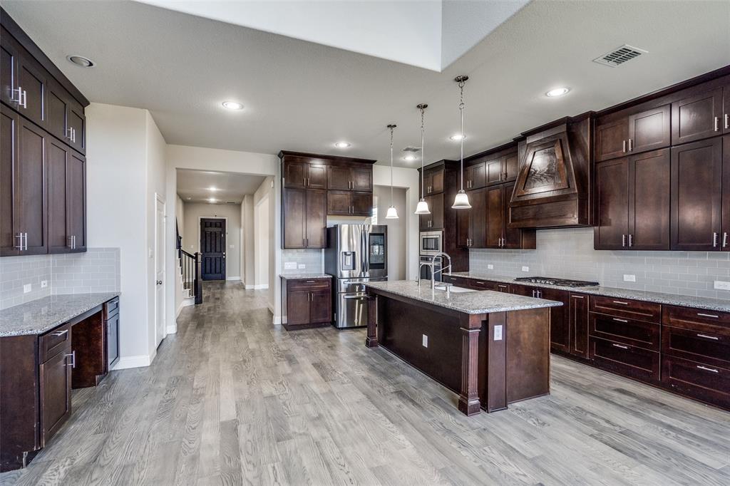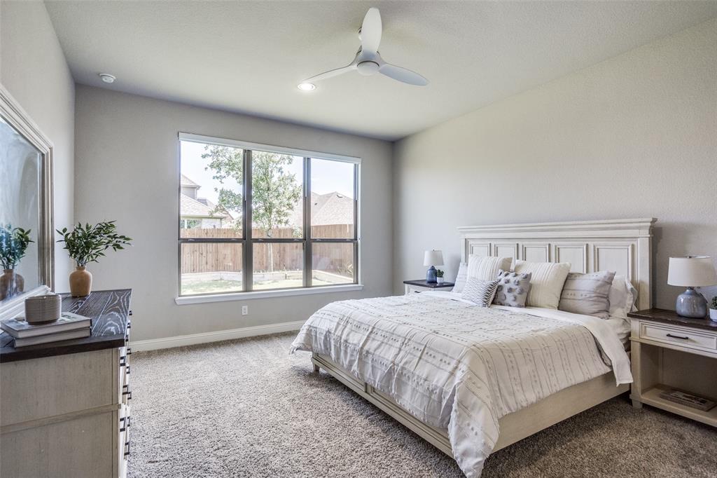 Located in the desirable Bloomridge community of McKinney & zoned to top-rated Prosper ISD schools, this beautiful North facing home offers 3,458 sq ft of thoughtfully designed living space, brimming with upgrades and energy-efficient features—including 33 fully owned solar panels & a Tesla charger. Step inside to discover a bright open floor plan with soaring ceilings, engineered wood flooring, & a spacious family room wired for surround sound. The chef’s kitchen is a dream with full-height cabinetry, large center island, granite counters, subway tile backsplash, an upgraded 36” gas cooktop, porcelain farmhouse sink, & a walk-in pantry. The layout includes a secondary bedroom with a private, full en-suite bathroom on the main level for visiting guests & family. Also downstairs is the primary suite with separate vanities, separate shower, & a relaxing garden tub. Upstairs you will find two additional bedrooms, each with their own walk-in closet. Entertain effortlessly in the large game room & dedicated media room which is also wired for surround sound. The exterior is equally impressive with JellyFish-style lighting, Ring doorbell & cameras, & a covered patio with a gas stub for grilling. A concrete border enhances the professionally landscaped front & back flowerbeds, while a water softener & reverse osmosis system add comfort & convenience. Additional highlights include a utility room with sink & a 3-car tandem garage with epoxy flooring & overhead shelving for added storage. Enjoy access to the neighborhood amenities which include a pool, greenbelt, & jogging path.