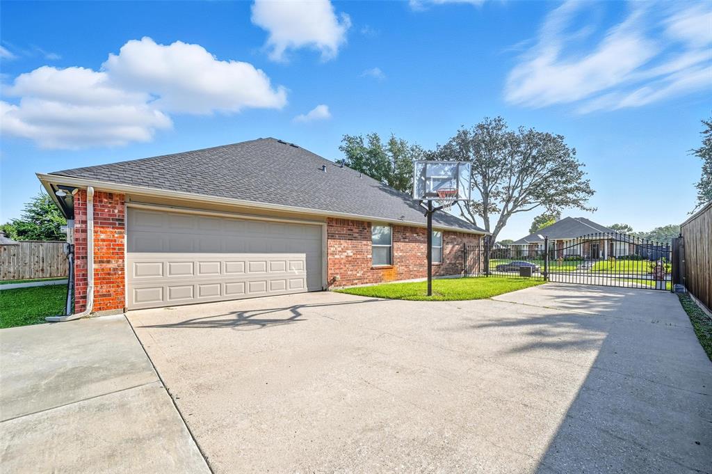 Stunning 4-Bedroom Home with Modern Amenities and Prime Location!!! Welcome to your dream home. This beautifully designed 4 bedroom, 2-bathroom residence features cutting-edge network wiring, ensuring seamless connectivity for all your smart home needs. Nestled against a serene greenbelt and walking trails, you'll enjoy the tranquility of nature right in your backyard, with the lovely lake just minutes away. Step inside to discover the elegance of hand scraped hardwoods that flow throughout the main living areas, creating a warm and inviting atmosphere. The spacious layout is perfect for families, featuring two generous living rooms and two dining rooms, providing ample room for relaxation and entertaining. The property boasts a generous 40-foot driveway extension, providing plenty of space for your boat or RV, along with an electric gate for added security and convenience. Additionally, a 10 x 10 concrete pad with a shed remains with the sale, enhancing your outdoor storage options. The exterior of the home remains wired for security cameras and outdoor lighting, for peace of mind. Conveniently located near major highways and a variety of eateries, this home combines the best of both worlds, a peaceful treatment and easy access to local amenities. Don't miss out on this opportunity to own a home that blends modern technology with a beautiful natural setting!