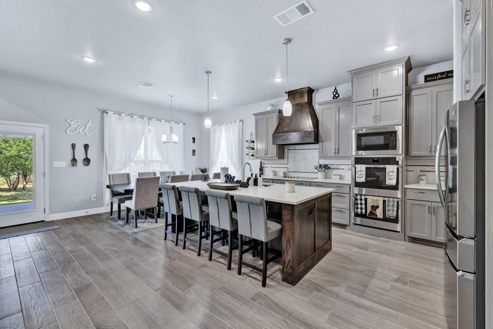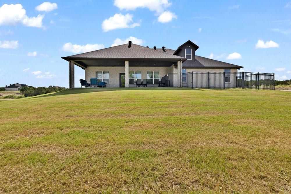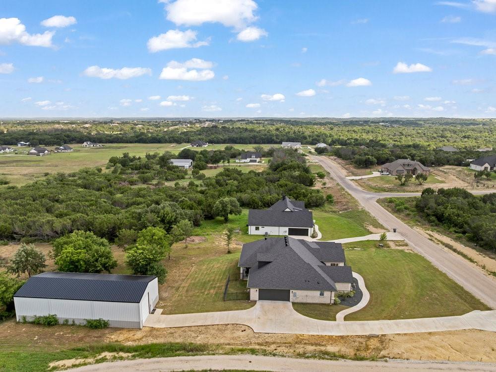 The primary suite offers a true escape, complete with a spa-inspired ensuite boasting dual showers, an oversized soaking tub, and a generous walk-in closet. Secondary bedrooms are equally spacious and share a beautifully designed full bath. Upstairs, an unfinished bonus space offers endless possibilities—create a game room, media space, teen hangout, or private guest suite! Functionality meets lifestyle with a large utility room (complete with a built-in dog feeder!) and a pet-friendly built-in dog door leading to a secure fenced area. Outside, soak up peaceful Texas mornings from your covered patio or dream big with all the open space. A massive detached shop with electricity offers incredible versatility—store your toys, run a business, or tackle your next big project. This home is ideal for those seeking wide-open spaces, flexibility, and freedom without sacrificing comfort. Don’t miss your chance to make this one yours!