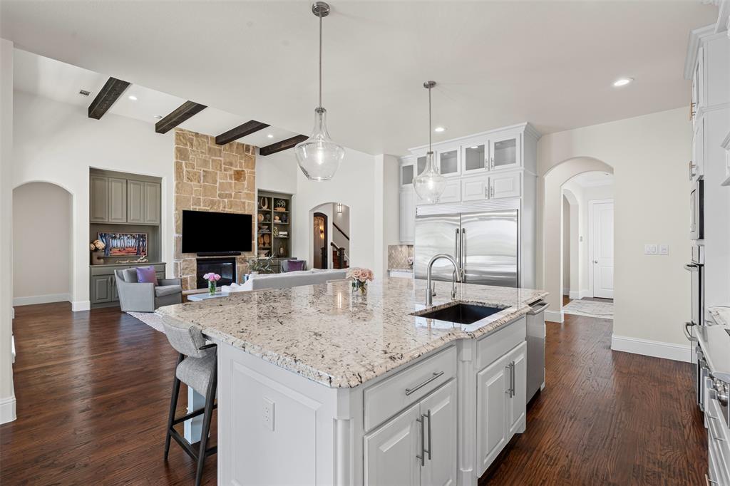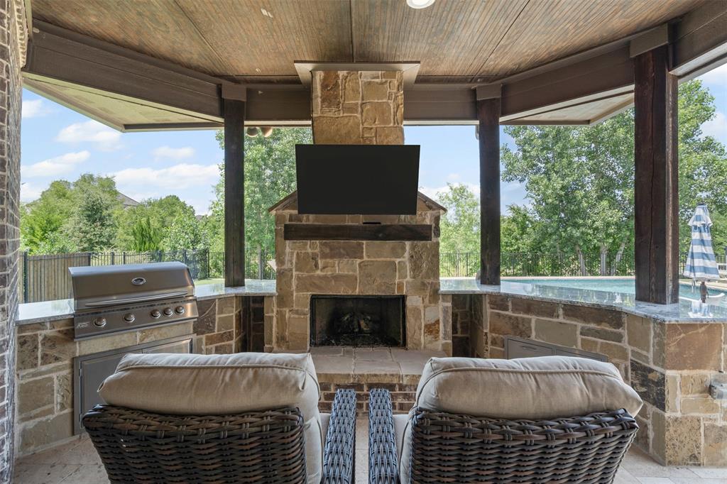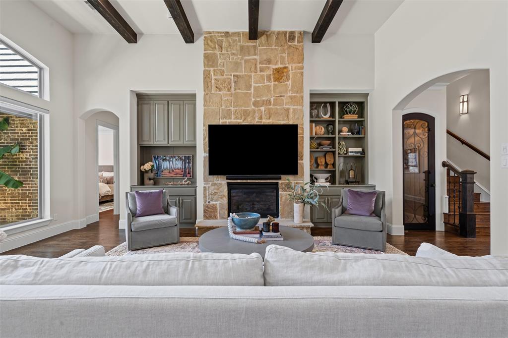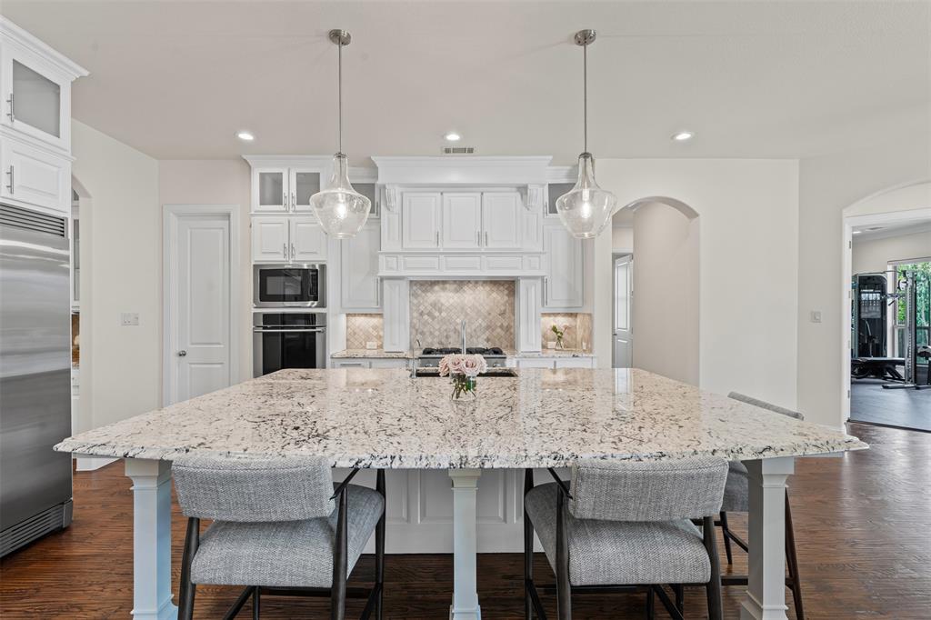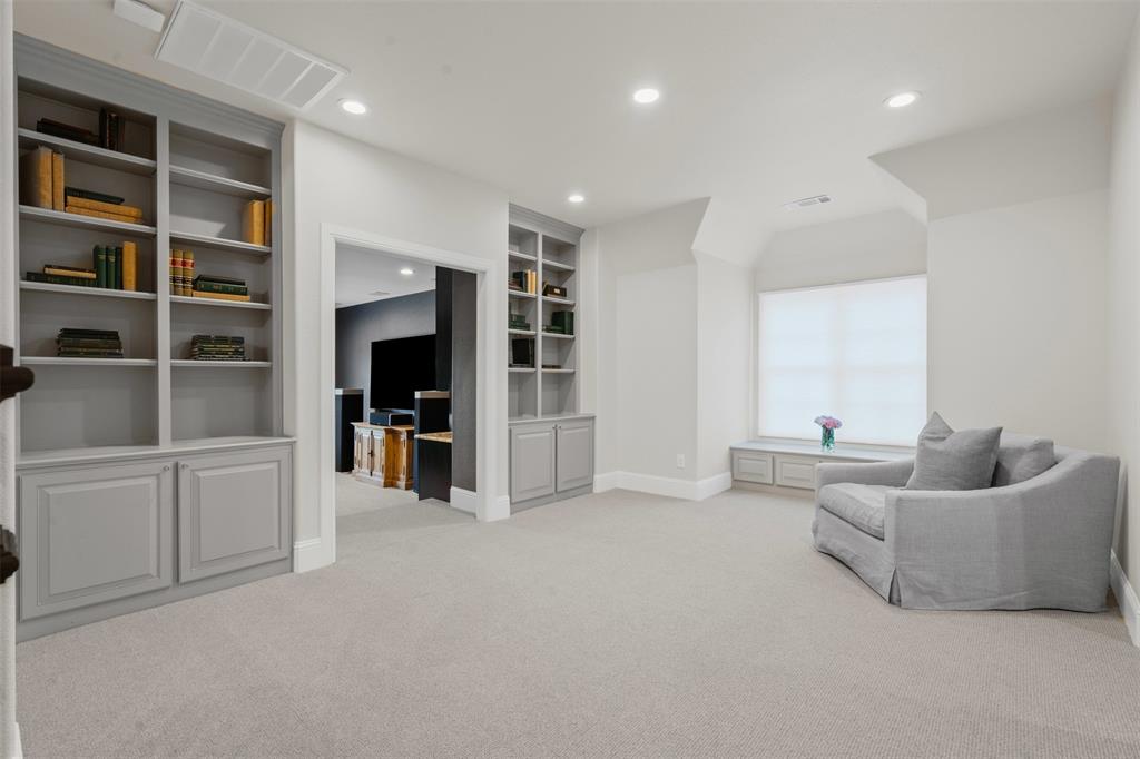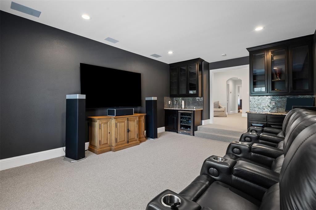 Upstairs a spacious loft-game room calls for snacks and fun with a built-in bar and refrigerated drawers, and plenty of game storage. A dedicated media room is ready for movie night or watching the Rangers swing for a pennant.