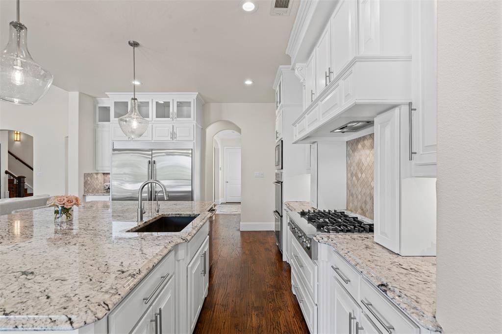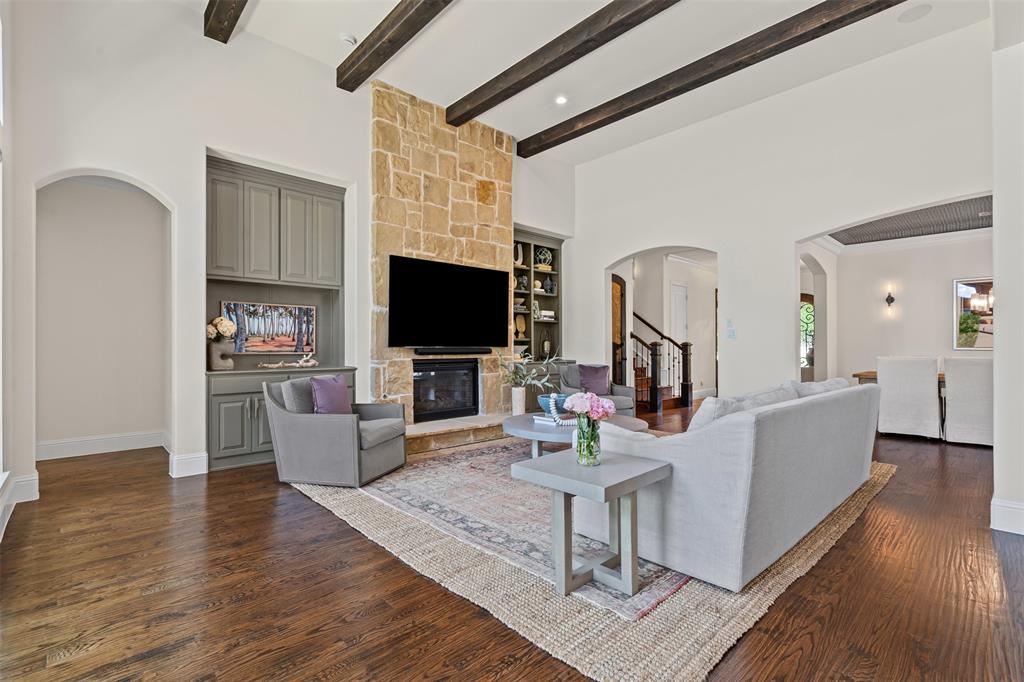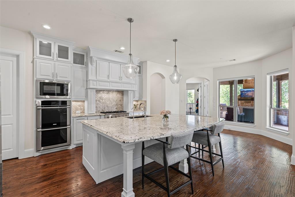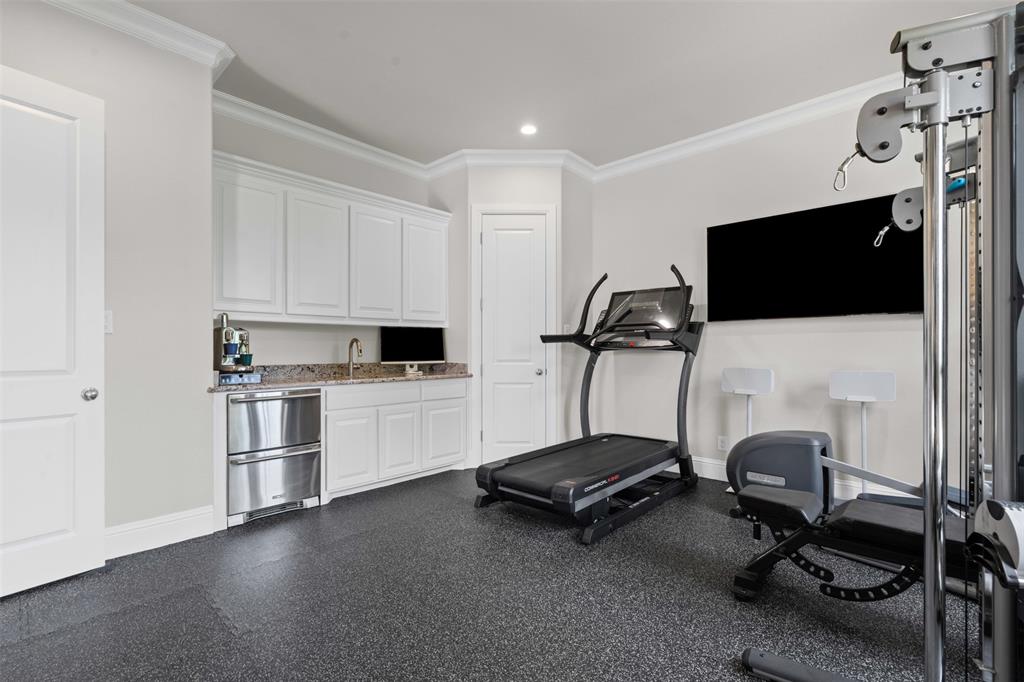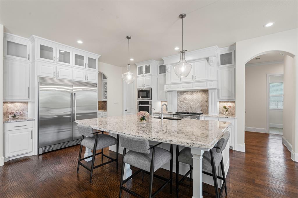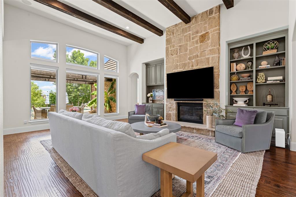 Upstairs a spacious loft-game room calls for snacks and fun with a built-in bar and refrigerated drawers, and plenty of game storage. A dedicated media room is ready for movie night or watching the Rangers swing for a pennant.