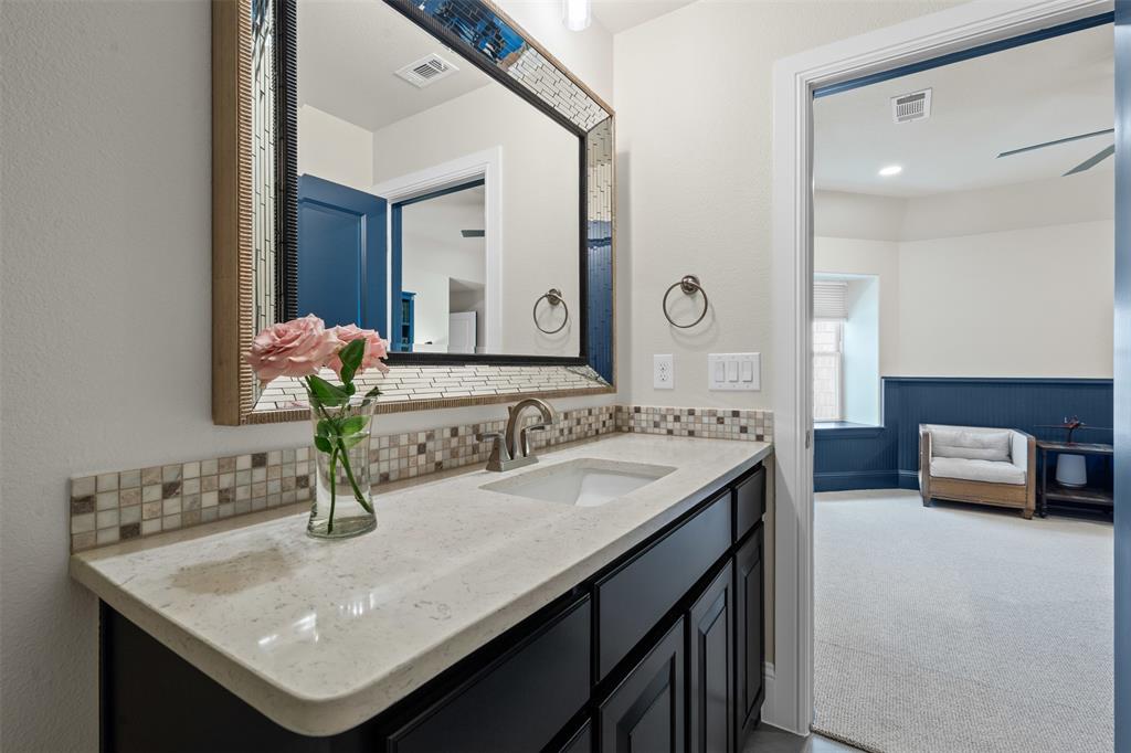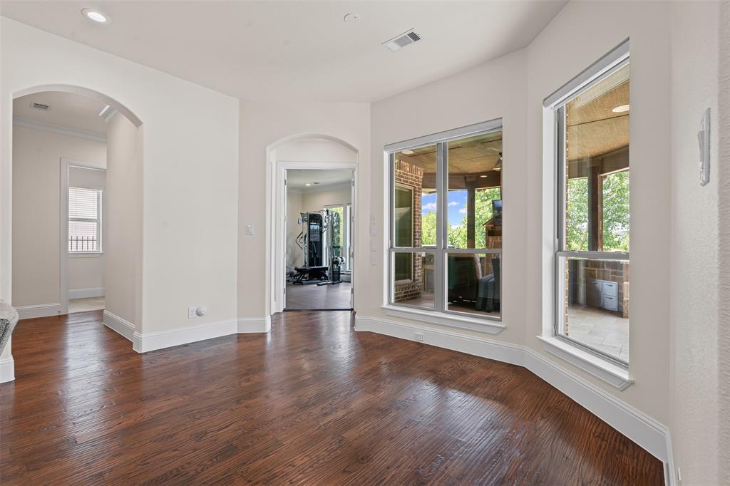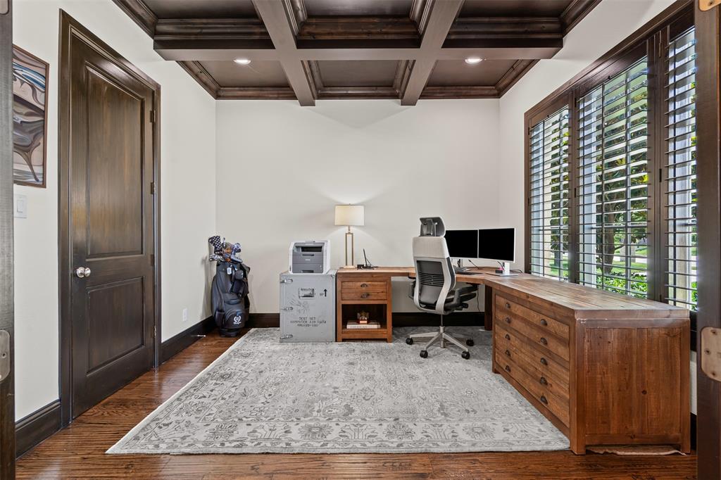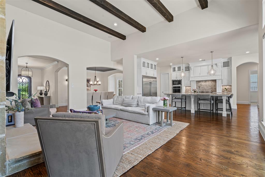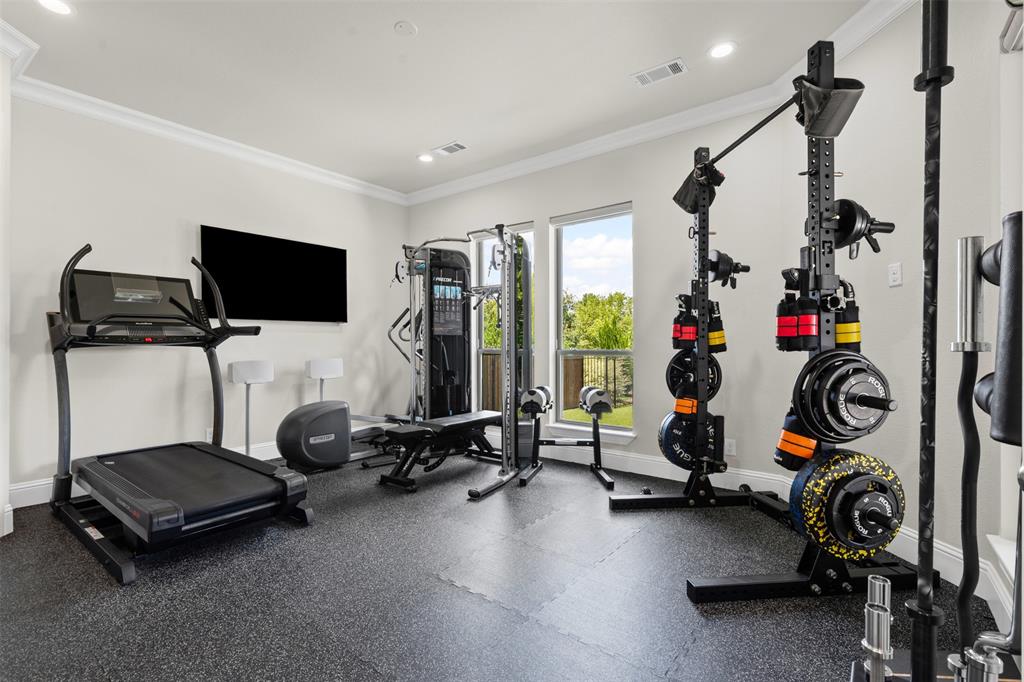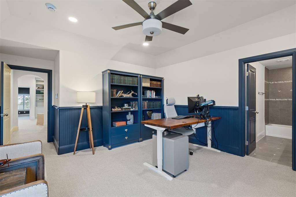 Upstairs a spacious loft-game room calls for snacks and fun with a built-in bar and refrigerated drawers, and plenty of game storage. A dedicated media room is ready for movie night or watching the Rangers swing for a pennant.