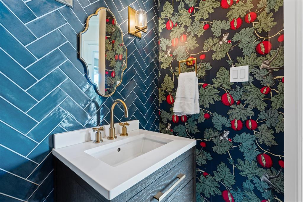 A large dining room, dedicated office, elegant bathroom, light-filled gym-flex room, convenient mudroom and laundry with space for a second refrigerator or freezer complete the downstairs footprint.