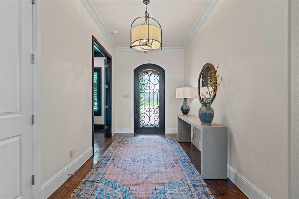 From the stained concrete drive and wrought iron front door, every detail speaks of artisan craftsmanship. The warm and inviting floor plan features arched doorways, designer tile and elegant finishes throughout. Even the ceilings—coffered, wallpapered or brick-lined—speak to the home’s elevated appeal.