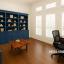 A dedicated home office with built-ins adds to the functionality, offering a refined space for remote work or daily organization.
