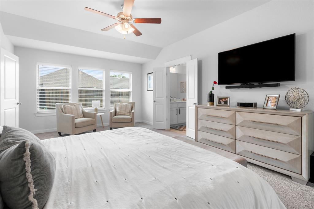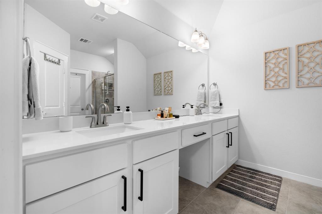 Spacious primary suite with oversized shower, double vanities & walk-in closet