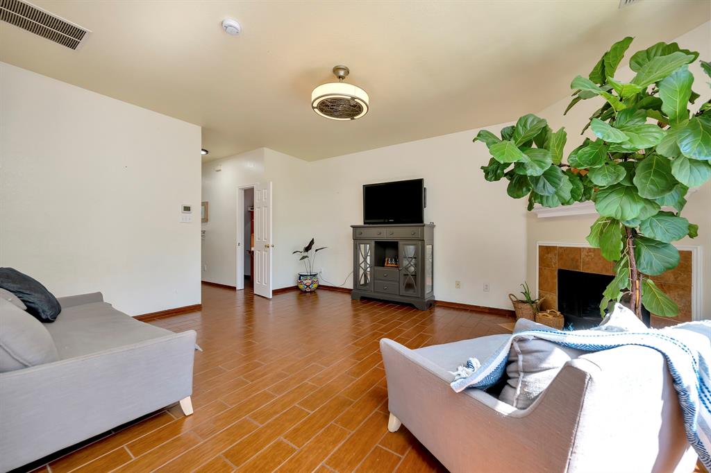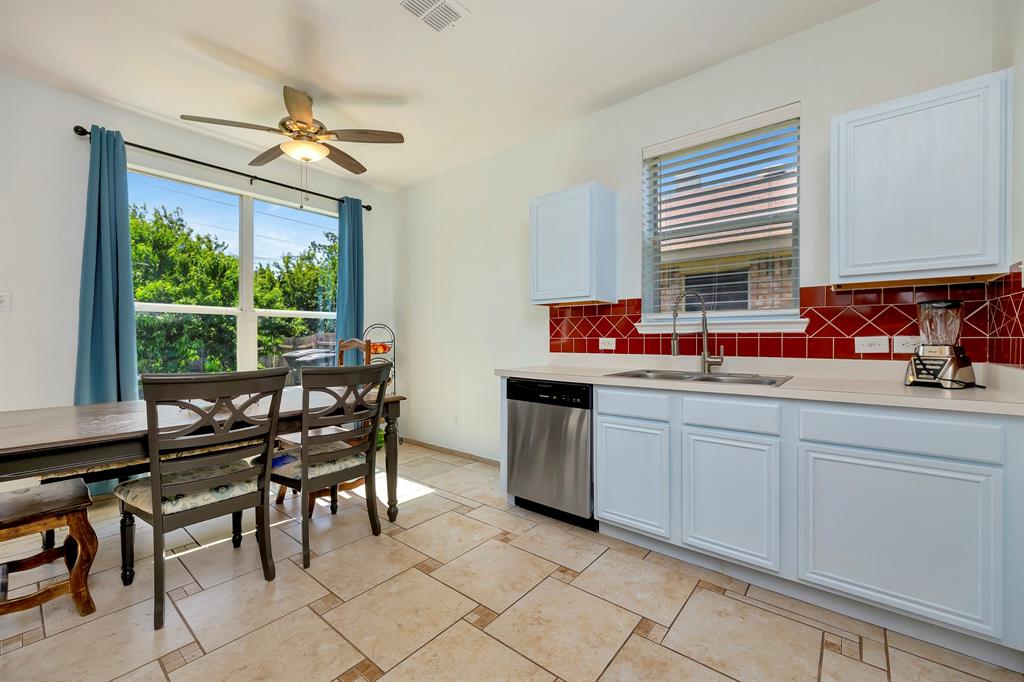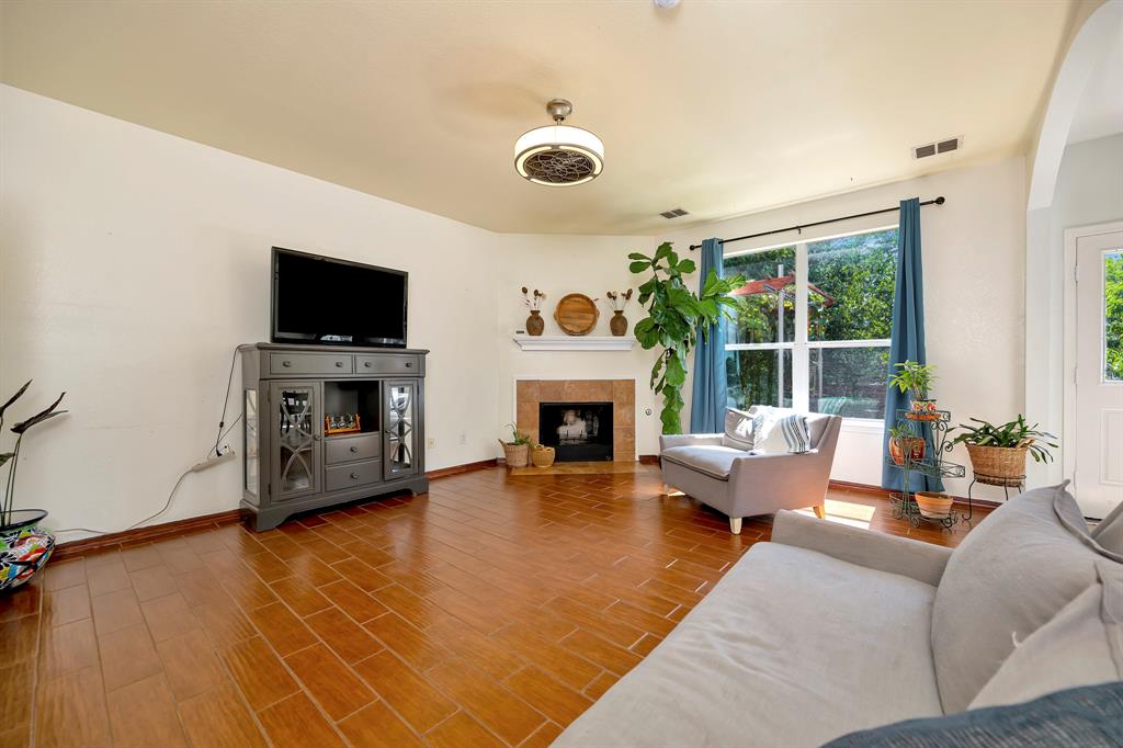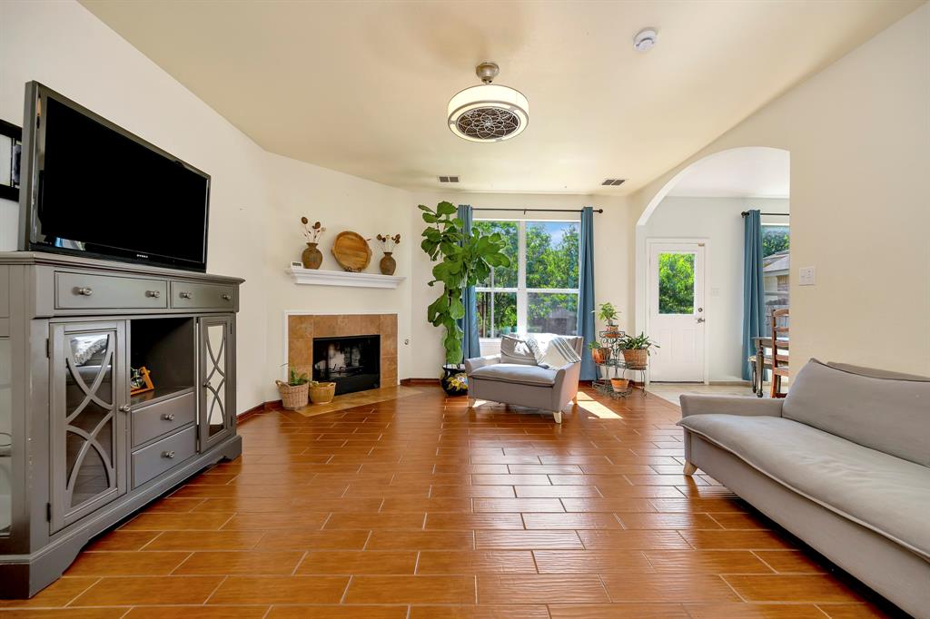 With a practical layout and a welcoming feel this home is ready for its next owner to move in and make it their own. Inside you will find a mix of laminate, vinyl and ceramic tile flooring throughout. The spacious living area is anchored by a cozy fireplace and large windows that bring in natural light. The kitchen features a stylish tile backsplash, sleek stainless steel appliances and ample cabinet space. Each bedroom comes with its own large walk in closet providing plenty of storage. There is even a bonus nook with built in shelving and a desk setup that can be used as a home office or study space. The backyard is shaded with mature trees creating a relaxing space to enjoy a quiet evening. Tucked in the sought after VOWS community, this home offers the perfect blend of convenience and charm with a location near Alliance Town Center, Presidio Shopping Center, HEB and Costco. Schedule your showing today.