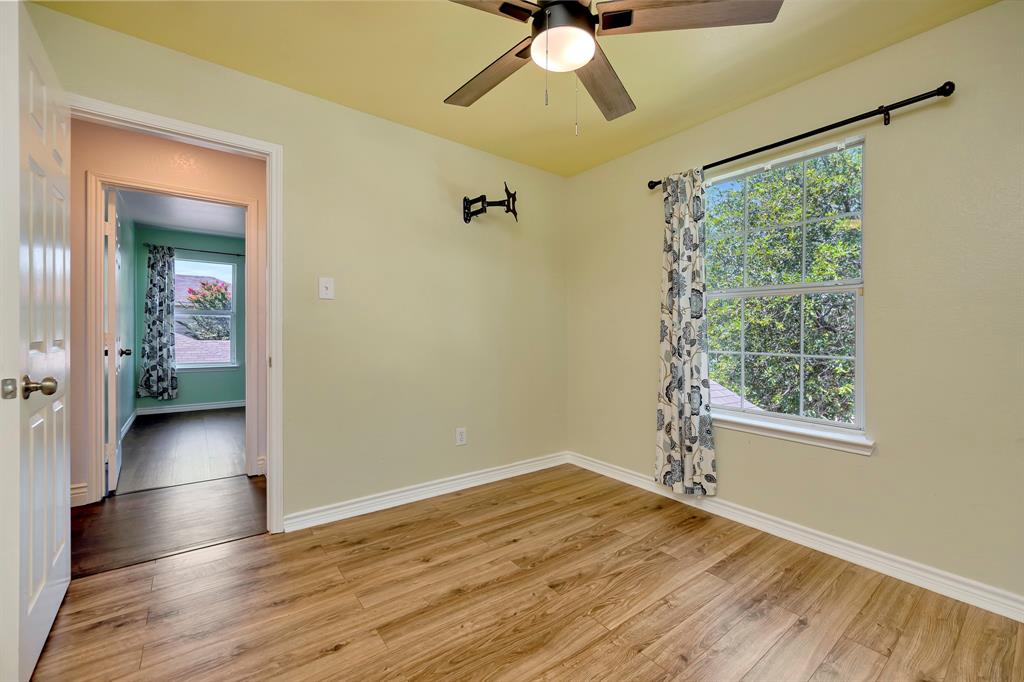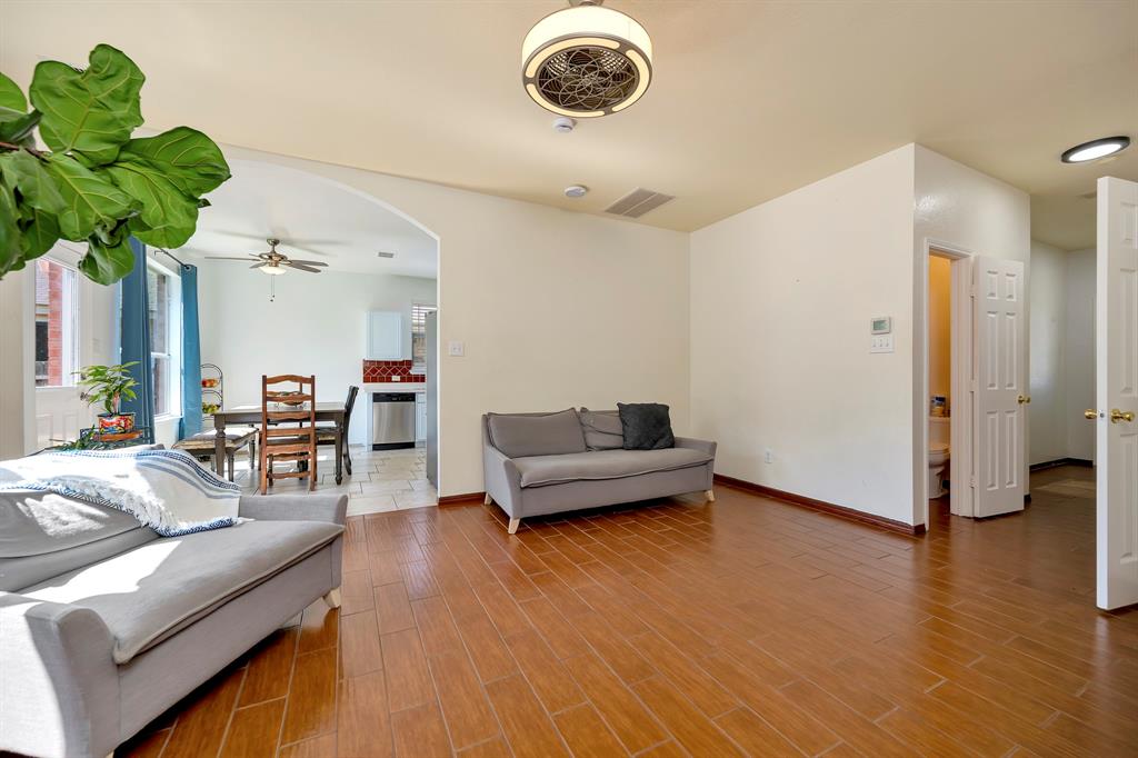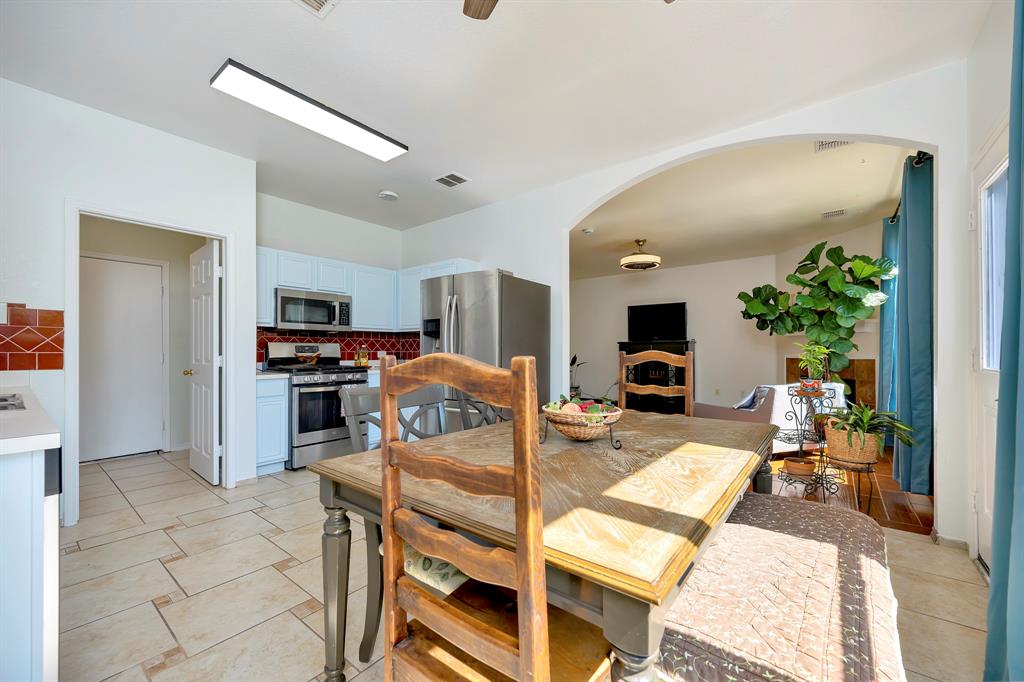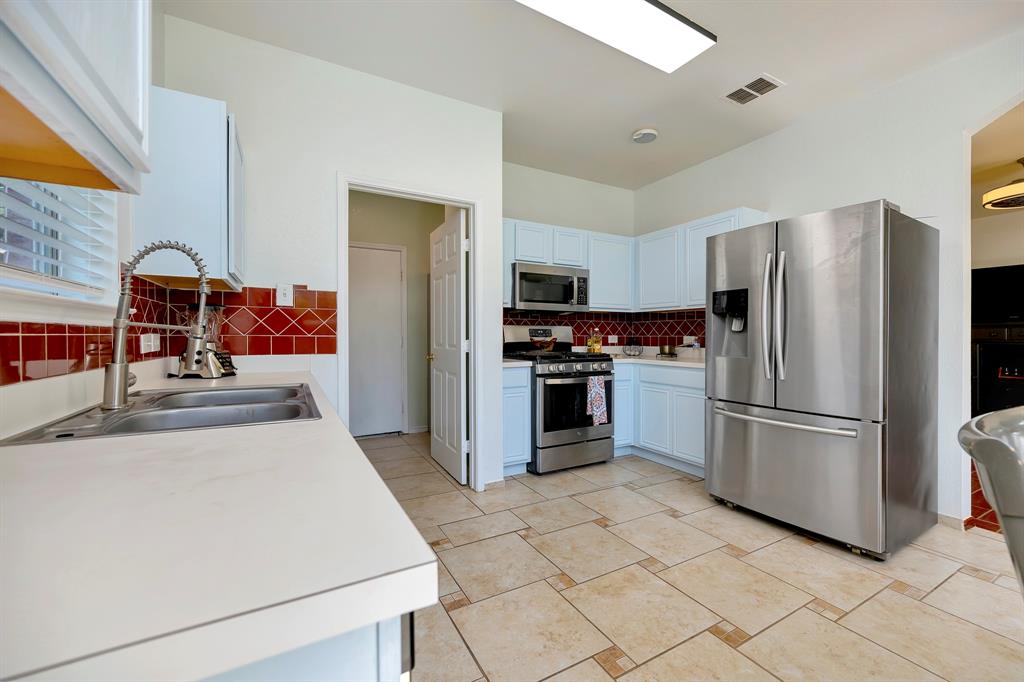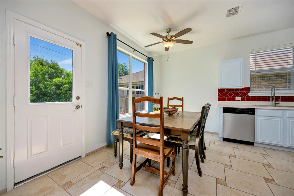 With a practical layout and a welcoming feel this home is ready for its next owner to move in and make it their own. Inside you will find a mix of laminate, vinyl and ceramic tile flooring throughout. The spacious living area is anchored by a cozy fireplace and large windows that bring in natural light. The kitchen features a stylish tile backsplash, sleek stainless steel appliances and ample cabinet space. Each bedroom comes with its own large walk in closet providing plenty of storage. There is even a bonus nook with built in shelving and a desk setup that can be used as a home office or study space. The backyard is shaded with mature trees creating a relaxing space to enjoy a quiet evening. Tucked in the sought after VOWS community, this home offers the perfect blend of convenience and charm with a location near Alliance Town Center, Presidio Shopping Center, HEB and Costco. Schedule your showing today.