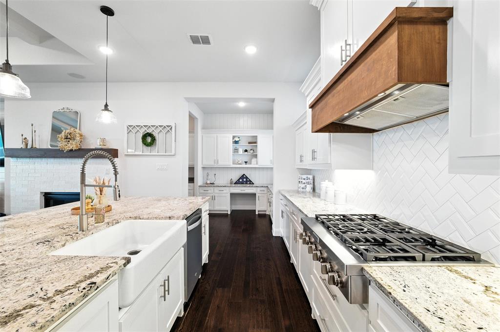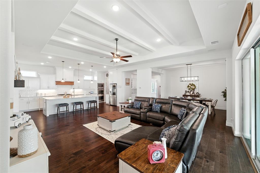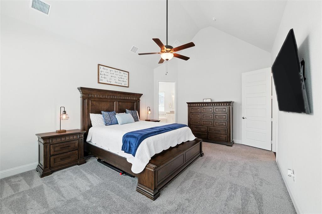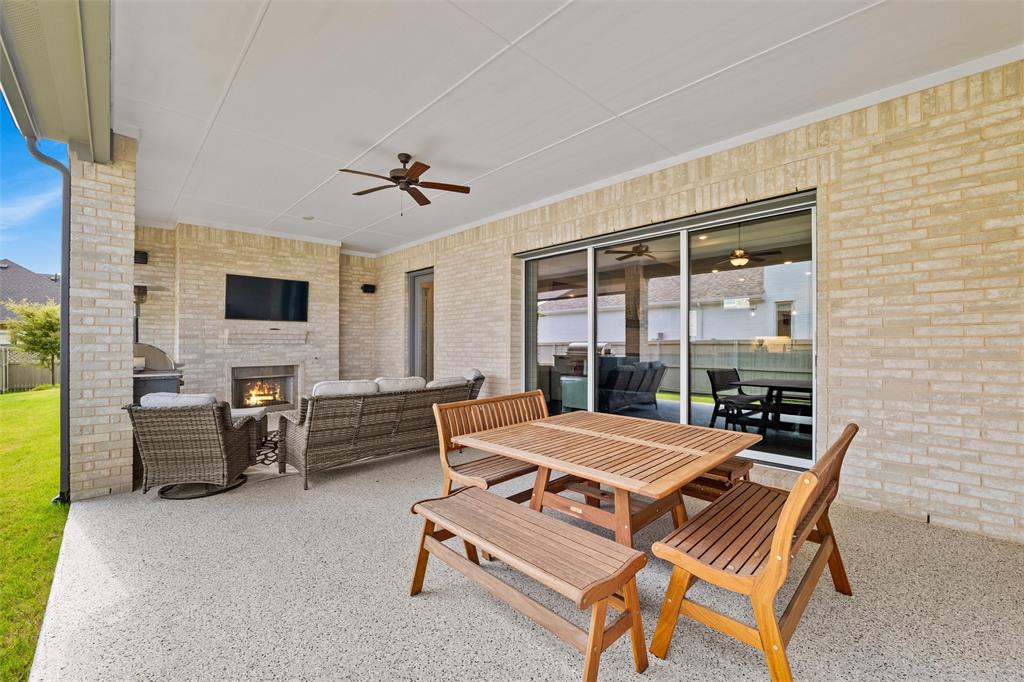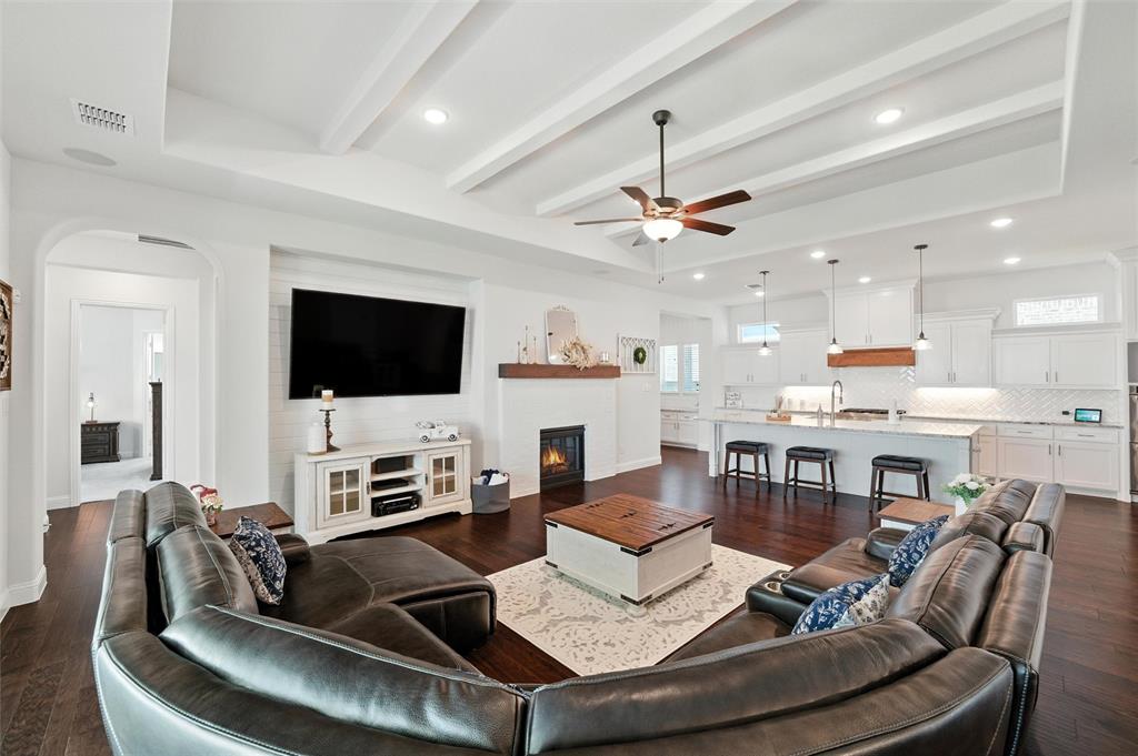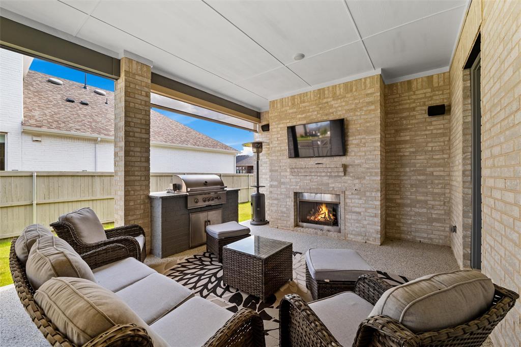 Stunning Drees Single Story Home on 70' Lot! Property eligible for Special F1nancing! 1% Rate Buy Down for 1 year with our preferred lender OR a 4.25% VA assumable loan. Beautiful drive up to this Craftsman-style brick home with a covered porch and Plantation Shutters across the front windows. Inside you are greeted by warm wood floors that extends thru the main living areas. Right of the Foyer is light-filled BdRm 4, Home Office, or 2nd Lv Area featuring ceiling fan and double closet. The large Living area seamlessly opens to a modern Kitchen featuring upgraded SS double ovens, microwave, dishwasher, 5 burner gas cooktop, upgraded 3cm granite counters, chevron pattern backsplash, 42in cabinets, a home office area & huge island with breakfast bar. LvRm has cozy fireplace with cedar mantle, high ceiling with accent beams, surround sound speakers, custom accent paneling, and triple sliding glass door to extended covered patio. Dining Area is open to the LvRm and has a custom butler pantry with built in bottle display. Large Primary Suite has wall of windows, cathedral ceiling, and a spa-like BathRm with dual vanities, huge shower, soaking tub, coffee bar, and custom WIC. BdRms 2 and 3 both have their own Ensuites Baths! Step out back to the outdoor living area with built in grill, gas start fireplace, custom sun shades, and flatscreen TV. The fenced yard wraps from the side patio all the way to the back and offers lots of grassy space for the fur babies to play! Split 3 car garage with double car & extended single, has 10.4 ceiling with extra tall door for lifted trucks, & mini split climate controlled. This thoughtfully designed home offers a perfect blend of elegance, energy efficiency, & practicality. Pecan Square is an amazing community, HOA includes community center, fitness center, 3 pools, pickle & basketball courts, planned community activities, dog park, front yard maintenance, & 2 Gig internet! Home under builder warranty! New Elm School in neighborhood!