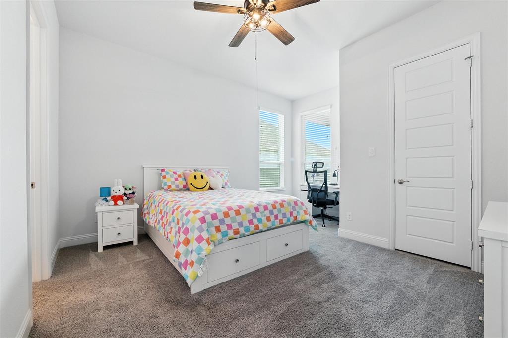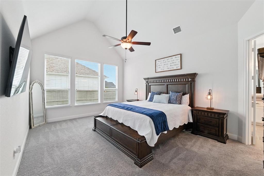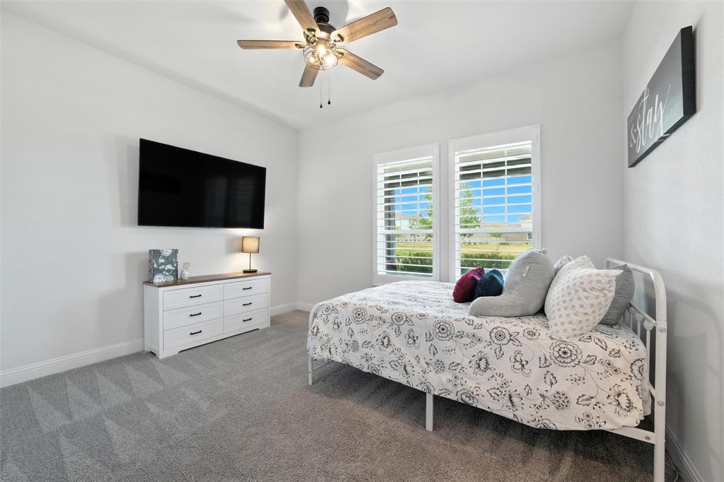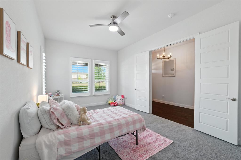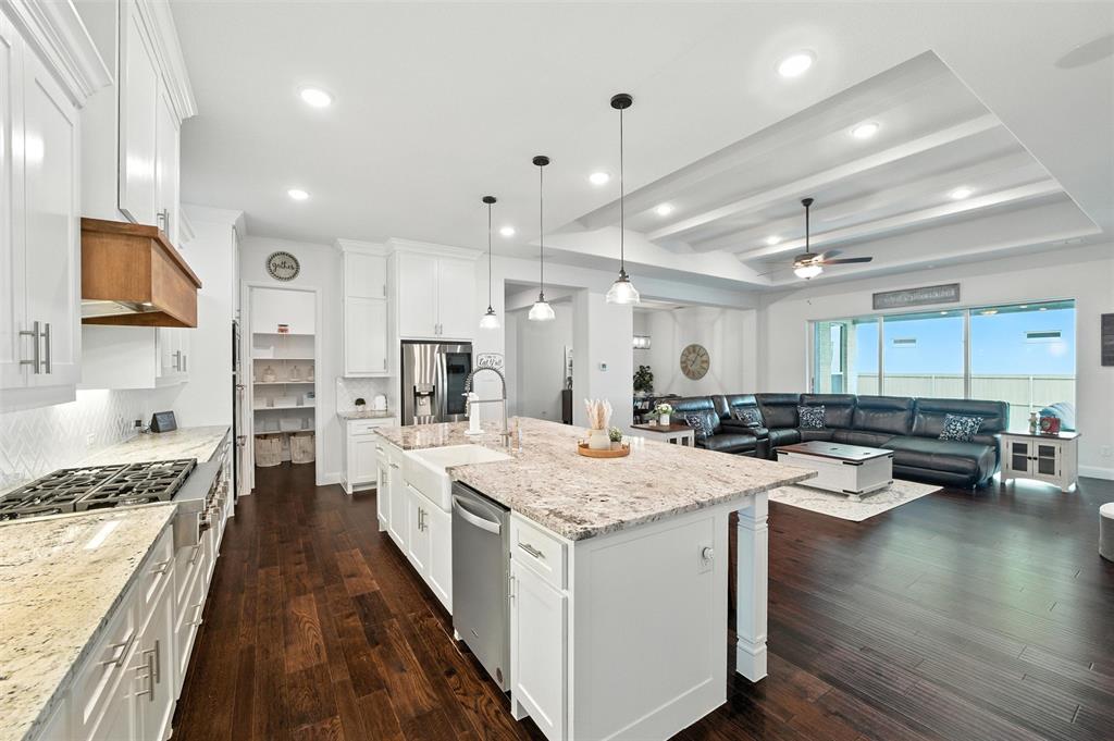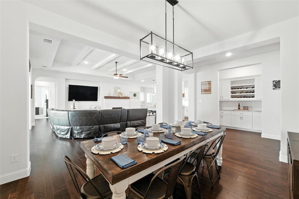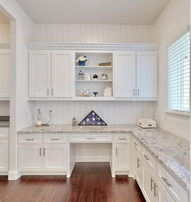 Stunning Drees Single Story Home on 70' Lot! Property eligible for Special F1nancing! 1% Rate Buy Down for 1 year with our preferred lender OR a 4.25% VA assumable loan. Beautiful drive up to this Craftsman-style brick home with a covered porch and Plantation Shutters across the front windows. Inside you are greeted by warm wood floors that extends thru the main living areas. Right of the Foyer is light-filled BdRm 4, Home Office, or 2nd Lv Area featuring ceiling fan and double closet. The large Living area seamlessly opens to a modern Kitchen featuring upgraded SS double ovens, microwave, dishwasher, 5 burner gas cooktop, upgraded 3cm granite counters, chevron pattern backsplash, 42in cabinets, a home office area & huge island with breakfast bar. LvRm has cozy fireplace with cedar mantle, high ceiling with accent beams, surround sound speakers, custom accent paneling, and triple sliding glass door to extended covered patio. Dining Area is open to the LvRm and has a custom butler pantry with built in bottle display. Large Primary Suite has wall of windows, cathedral ceiling, and a spa-like BathRm with dual vanities, huge shower, soaking tub, coffee bar, and custom WIC. BdRms 2 and 3 both have their own Ensuites Baths! Step out back to the outdoor living area with built in grill, gas start fireplace, custom sun shades, and flatscreen TV. The fenced yard wraps from the side patio all the way to the back and offers lots of grassy space for the fur babies to play! Split 3 car garage with double car & extended single, has 10.4 ceiling with extra tall door for lifted trucks, & mini split climate controlled. This thoughtfully designed home offers a perfect blend of elegance, energy efficiency, & practicality. Pecan Square is an amazing community, HOA includes community center, fitness center, 3 pools, pickle & basketball courts, planned community activities, dog park, front yard maintenance, & 2 Gig internet! Home under builder warranty! New Elm School in neighborhood!