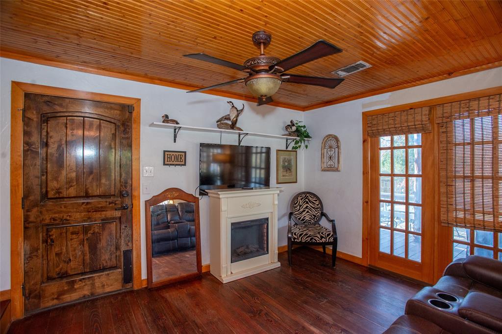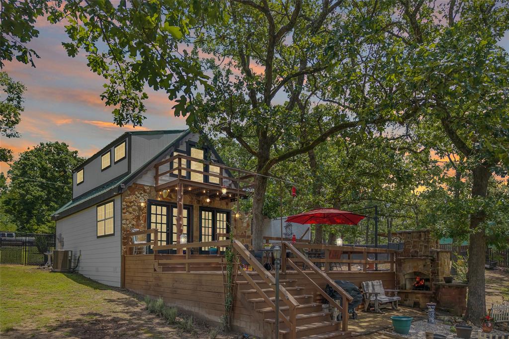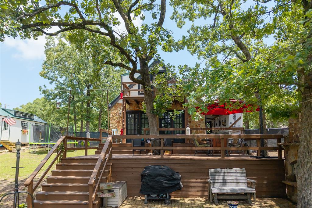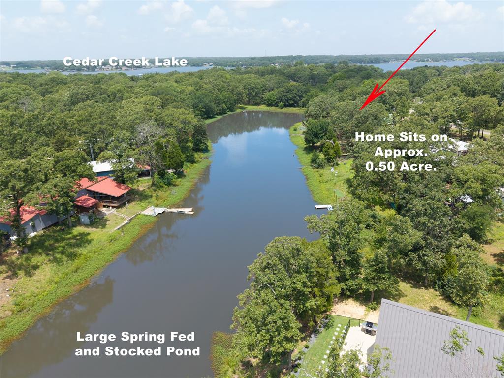 This one just got even more charming AND affordable with a $25,000 price improvement. Welcome to your small dream home on 3 lots at 5650 Point Lavista near Cedar Creek Lake! This delightful 2 or 3 bedroom, 2 bathroom home is perfect for those seeking a minimalist lifestyle and wanting to enjoy the outdoors. Tucked into nature and full of charm, this cozy retreat sits on a little over a half an acre with a spacious fenced yard, overlooking a serene springfed pond. Whether you're casting a line from the shore, feeding the deer or turtles, stargazing by the fire pit, or sipping morning coffee on the wraparound deck, this home is built for slowing down and soaking it all in. The outdoor spaces invite you to unwind with a built in fireplace and grill area that is ideal for casual evenings and weekend cookouts. The large fenced yard invites you to chase any activity your heart desires and includes a brand new matching 12x24 shed. Step inside the home and you will be welcomed by warm wood finishes, custom inlays, and a layout designed for comfort and connection. The main floor features a small open concept living, kitchen, dining space, a bedroom, and a full bath with a walk in shower, and stackable washer and dryer area. Upstairs, you will find a second full bath with a deep soaking tub, a cozy bedroom, and a bonus room that could be your home office, extra sleeping space, or even a reading nook. This quiet lakeside neighborhood offers more than just peace and quiet it also includes a community boat launch, pool, tennis court and disc golf for when you’re feeling a little more social. The neighborhood is golf cart friendly as well! If you need more space you have the opportunity to build on one or two of the other lots included with this property. Want an opportunity to live in this home while deciding if it is the perfect home to purchase? The owner is willing to consider a lease with an option to purchase. This one is truly special! Come take a look!
