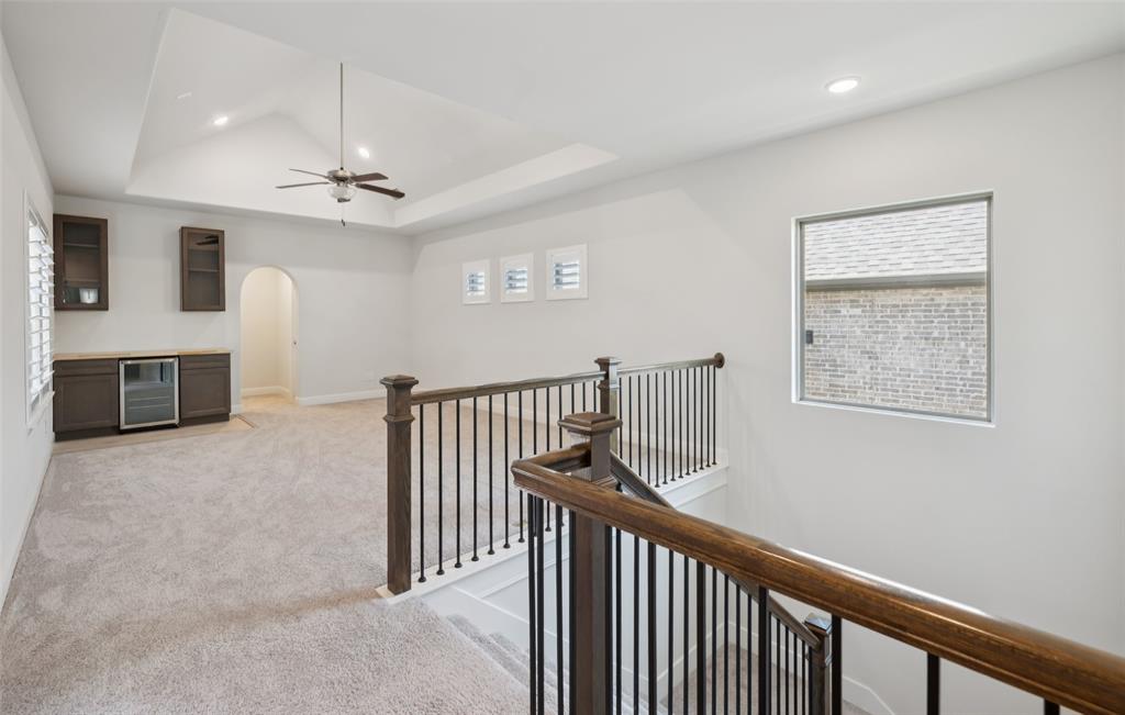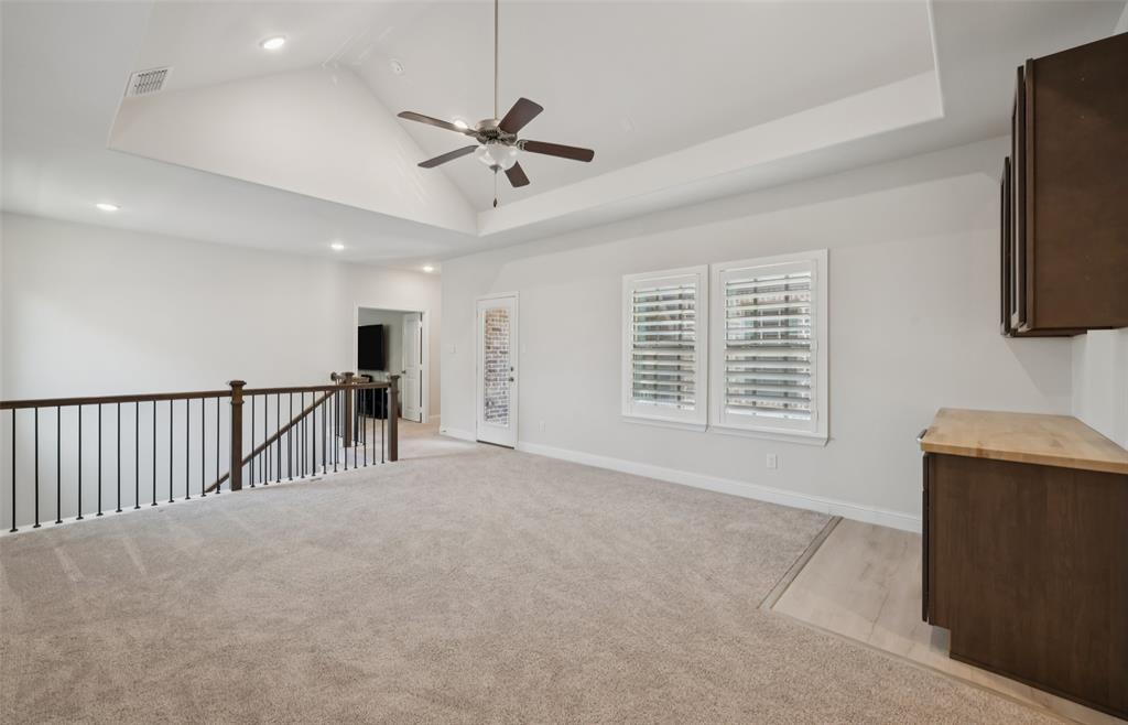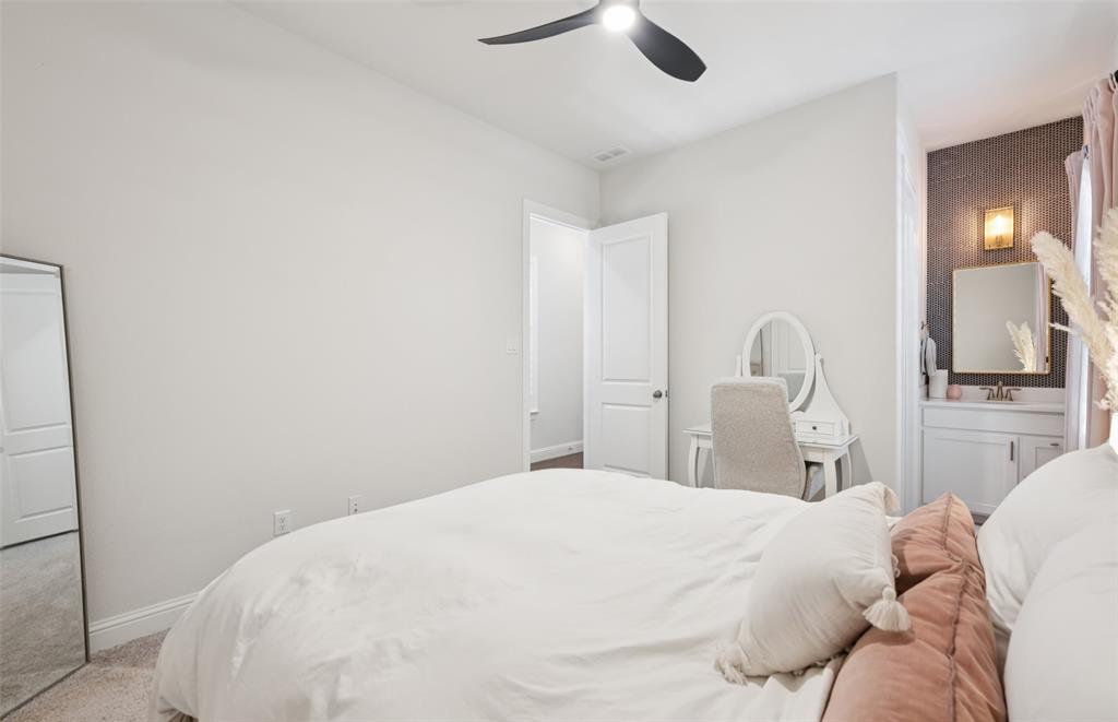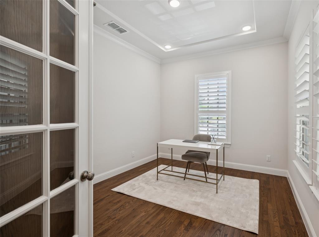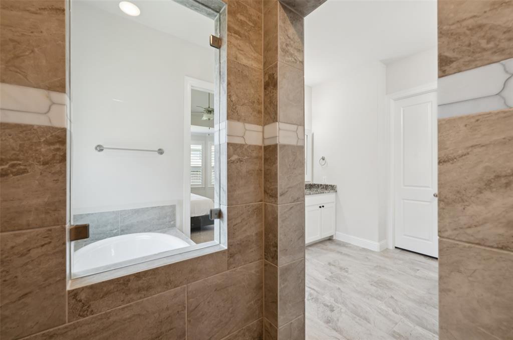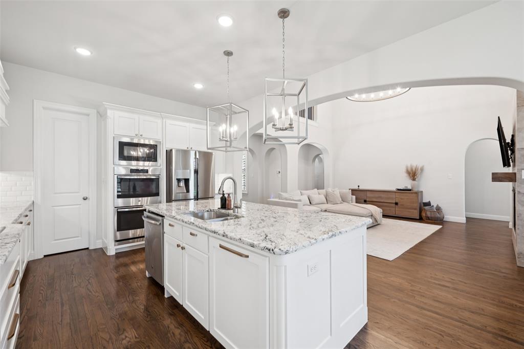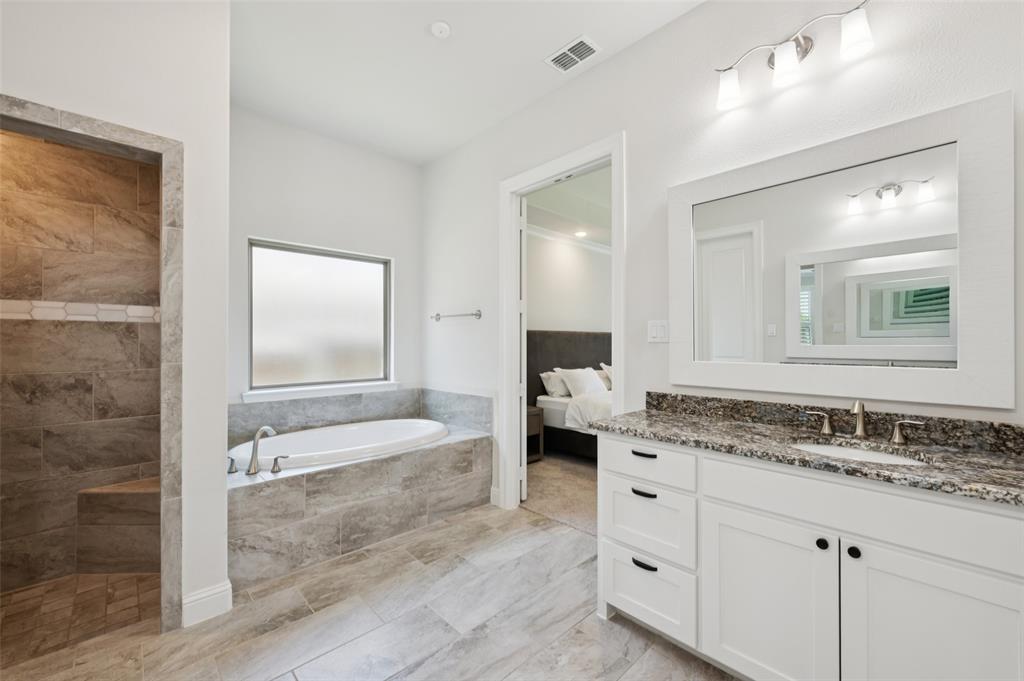 Welcome to this beautifully designed Darling Home in Prosper’s prestigious Lakewood community. From the moment you arrive, you’re greeted by a charming outdoor courtyard—a serene space perfect for morning coffee or evening relaxation. Step inside to discover rich wood flooring throughout the main living areas, plantation shutters, and elegant decorative lighting that elevate every room. The living room impresses with soaring ceilings and a cozy gas fireplace, and flows seamlessly into the chef’s kitchen featuring a large island with seating, crisp white cabinetry, granite countertops, a gas cooktop, and double ovens. The open-concept layout continues into the spacious dining area—ideal for entertaining. The primary suite, located on the main floor, offers a peaceful retreat with a bay window, vaulted ceiling, and crown molding. The spa-like bath includes a soaker tub, oversized shower, and a large walk-in closet that connects directly to the laundry room for added convenience. Also downstairs is a private home office, a half bathroom, and a guest bedroom with an ensuite bath—perfect for visitors or multigenerational living. Upstairs, enjoy a large game room with built-in cabinetry and a beverage fridge, a separate media room, two oversized secondary bedrooms, and two full bathrooms plus a half bath—plenty of space for everyone. Step into the backyard to find a spacious covered patio and freshly stained fence, ideal for outdoor entertaining or simply enjoying the quiet surroundings. Lakewood offers resort-style amenities including a sparkling pool, clubhouse, park, scenic pond, and tree-lined walking trails. Conveniently located near shopping, dining, the PGA Headquarters, and zoned to highly acclaimed Prosper ISD schools, including Walnut Grove High School. This home combines refined design, flexible living spaces, and an unbeatable location—don’t miss the opportunity to make it yours!
