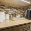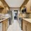 The eat-in kitchen has been tastefully updated with rich wood cabinetry, granite countertops, matching stainless steel appliances, including a recently replaced oven, recent tile flooring, and the adjacent utility room includes washer dryer hookups, additional storage, and a counter for food prep or a coffee station. The kitchen also has a door to your back balcony and for entry from the exterior stairs.