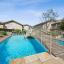 The generously-sized second bedroom has two large closets and access to the balcony, while the second bathroom has new lighting, a tiled bath and shower area, and a huge linen closet with tons of storage.