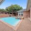 The open kitchen is a dream for any home chef, offering abundant prep space, extensive cabinetry, a designer backsplash, stainless steel appliances, and a pot filler above the stove. There are 2 bedrooms and 2 full bathrooms on the main level, including a spacious primary suite with a large walk-in shower, dual vanities, and a generous walk-in closet. A separate guest suite also on the main level overlooks the pool and has access to a full bath that’s perfect for hosting family or friends.