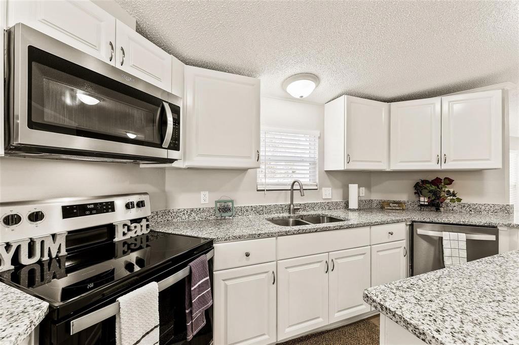 The stunning kitchen boasts granite countertops, stainless steel appliances (including the refrigerator), abundant cabinetry, two pantries, and a garbage disposal. The washer and dryer are also just a few years old.