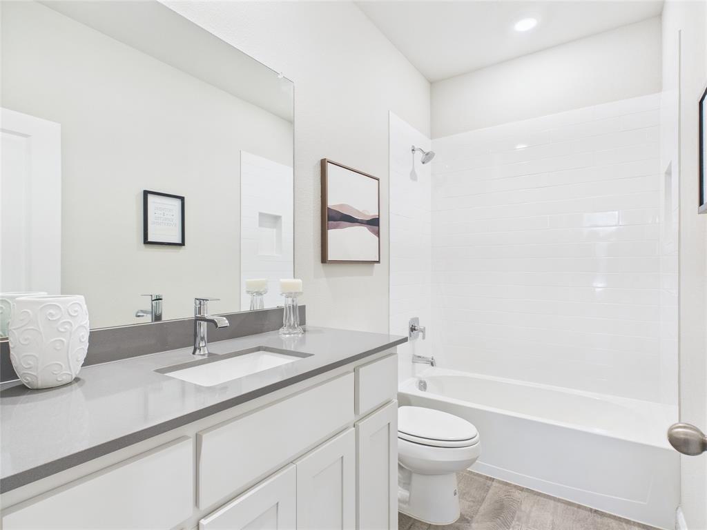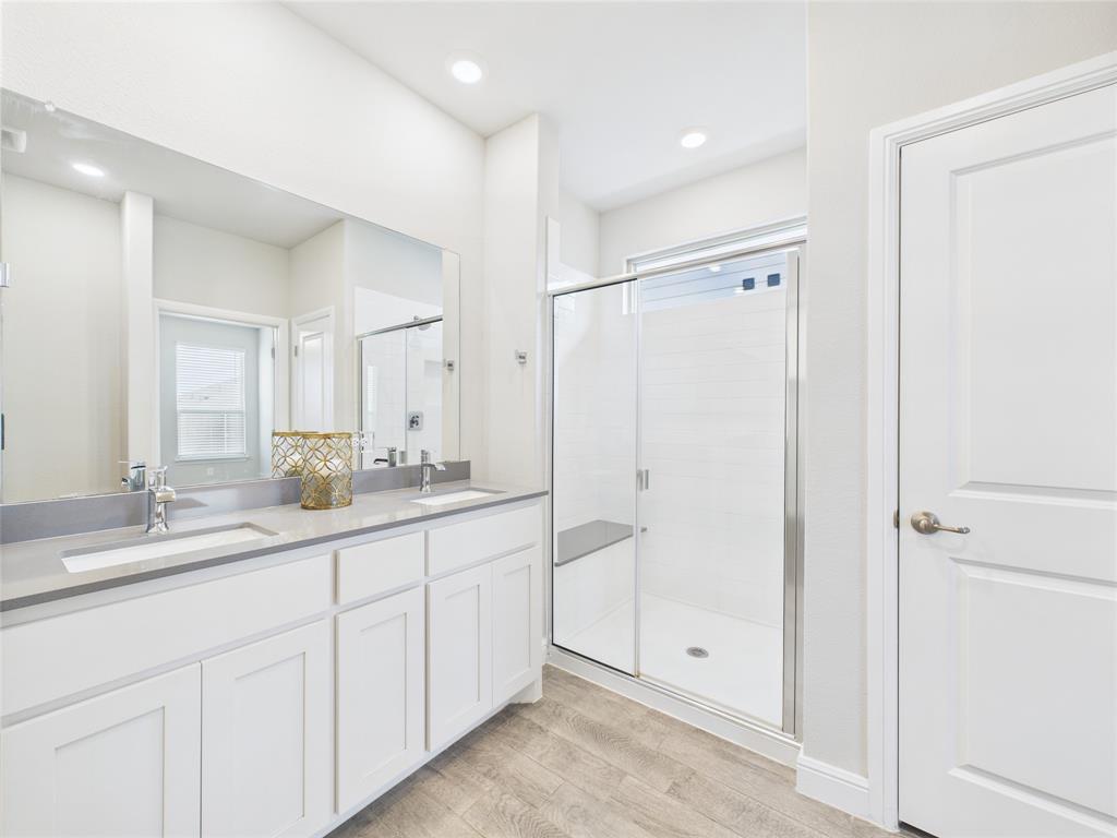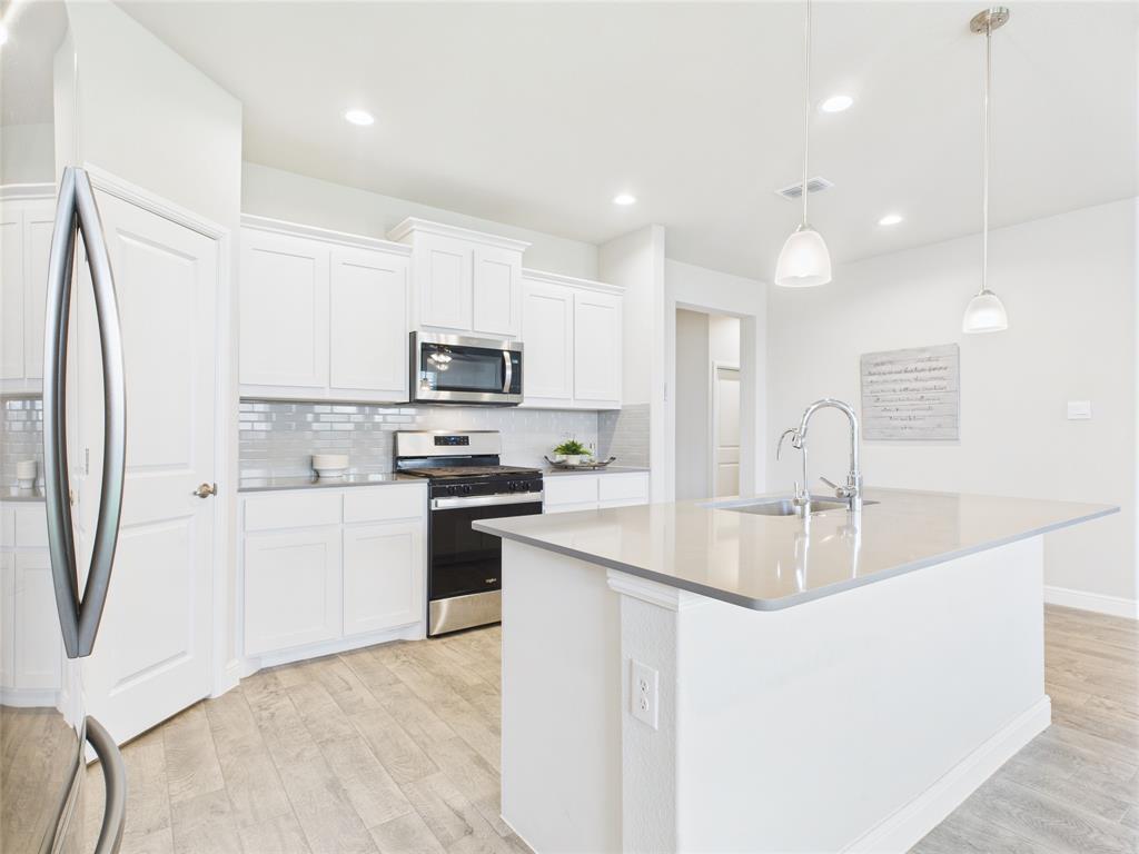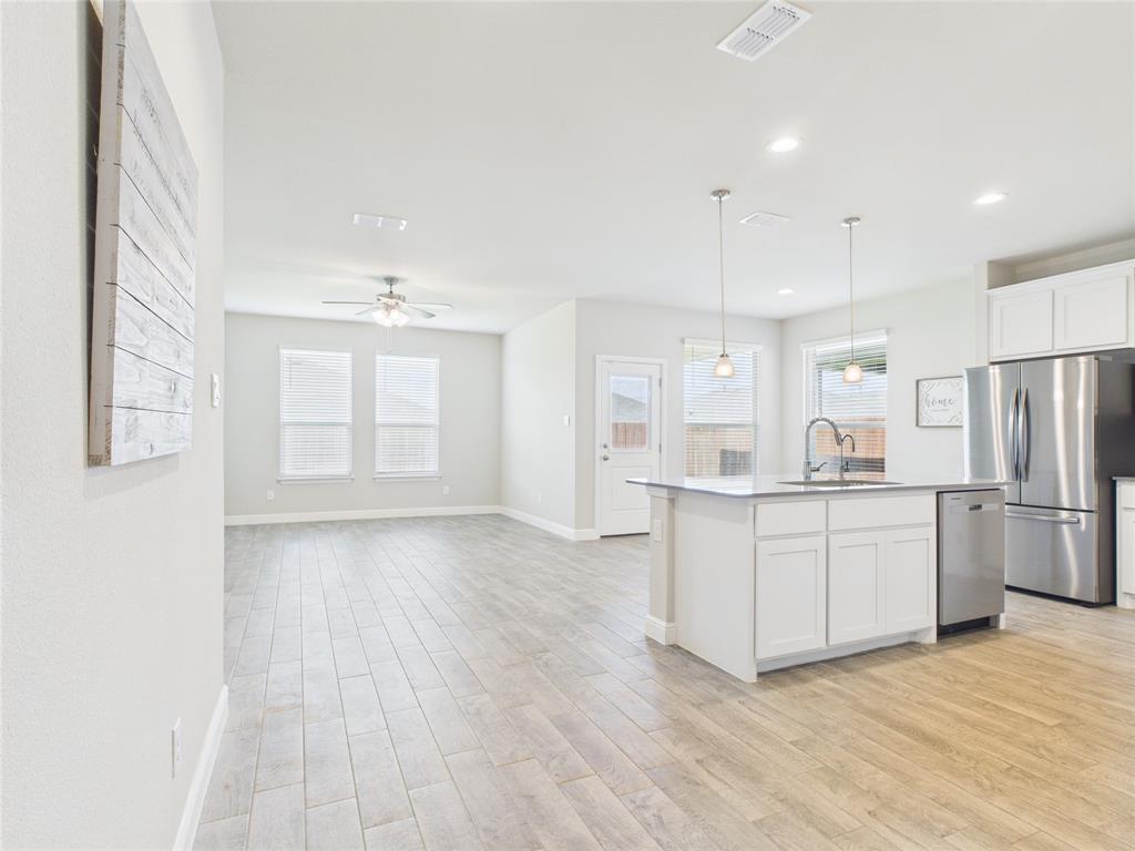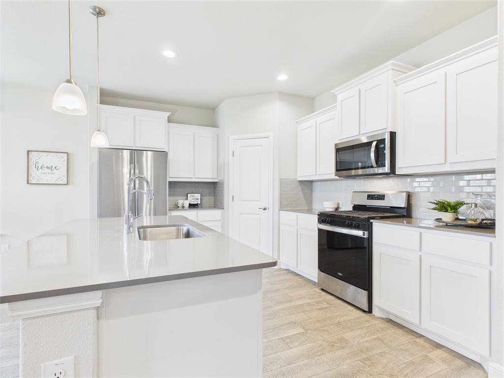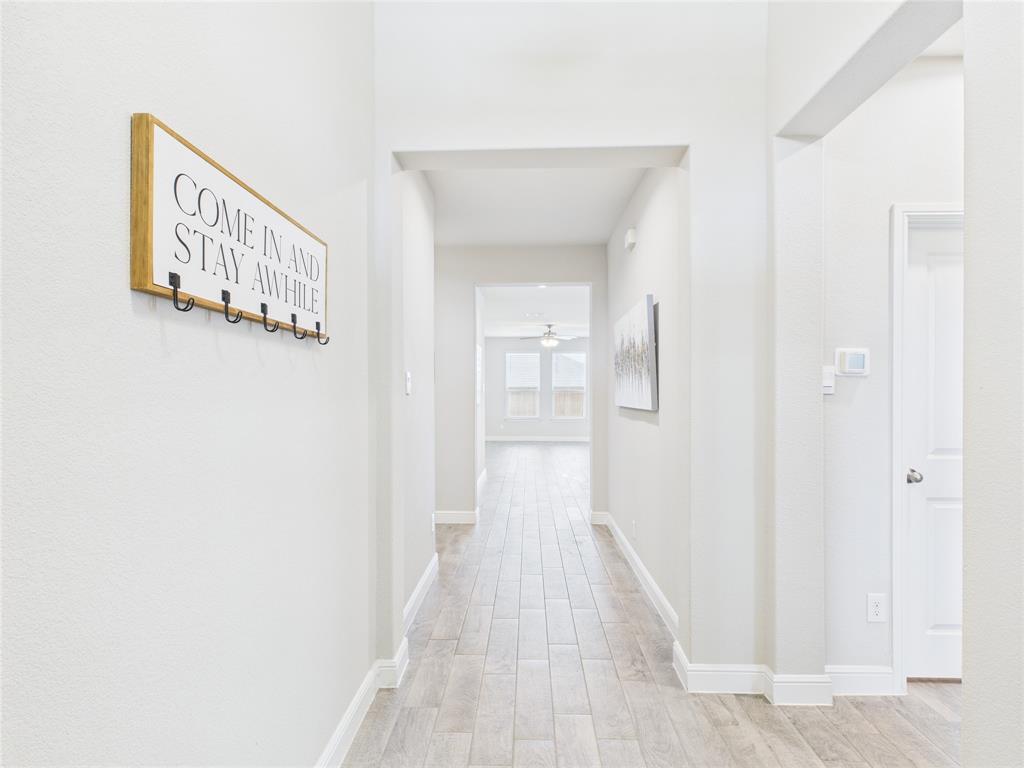 **Price Reduction** Like new 2023 Built Four Bedroom, 2 Bath Home still Feels Like New !! Located in the Master Planned Trails of Elizabeth Creek Community where the features include a Clubhouse with Resort Style Pool, Firepit, Cornhole and even a Splashpad surrounded by a Lazy River! Your monthly payment is substantially lower than other nearby developments due to being in Denton County with NO MUD or PID with a 2024 Assessed Tax Rate of 1.98%. Inside the home is Bright & Clean with Wood Look Tile Flooring plus Energy Efficient LED Lighting. The Kitchen has Wide Cabinet Doors, Stainless Steel Appliances with Gas Range, Microwave, Trough Sink and Quartz Counters. The Large Living Area is Open and filled with Natural Light allowing you to see the Beautiful Backyard. The Dining Area is Cozy and gives access to the Covered Back Patio. The Wonderful Primary Bedroom is complemented by En Suite Bath that includes a Large Shower with Seating Bench, Quartz Covered Double Vanity and a Terrific Closet. You’ll find 2 Bedrooms up front, both with walk in closets and a Designer Style 2nd Bath. Bedroom 4 is secluded down a separate hallway and could be used as a Study, Play Room or 2nd Living Area. There are many possibilities with this home including a Smart Home System that can be used with Switches that will allow you to connect your phone to the Garage Door, HVAC and even turning on and off Lights. With a 2 Block walk to Neighborhood Park & Elementary School or 6 Block walk to the Pool you’ll enjoy more time inside the Community meeting neighbors and feeling connected.