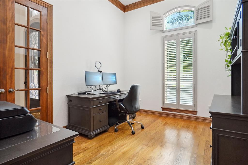 Elegant Custom Home in Colleyville’s Gated Villas of Caldwells Creek – Backing to Greenbelt with Fountain Views. Discover luxury and tranquility in this beautiful one-story patio home, ideally located for easy commuting. Close to DFW Airport, top-rated medical facilities, shopping, dining, and scenic walks. This thoughtfully designed residence features 3 spacious bedrooms, 2 full baths, 2 dining areas, and a dedicated study creating a perfect balance of relaxation and productivity. Enjoy water views from the kitchen, breakfast nook, living room, and enclosed sunroom with HVAC, creating a seamless indoor-outdoor living experience. Grilling is a pleasure on the built-in gas grill with roller shade sun cover conveniently located near the kitchen. Recent updates include fresh interior paint (Benjamin Moore White Dove, June 2025) and new carpet in all bedrooms, complemented by rich hardwood and tile flooring throughout. The private owner’s retreat is separated from secondary bedrooms, offering peace and privacy. Additional highlights: rich wood-stained cabinetry and plantation shutters, KitchenAid built-in 42” French door refrigerator, Class 4 impact-resistant roof and gutters, installed June 2019, oversized walk-in closets, two-car garage with extensive built-in storage. HOA dues include front lawn edging and mowing. 7024 Rosebrook blends upscale living with low-maintenance ease in one of Colleyville’s most desirable communities. Welcome Home.
