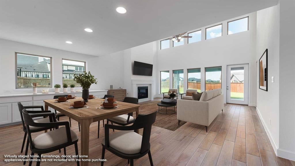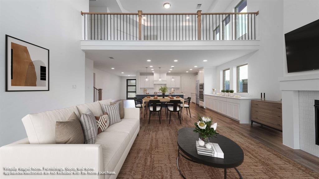 Front porch opens into the entryway. A private guest suite off the main hallway features a full bathroom and walk-in closet. The kitchen hosts an island with built-in seating, 5-burner gas cooktop and corner walk-in pantry. The dining area connects the living spaces. The two-story family room boasts a wood mantel fireplace, wall of windows and the entrance to the covered backyard patio. French doors open into the home office off of the family room. The primary bedroom hosts a wall of windows. The primary suite offers dual vanities, a freestanding tub, glass enclosed shower, two walk-in closets and dual access to the utility room. On the second level you enter the game room with ample natural light. French doors open into the media room. Secondary bedrooms with walk-in closets and a full bathroom complete the upstairs. The mud room with storage is located off of the three-car garage.