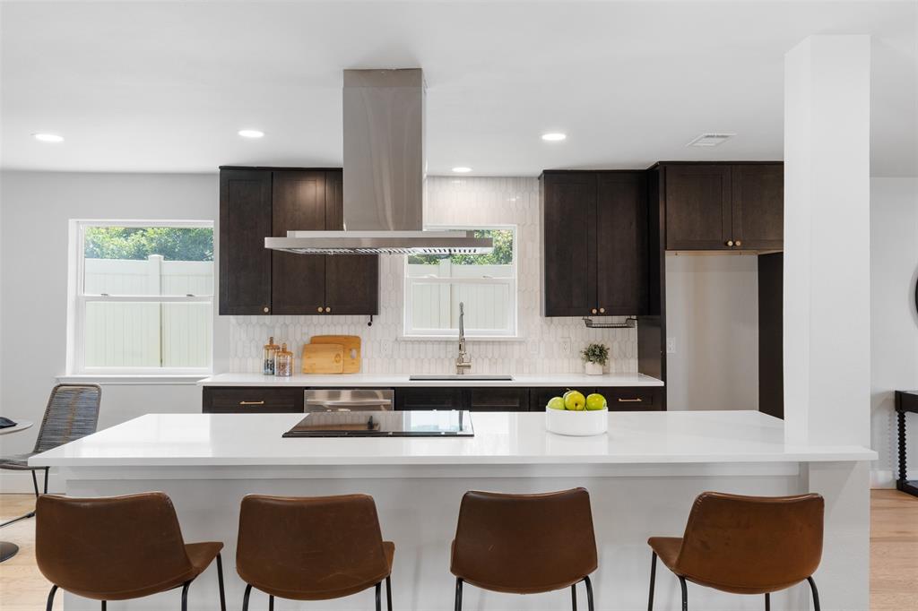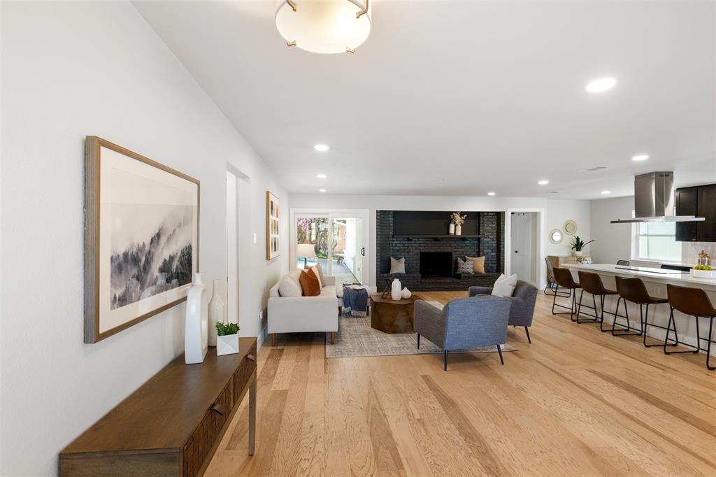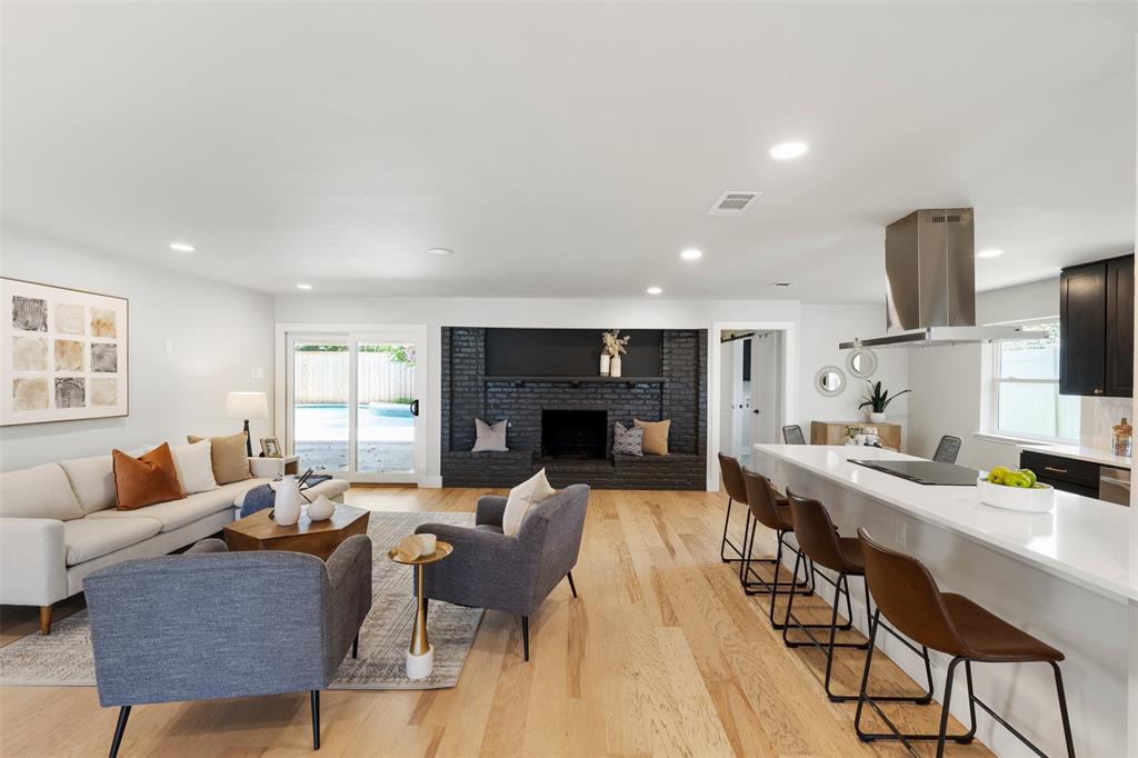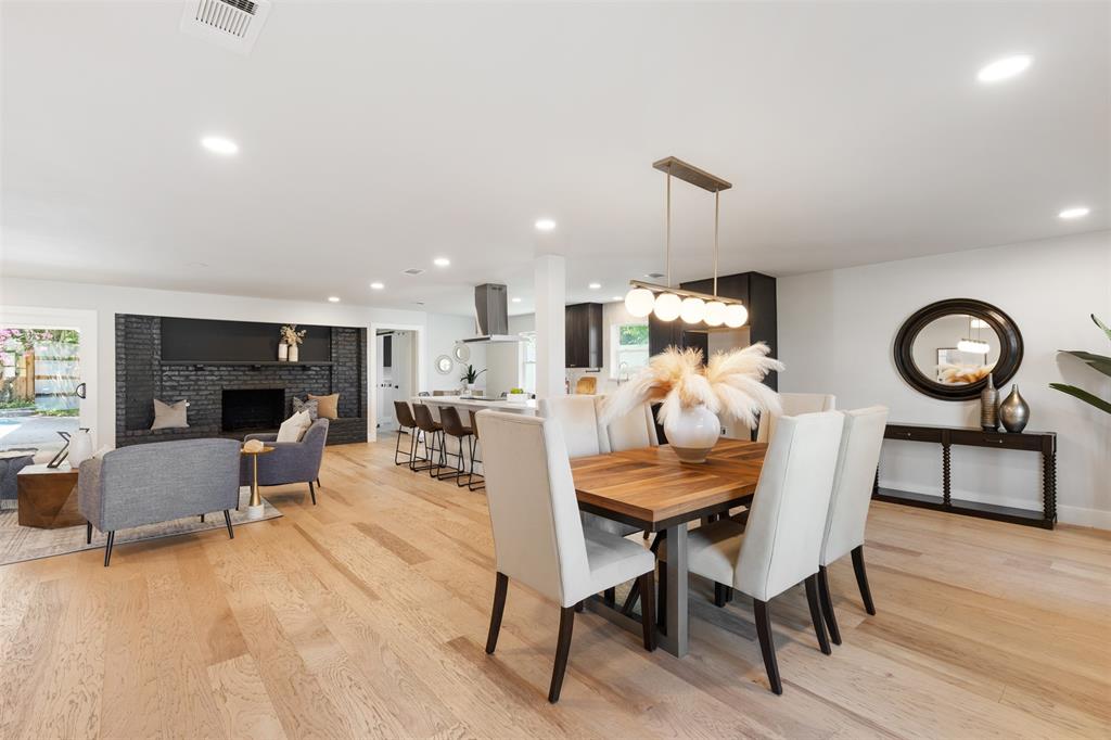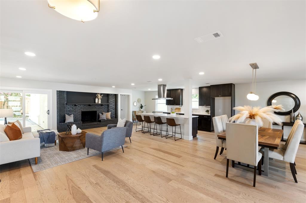 Completely remodeled in 2022 and freshly refreshed in 2025 with new carpet and paint, this home shines with an open-concept layout, light hardwood floors, and magazine-worthy bathrooms. The heart of the home features a cozy brick fireplace, an inviting eat-in kitchen, and an oversized dining area—ideal for both everyday living and memorable gatherings.