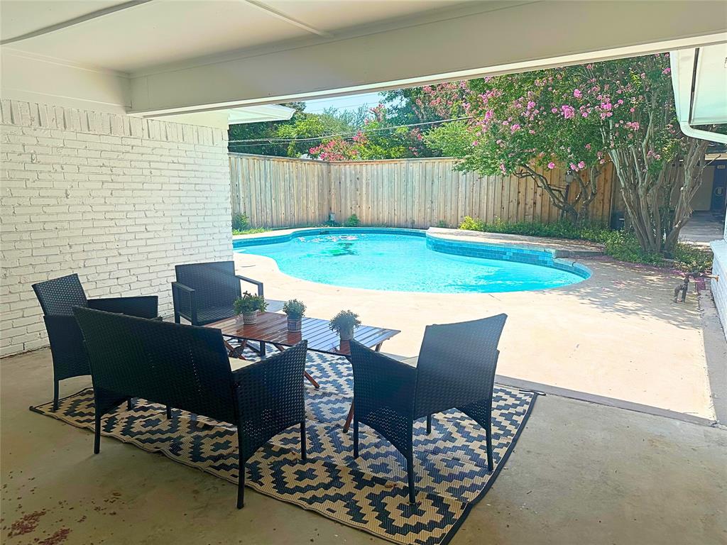 The primary suite is a true retreat, featuring a massive walk-in closet (formerly a bedroom!) that’s perfect for fashion lovers and organization enthusiasts alike. Step outside to your private backyard oasis, where a sparkling pool and expansive covered patio offer endless opportunities for summer fun and year-round relaxation. An electric gate and a brand-new fence (2024) provide added privacy and security.