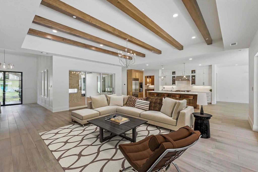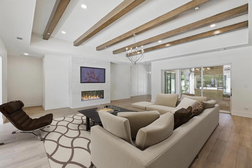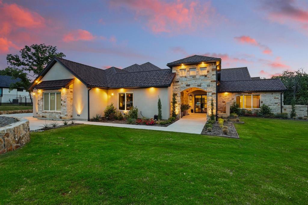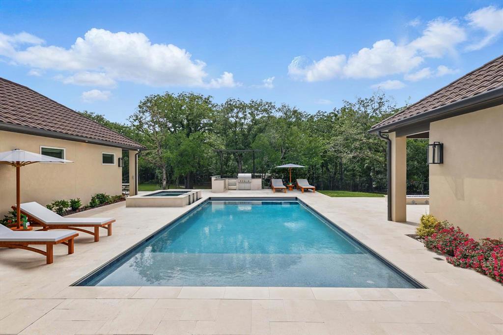 Curated Haven at Castellano - Luxury lives in the details, and this home thought of them all! Tucked at the back of an exclusive gated community in Flower Mound and zoned to Argyle ISD, this exceptional custom home sits on a one-acre lot and was masterfully designed for everyday luxury and effortless entertaining. The heart of the home is the open-concept kitchen and living area with soaring beamed ceilings, showcasing high-end finishes and top-tier appliances including a Sub-Zero fridge, Wolf range, double oven, and refrigerated drawers. A prep kitchen lends itself to hosting with a walk-in pantry, a second dishwasher, wine and beverage fridge, and ice maker. The primary suite feels like a private spa retreat with two walk-in closets, a gym, sauna, coffee bar, massive shower, and even an outdoor shower. Most of the living space is on the first floor, including four spacious bedrooms—each with an ensuite bath and walk-in closet—plus a private office with its own bath that could serve as a sixth bedroom, and a den with built-in desks. Upstairs offers versatility for entertaining or multigenerational living with a game room, kitchenette, full bath, and guest suite. Outdoor living was prioritized with a front courtyard featuring a fireplace and water feature, and a backyard oasis with a pool, spa, firepit, outdoor fireplace, and kitchen with built-in grill and fridge. Every inch was thoughtfully planned for function, comfort, and elevated living. Additional highlights include a 4-car garage with HVAC, dog wash station and 2 EV chargers, whole-home Halo water filtration, smart home features and integrated SONOS system for TVs and room speakers (TVs stay with the home), level 4 tile roof, 2 whole home generators, pool has a built-in hard cover and in floor cleaner and so much more! Visit www.5017Castellano.com for more information, photos, floor plan and 3D tour.