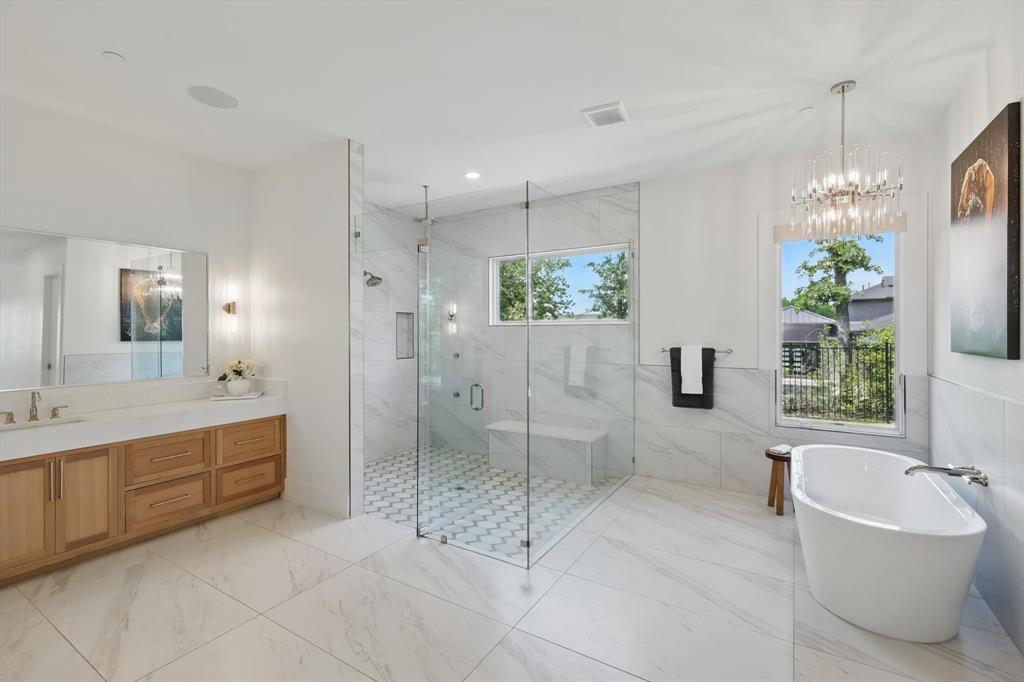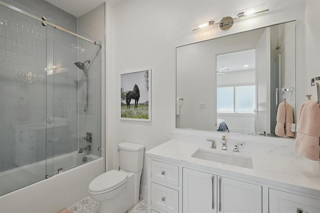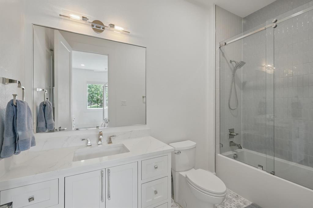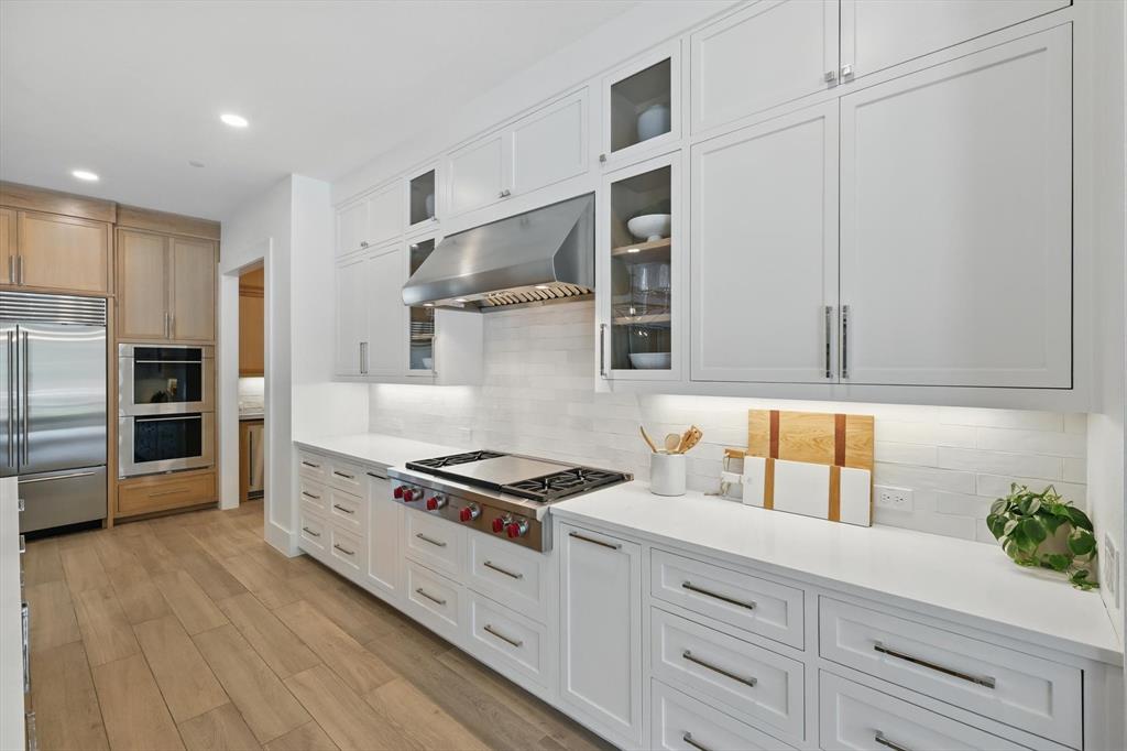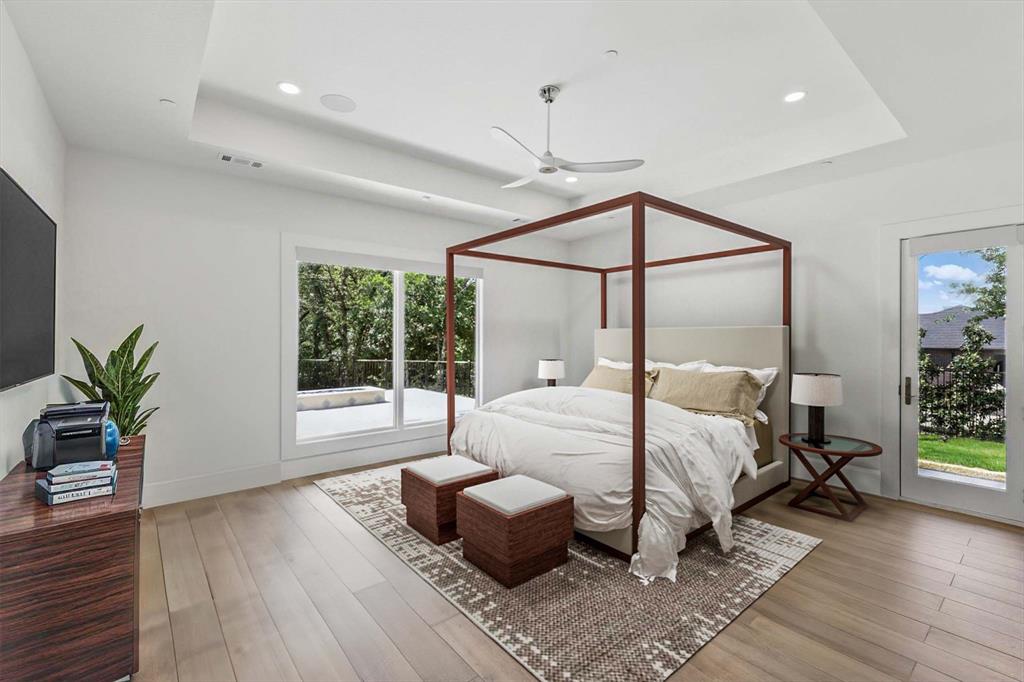 Curated Haven at Castellano - Luxury lives in the details, and this home thought of them all! Tucked at the back of an exclusive gated community in Flower Mound and zoned to Argyle ISD, this exceptional custom home sits on a one-acre lot and was masterfully designed for everyday luxury and effortless entertaining. The heart of the home is the open-concept kitchen and living area with soaring beamed ceilings, showcasing high-end finishes and top-tier appliances including a Sub-Zero fridge, Wolf range, double oven, and refrigerated drawers. A prep kitchen lends itself to hosting with a walk-in pantry, a second dishwasher, wine and beverage fridge, and ice maker. The primary suite feels like a private spa retreat with two walk-in closets, a gym, sauna, coffee bar, massive shower, and even an outdoor shower. Most of the living space is on the first floor, including four spacious bedrooms—each with an ensuite bath and walk-in closet—plus a private office with its own bath that could serve as a sixth bedroom, and a den with built-in desks. Upstairs offers versatility for entertaining or multigenerational living with a game room, kitchenette, full bath, and guest suite. Outdoor living was prioritized with a front courtyard featuring a fireplace and water feature, and a backyard oasis with a pool, spa, firepit, outdoor fireplace, and kitchen with built-in grill and fridge. Every inch was thoughtfully planned for function, comfort, and elevated living. Additional highlights include a 4-car garage with HVAC, dog wash station and 2 EV chargers, whole-home Halo water filtration, smart home features and integrated SONOS system for TVs and room speakers (TVs stay with the home), level 4 tile roof, 2 whole home generators, pool has a built-in hard cover and in floor cleaner and so much more! Visit www.5017Castellano.com for more information, photos, floor plan and 3D tour.