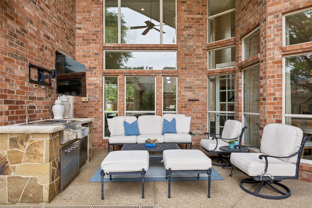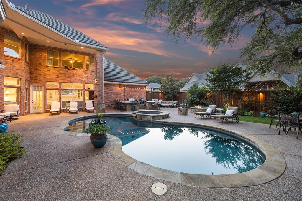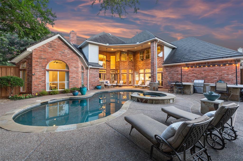 Meticulously updated with on-trend style, this fully remodeled, one-of-a-kind stately home is nestled in the highly sought-after and established Deerfield neighborhood. Set on an oversized lot in a premier location, this home offers a rare combination of luxury, functionality, and show-stopping design. Beautiful formal dining room with fireplace. At the heart of the home is a reimagined chef’s kitchen featuring custom cabinetry, an oversized island, high-end Sub-Zero and Wolf appliances, and designer flooring. The kitchen opens to a bright, airy living space with soaring ceilings, dramatic windows, and an abundance of natural light. The tranquil primary suite is a true retreat, offering tall windows, high ceilings, generous space, and a spa-like ensuite bath. A custom-built bar with a wine cooler, Sub-Zero fridge, and ice maker makes entertaining easy and elegant. New lighting selections throughout elevate the entire home.  Step outside into an oversized resort-style backyard with a sparkling pool and a raised hot tub-spa, a firepit, and a fully equipped Lynx outdoor kitchen. The covered patio features three outdoor living areas, a premium sound system, and ample space for unforgettable gatherings. Additional highlights include a 50-year steel roof, huge walk-in attic for storage, and a spacious 3-car garage with built-in cabinetry. This extraordinary home is a rare opportunity—schedule your private showing today!