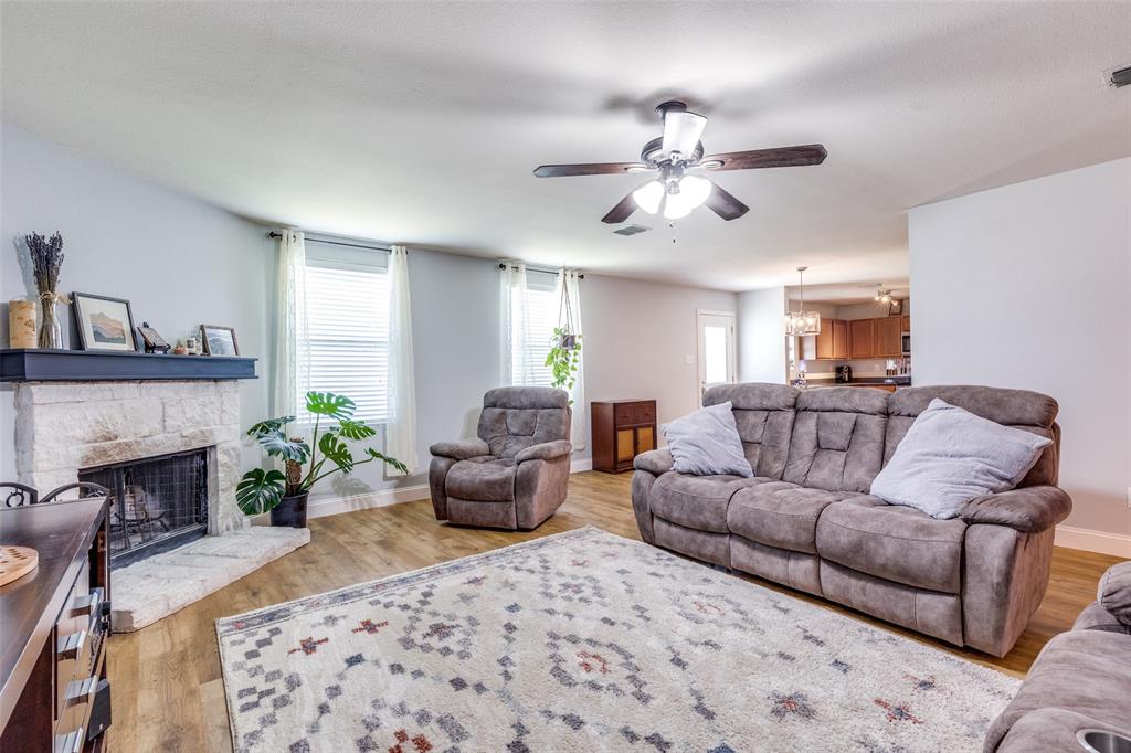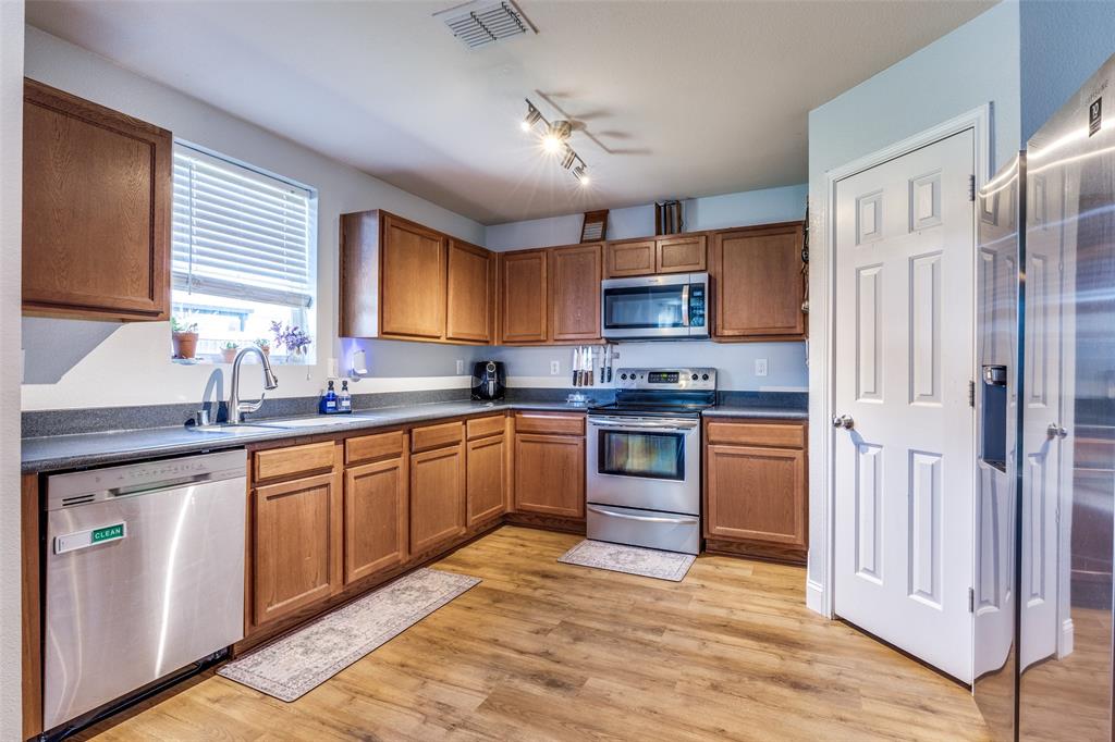WOW 5 bedrooms, 3 full baths, 3 living areas, 3440 square feet per tax for under $400,000. Open floor plan with new engineered plank flooring downstairs. A downstairs bedroom is perfect for a study or family member with access to full bath. Kitchen has loads of cabinets and counter space along with a good sized pantry and stainless appliances. Two living areas and two dining areas downstairs allows plenty of room for entertaining. Game room upstairs comes with a projector and screen for movie night. Primary bedroom is very inviting with room for a sitting area. Primary bath has a soaking tub, separate shower and two walk in closets. The three additional bedrooms upstairs are split from the primary. All bedrooms are good sized. Fully fenced backyard with storage building and patio. The roof was replaced in 2025 and is an Impact Resistive Roof. Agent is related to Seller.