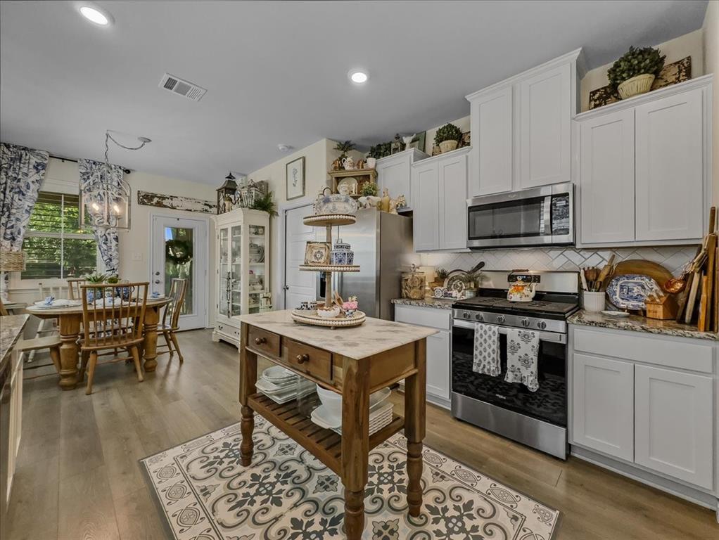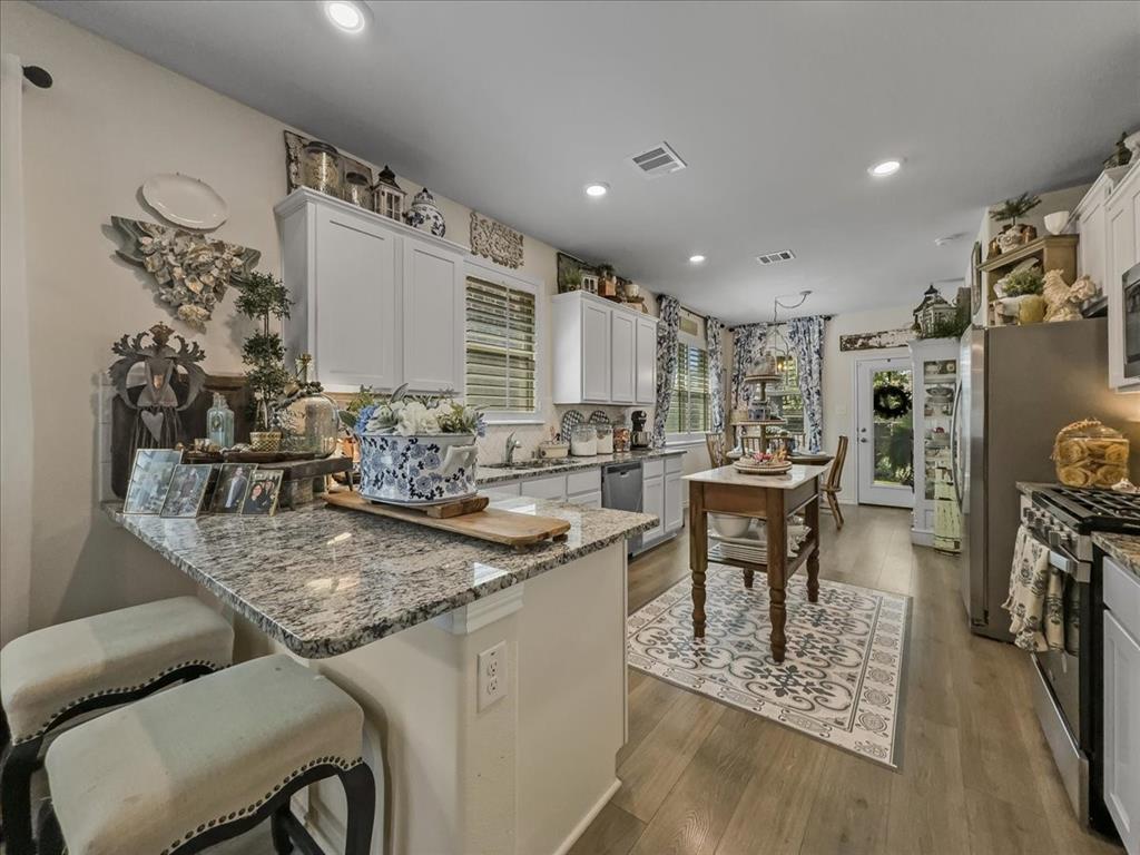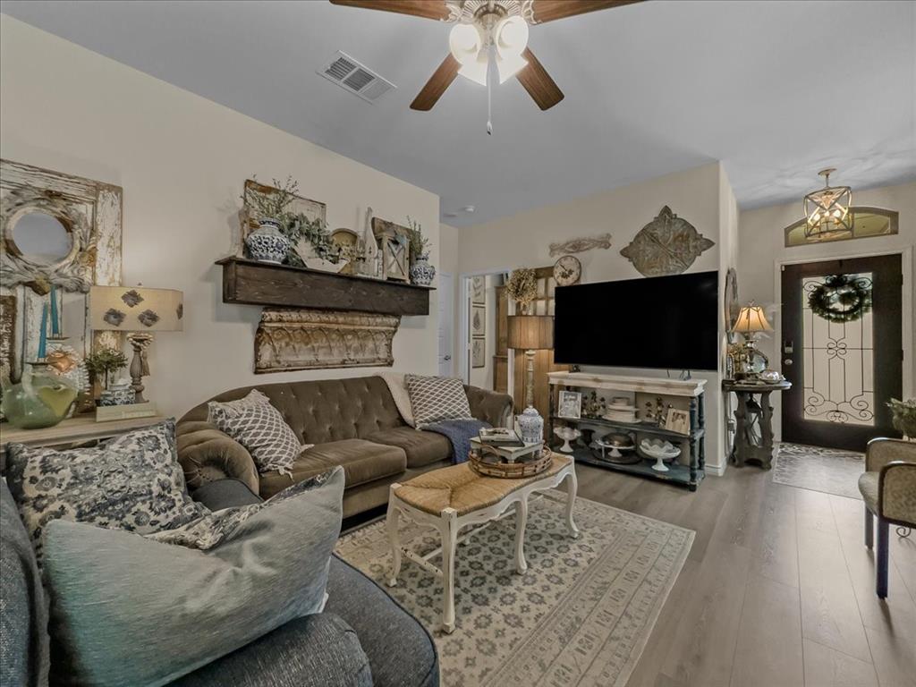 From the moment you drive up to this adorable home to the moment you step through the beautiful front door, this home will take your breath away and you will realize you're about to experience something special. Gorgeous open floorplan with a cozy feeling offers laminate floors, plantation shutters, neutral paint colors, upgraded light fixtures and so much love and care. Kitchen opens to the living area for easy entertaining and features granite counters, gas range, white cabinetry, and a lovely dining area that looks out onto the covered patio. Luxurious primary bedroom with an ensuite bathroom and a huge walk-in closet with a window to brighten up the space. Split bedroom arrangement with the secondary bedrooms and guest bath at the back of the home. Covered patio is perfect for outdoor living and entertaining. Enjoy the many amenities this neighborhood has to offer including a playground, picnic pergola, grills and a community pool including a toddler pool just a short walk to the end of the street. Enjoy the pool without the maintenance! Oversized 2 car garage adds extra space for storage. Tankless water heater. Convenient location within a short drive or bike ride to many restaurants and shopping.