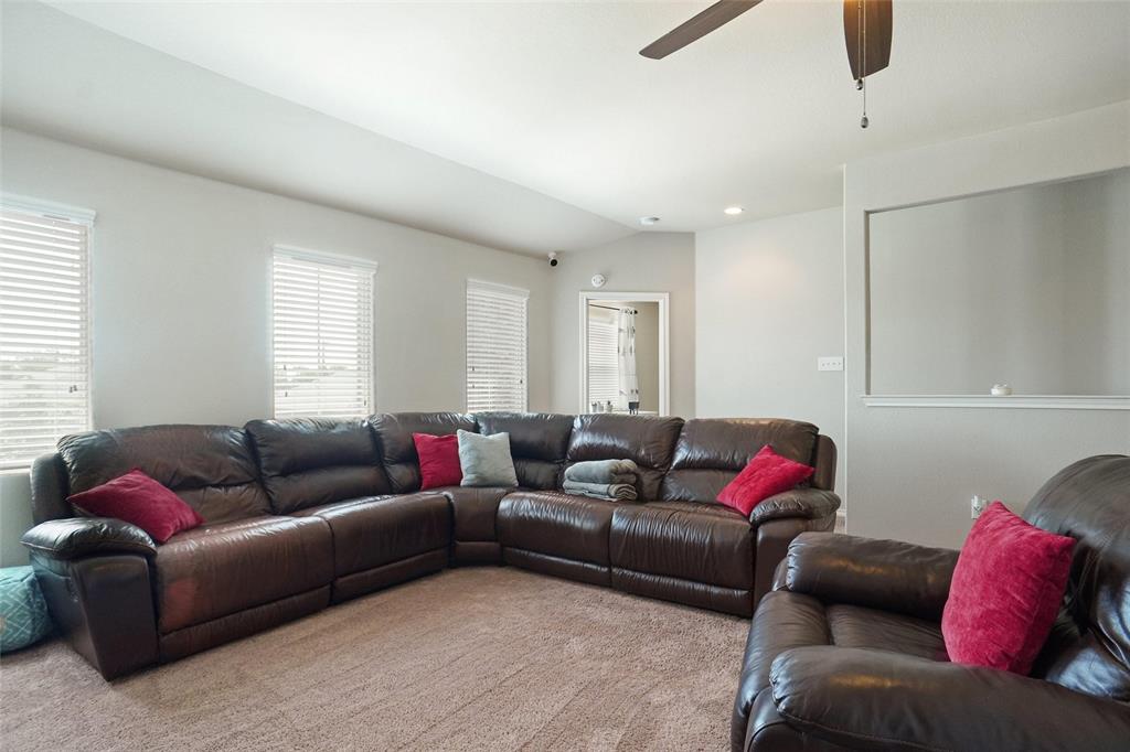The kitchen is the heart of the home with granite countertops, a center island, and an open layout that flows into the living room. Downstairs includes a private office space, while upstairs boasts an additional living area great for a game room or media space.