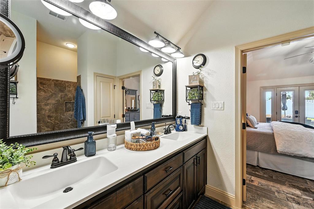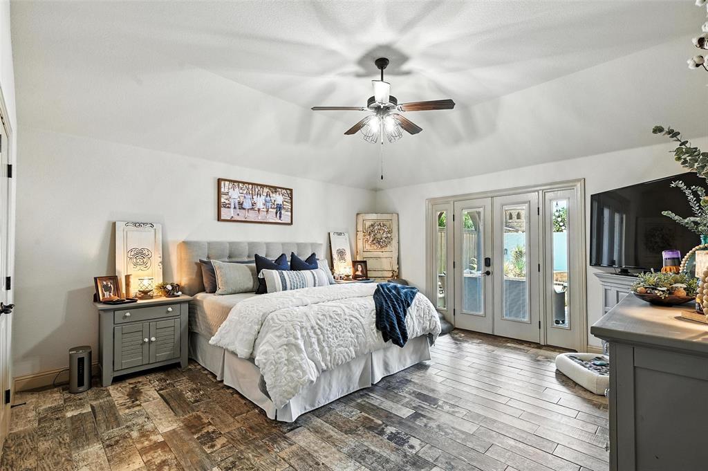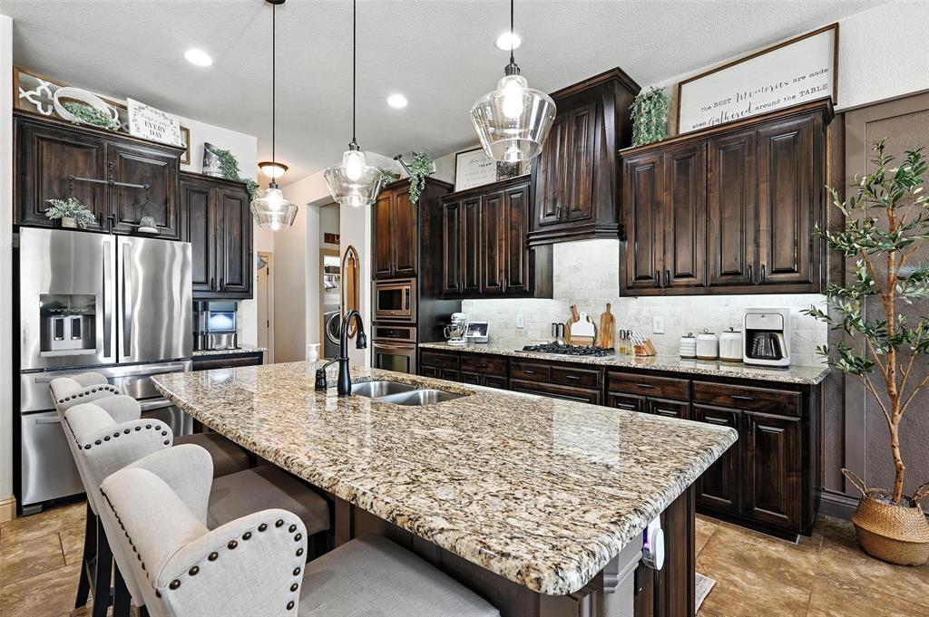 Welcome to this stunning Eagle Ranch gem—boasting 5 bedrooms, 2 full bathrooms, and an incredible backyard oasis, this home is packed with high-end updates and thoughtful features throughout. Step inside to find crown molding, custom knotty cabinetry, and decorative lighting in every room. The open, split-bedroom floor plan offers both privacy and flow, with a home gym conversion and a spacious laundry room conveniently connected to the primary closet. The kitchen shines with a gas stove and walk-in pantry, while the Primary Suite opens through elegant French doors to your private retreat. Outside, enjoy a HEATED pool for year-round enjoyment, a full outdoor kitchen with a Traeger grill (included!), custom Jellyfish lighting, lush landscaping, and a board-on-board 8-foot privacy fence. Pool equipment is neatly tucked away behind a custom gate, and the garage includes cabinets, a fridge nook, and a Level 2 EV charger. This is a Home you will NEVER want to leave!
