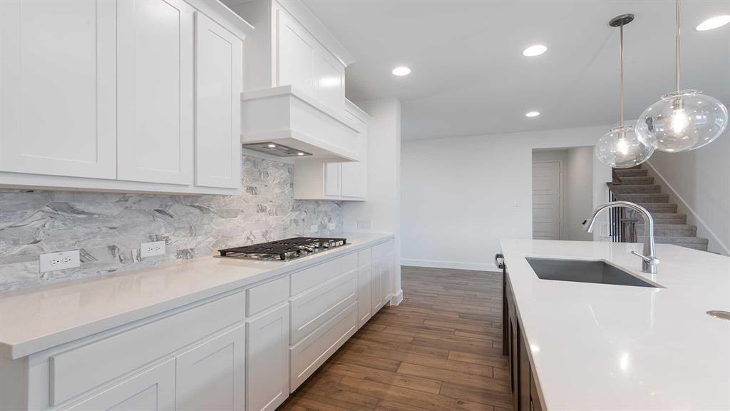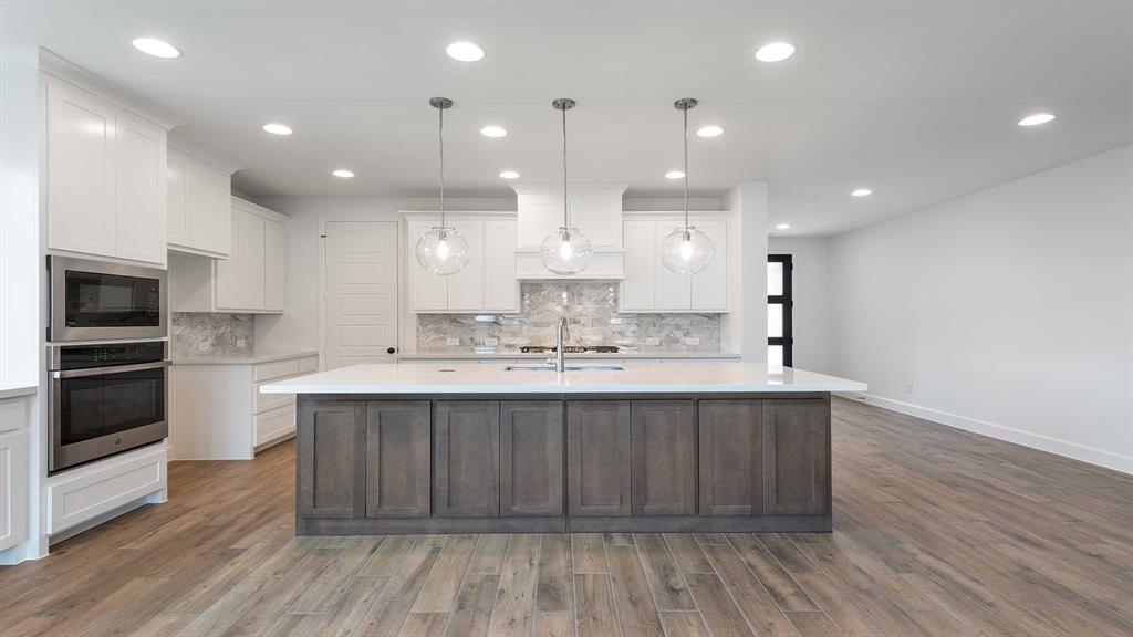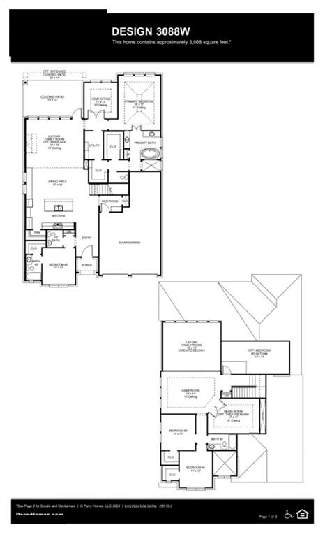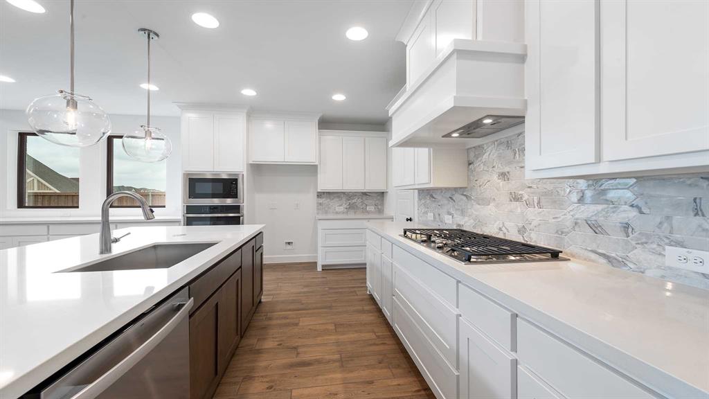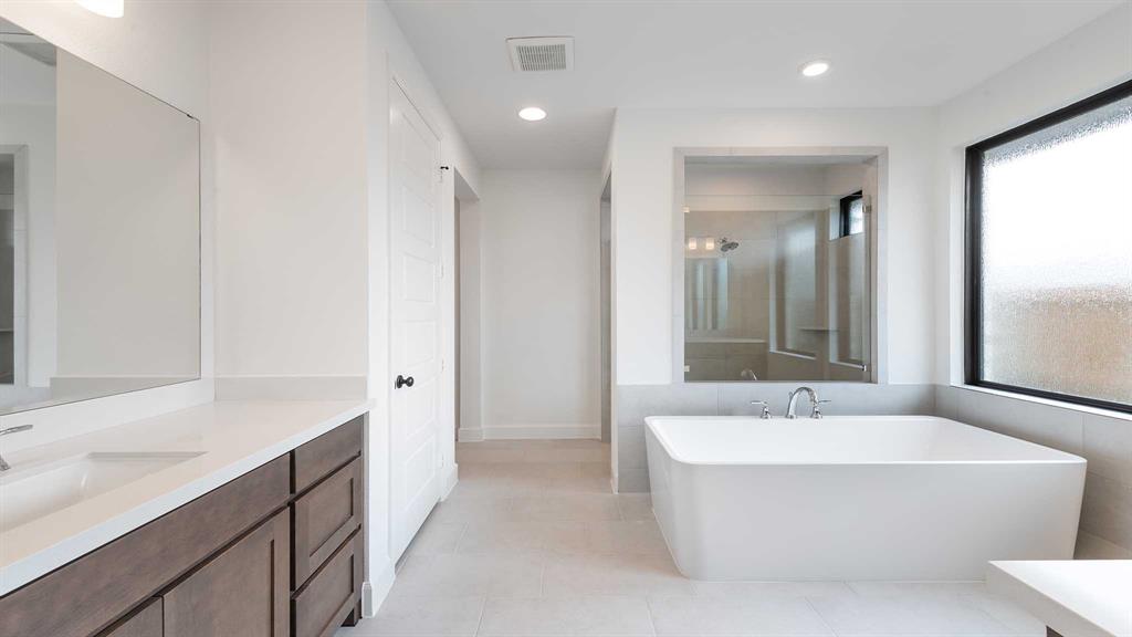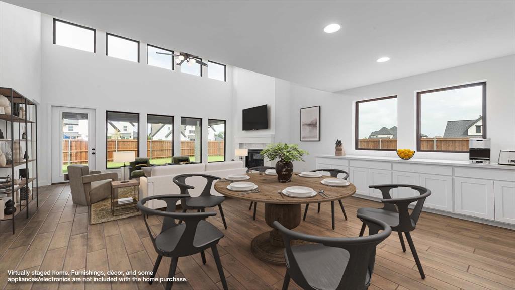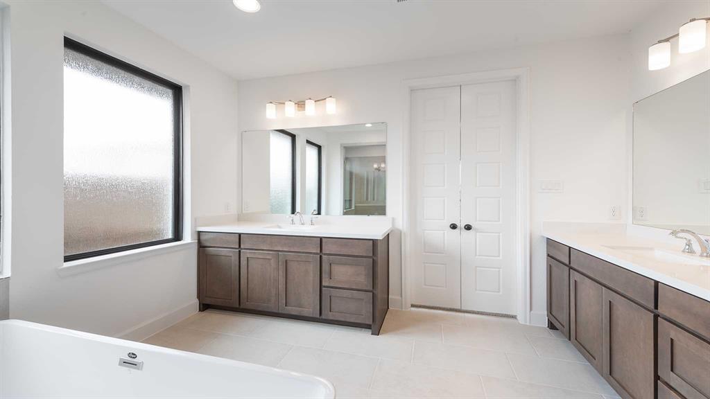 Front porch opens into the entryway. A private guest suite off the main hallway features a full bathroom and walk-in closet. The kitchen hosts an island with built-in seating, 5-burner gas cooktop and corner walk-in pantry. The dining area connects the living spaces. The two-story family room boasts a wood mantel fireplace, wall of windows and the entrance to the covered backyard patio. French doors open into the home office off of the family room. The primary bedroom hosts a wall of windows. The primary suite offers dual vanities, a freestanding tub, glass enclosed shower, two walk-in closets and dual access to the utility room. On the second level you enter the game room with ample natural light. French doors open into the media room. Secondary bedrooms with walk-in closets and a full bathroom complete the upstairs. The mud room with storage is located off of the three-car garage.