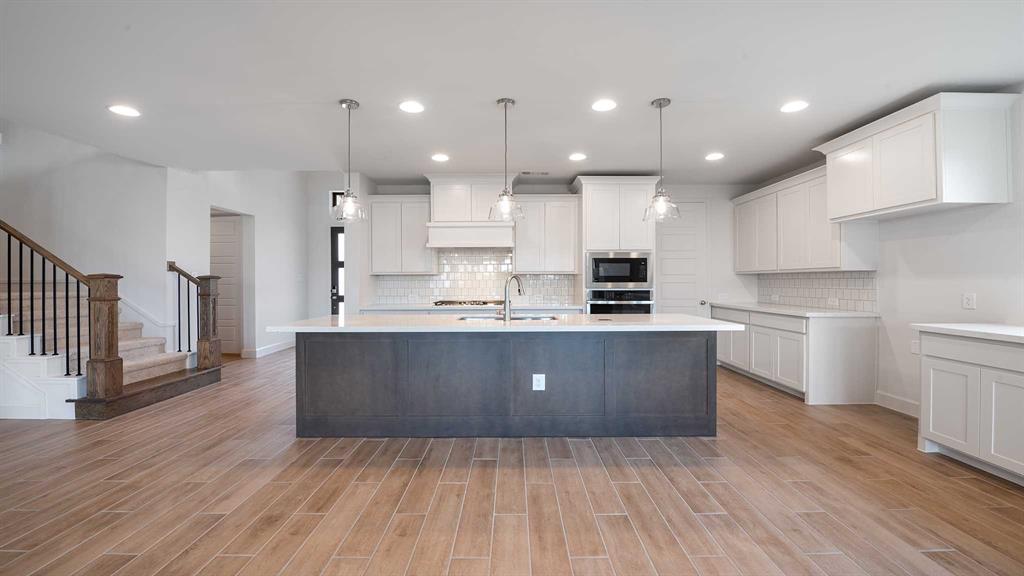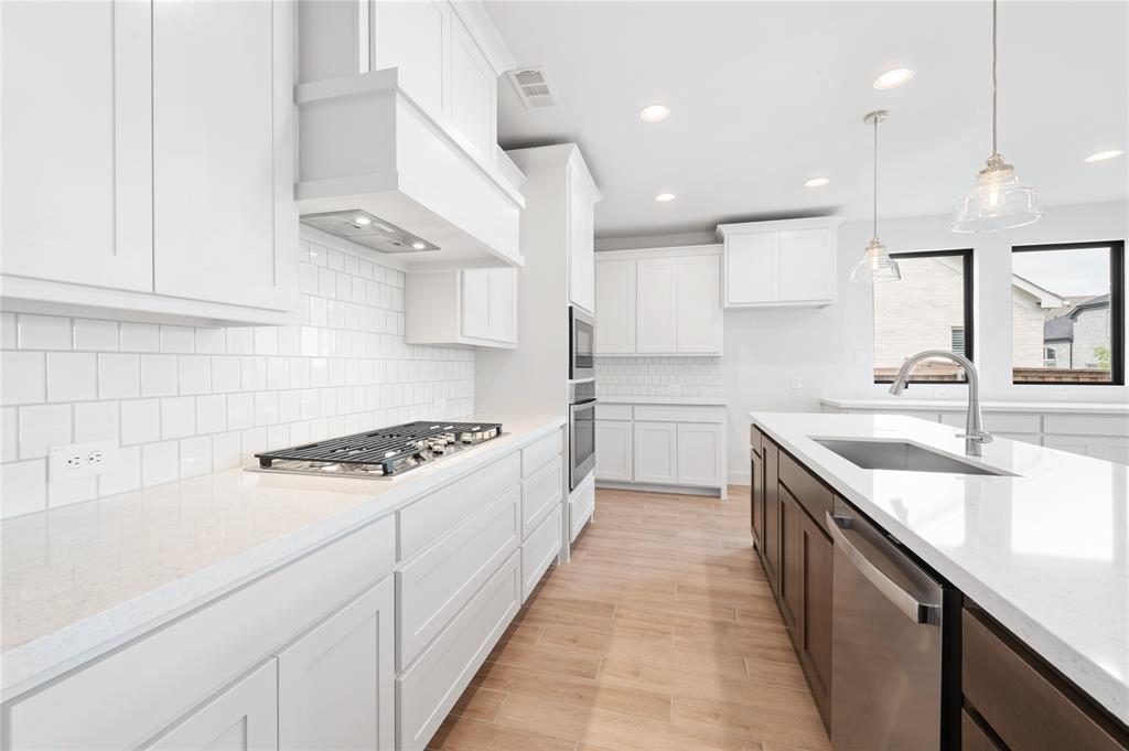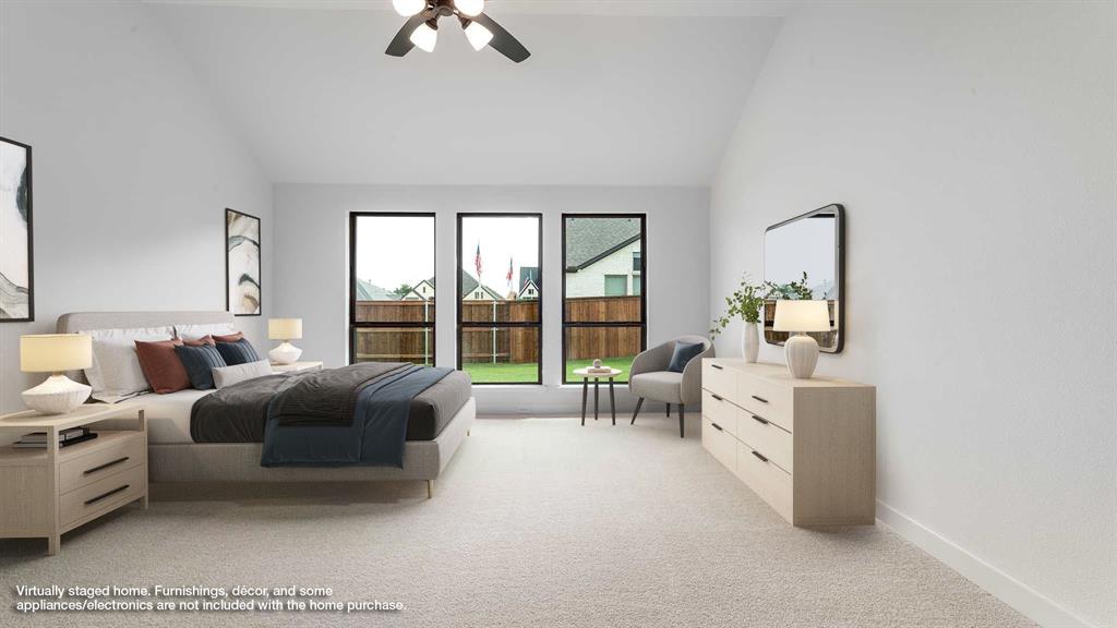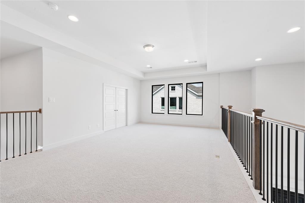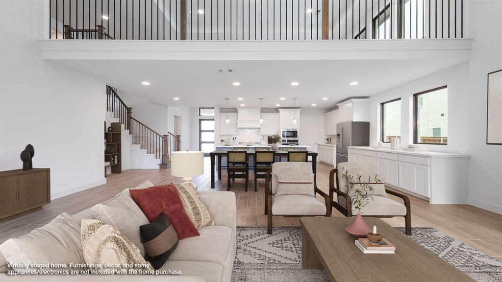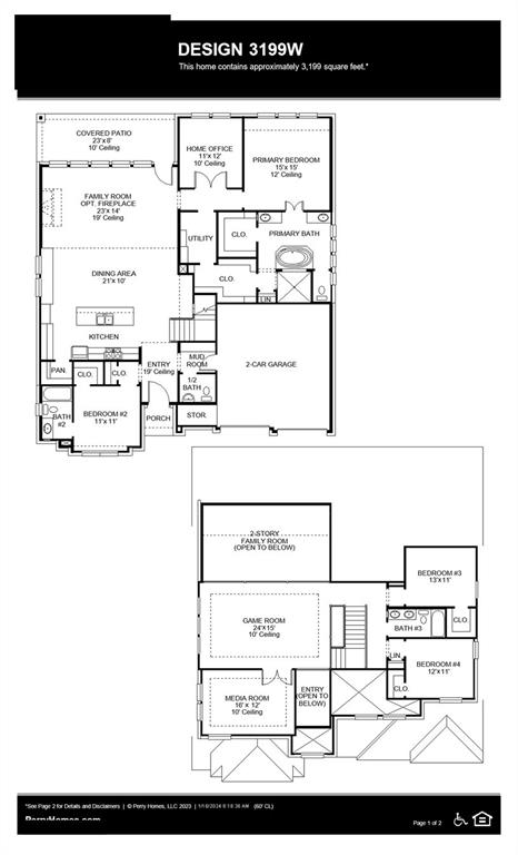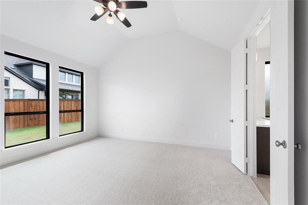 The front porch opens to reveal soaring 19-foot ceilings. Off the entryway, a private guest suite awaits, complete with a full bathroom and walk-in closet. The kitchen showcases an island with built-in seating, 5-burner gas cooktop, a corner pantry, and a seamless flow into the designated dining area. The open family room boasts a wood mantel fireplace and wall of windows. French doors lead into the home office just off the family room. The primary bedroom features three large windows, filling the room with light. Double doors open into the primary suite, offering dual vanities, a freestanding tub, separate glass-enclosed shower, linen closet, two spacious walk-in closets, and private access to the utility room. Upstairs, a spacious game room overlooks the family room below. French doors lead into the media room. Secondary bedrooms which share a full bathroom, complete the second level. Covered backyard patio. The mud room is located just off the two-car garage with additional storage space.