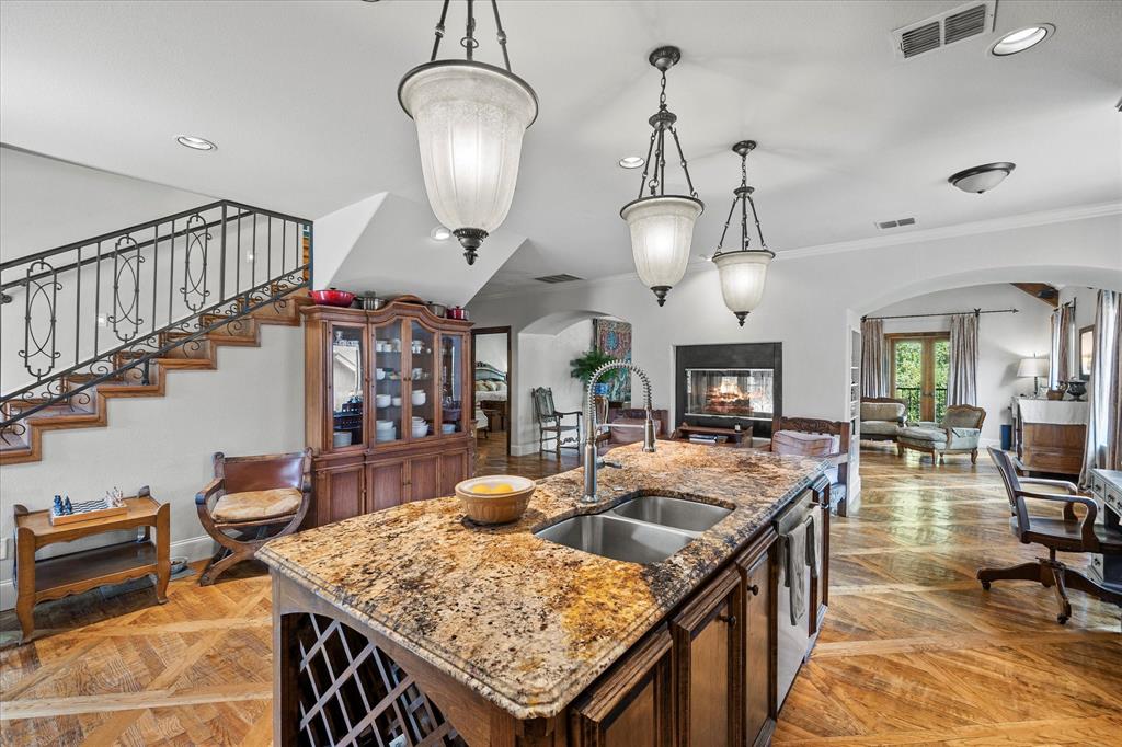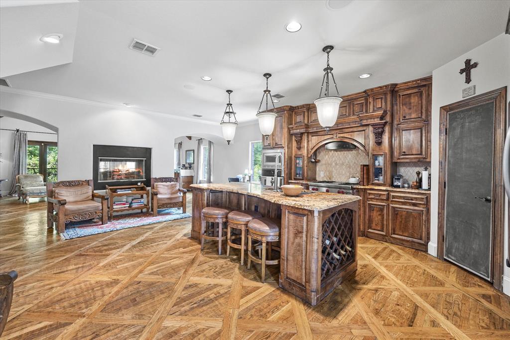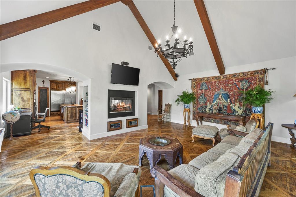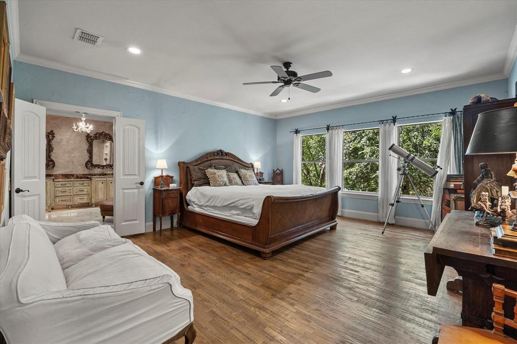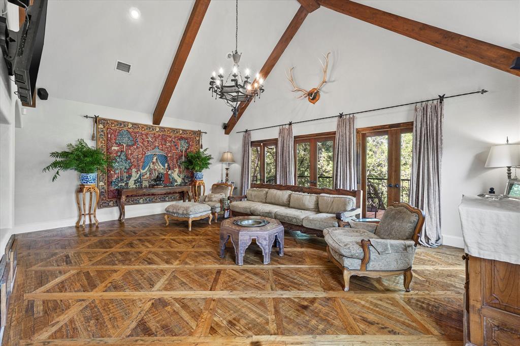 Escape the ordinary and discover a home where old-world elegance meets modern luxury. Nestled among the mature trees of the exclusive Chandlers Landing community, this custom English Country-style residence is more than just a house; it's a sanctuary! The home’s narrative is woven with newly refinished hand-scraped hardwood floors, exposed wood beams, and a magnificent double-sided fireplace that anchors the living space. The craftsmanship is evident in every detail, from the custom ironwork on the staircase to the meticulously chosen stone accents. The heart of the home is a gourmet kitchen that features a large granite island and commercial-grade appliances. Tucked-away, you will find a private office- the perfect place for focus and productivity. The primary suite offers a spacious sitting area, a luxurious ensuite bath with a jetted tub and separate stone shower, and a walk-in custom designed dressing room. The grand living area opens to a massive covered balcony overlooking a serene view of the greenbelt—a perfect spot for a morning coffee. But the real showstopper is the lower level. Here, an entertainer’s paradise awaits. The grotto-style outdoor living area features a built-in grill, sink, and mini-refrigerator. With multiple sitting areas and a dedicated spot for a hot tub, this space is ready for entertaining guests. Upstairs, three additional bedrooms, a game room, and a second laundry room ensure everyone has their own space. One of these bedrooms is versatile enough to serve as a media room. This home isn’t just about its walls; it’s about the life it enables. As a resident of Chandlers Landing, you gain access to unparalleled amenities: a gated community with 24-hour security, club house, restaurant, two pools, parks, tennis courts, and even lake and marina access with a private beach- all golf cart accessible. Experience the perfect blend of a peaceful, private residence and the vibrant, community-focused lifestyle you’ve been searching for.