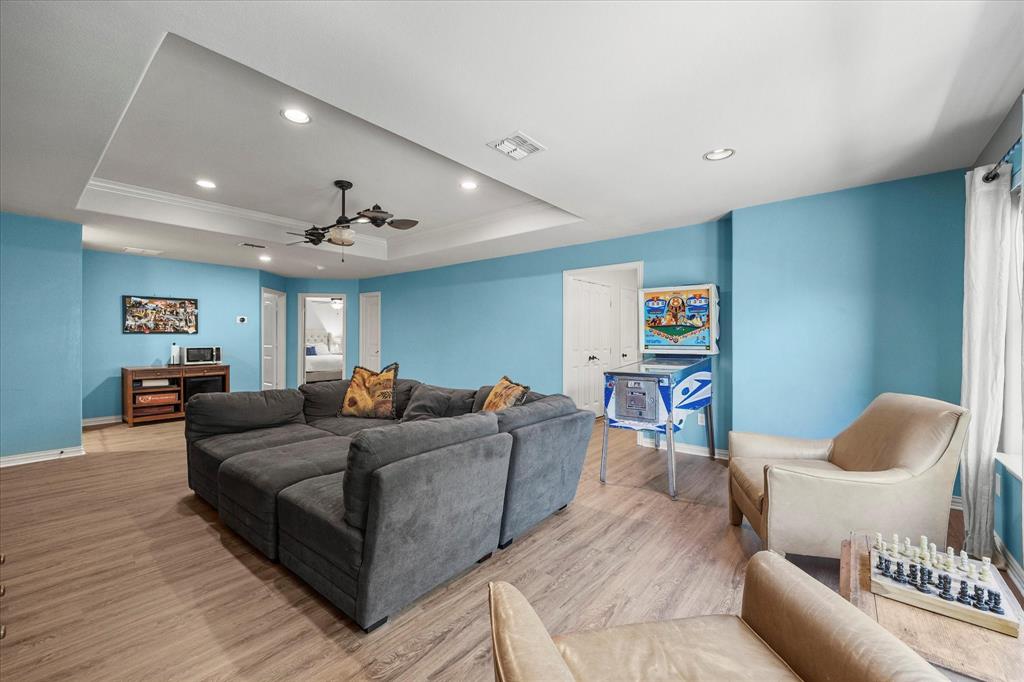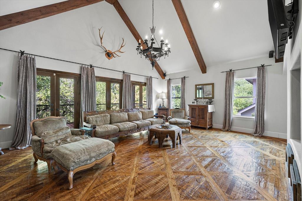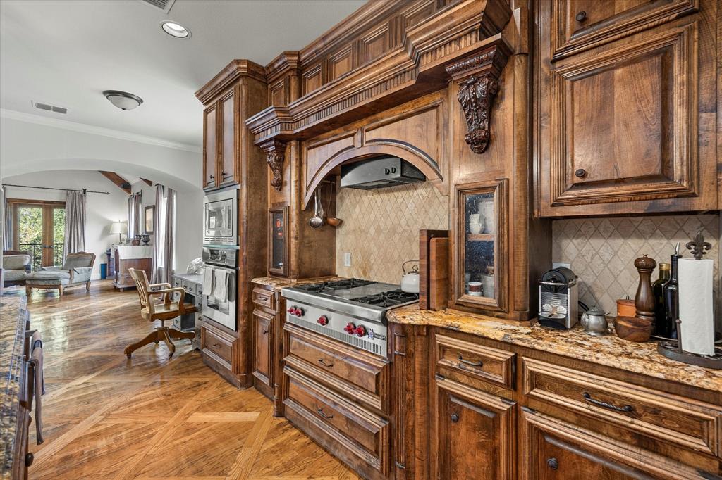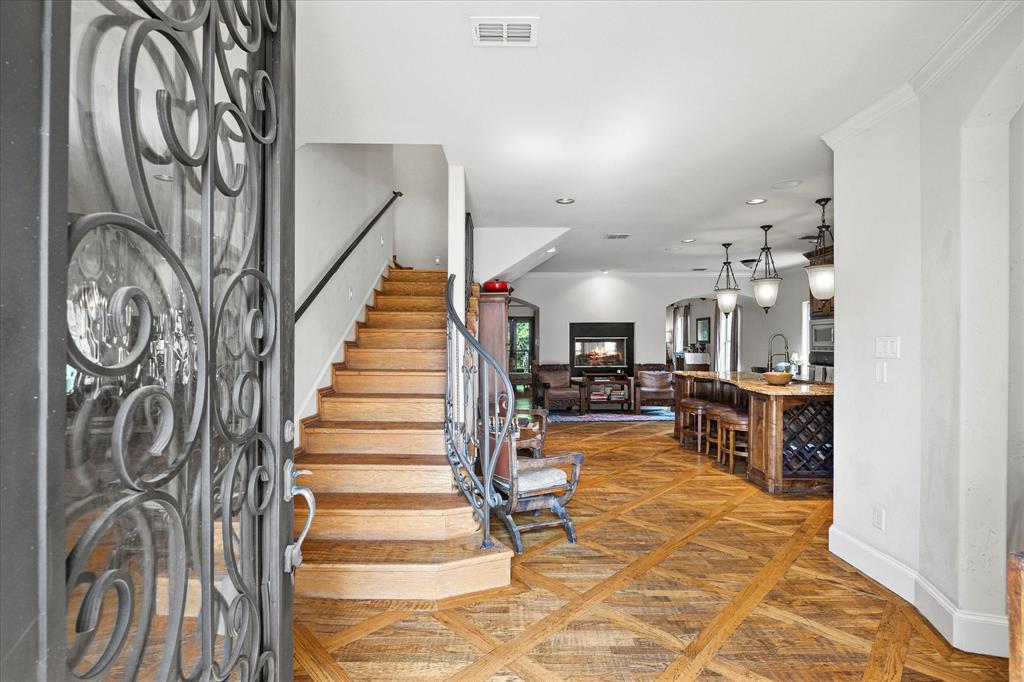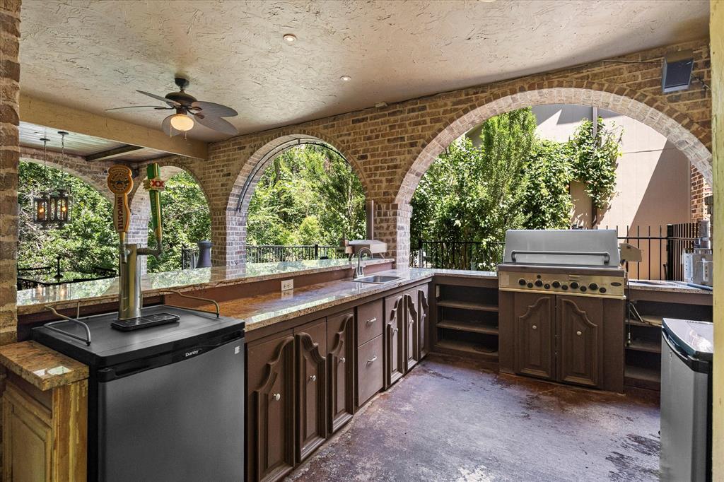 Escape the ordinary and discover a home where old-world elegance meets modern luxury. Nestled among the mature trees of the exclusive Chandlers Landing community, this custom English Country-style residence is more than just a house; it's a sanctuary! The home’s narrative is woven with newly refinished hand-scraped hardwood floors, exposed wood beams, and a magnificent double-sided fireplace that anchors the living space. The craftsmanship is evident in every detail, from the custom ironwork on the staircase to the meticulously chosen stone accents. The heart of the home is a gourmet kitchen that features a large granite island and commercial-grade appliances. Tucked-away, you will find a private office- the perfect place for focus and productivity. The primary suite offers a spacious sitting area, a luxurious ensuite bath with a jetted tub and separate stone shower, and a walk-in custom designed dressing room. The grand living area opens to a massive covered balcony overlooking a serene view of the greenbelt—a perfect spot for a morning coffee. But the real showstopper is the lower level. Here, an entertainer’s paradise awaits. The grotto-style outdoor living area features a built-in grill, sink, and mini-refrigerator. With multiple sitting areas and a dedicated spot for a hot tub, this space is ready for entertaining guests. Upstairs, three additional bedrooms, a game room, and a second laundry room ensure everyone has their own space. One of these bedrooms is versatile enough to serve as a media room. This home isn’t just about its walls; it’s about the life it enables. As a resident of Chandlers Landing, you gain access to unparalleled amenities: a gated community with 24-hour security, club house, restaurant, two pools, parks, tennis courts, and even lake and marina access with a private beach- all golf cart accessible. Experience the perfect blend of a peaceful, private residence and the vibrant, community-focused lifestyle you’ve been searching for.
