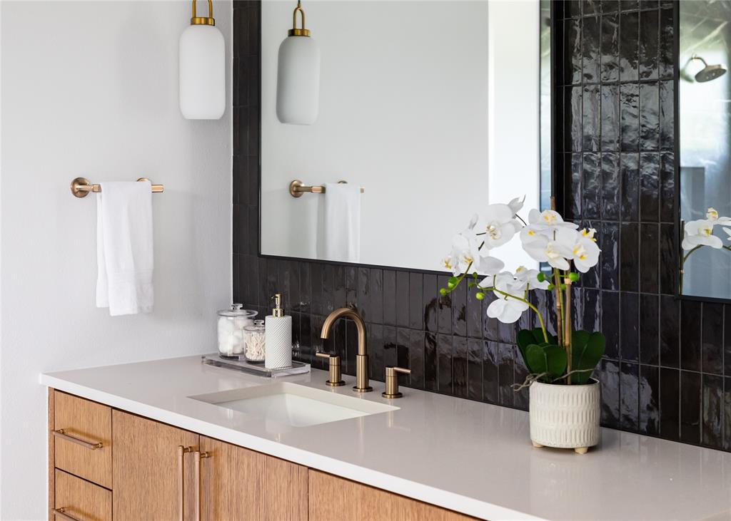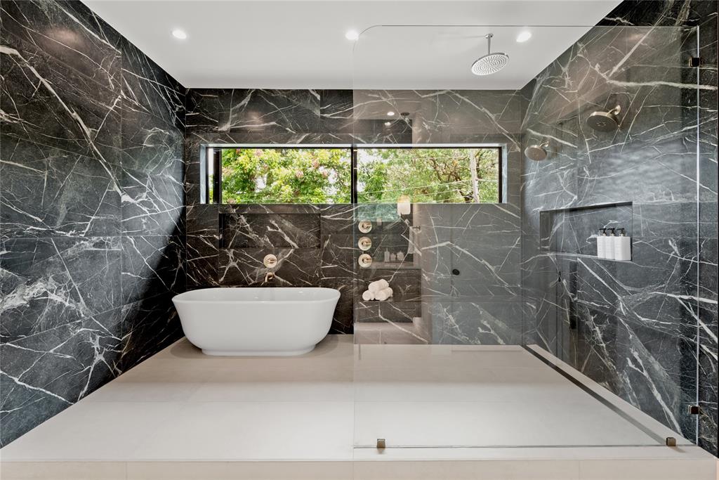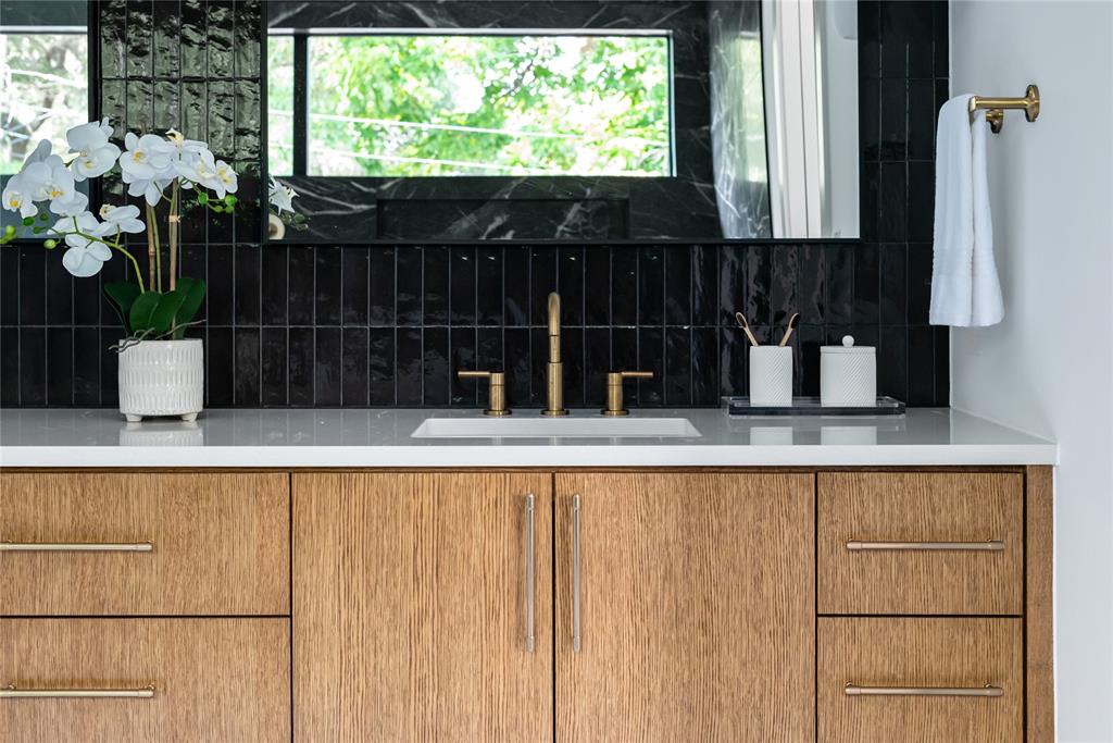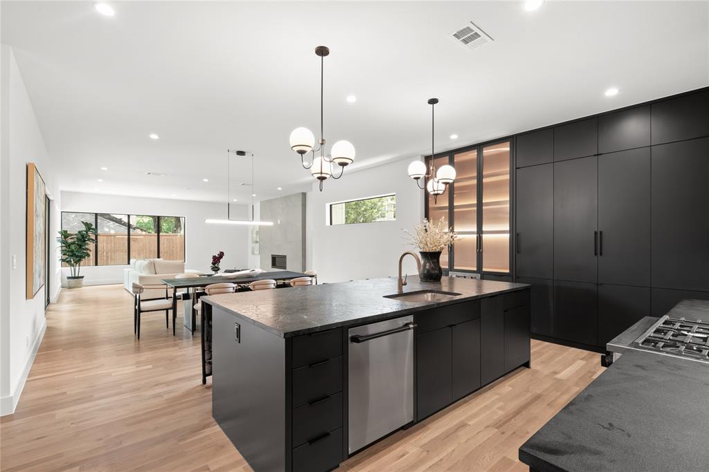 Sensational Modern home in Wilshire Park by acclaimed builder Avant Group, now available in coveted Mockingbird Elementary attendance zone. This North facing, 5 bed, 5.1 bath home features bold modern designs and unmatched quality throughout. Starting with real concrete stucco and zero-maintenance NewTech Wood siding, followed by the soaring 20ft ceiling foyer with loads of natural light, a jaw-dropping Kitchen anchored by a 10ft island adorned in Black Diamond Leathered Quartzite and surrounded by floor-to-ceiling custom wood cabinetry, GE® Cafe® 48in built-in refrigerator & 6-burner dual fuel range and a spacious walk-in pantry. The open-concept flows directly into the dining area & the living room with sliding door leads to the backyard. Make the corner to find the bold powder bath with door to leading to the patio, perfect for your (future) pool bath. The lower level also features a Statement Piece Game Room or Study, with wet bar, glass shelves, wine fridge and bedroom with full ensuite bath. Make your way upstairs to find the Primary Sanctuary Suite, featuring a balcony and massive Spa-inspired Open Style Wet Room with Vessel Tub and shower with Rainfall and 2 wall shower heads. You will need to hit Northpark and update your wardrobe, because this primary closet is massive (15ft x 16ft), and connects directly to the large laundry room, for a simplified lifestyle. Upstairs also has 3 bedrooms with ensuite bathrooms perfect for keeping the littles close by. Includes Control4 Smart Home system, smart lighting & pre-wired for CAT-6E, speakers & cameras. Designed for efficiency and durability, the home features a piered-slab foundation, foam insulation & dual tankless water heaters. For added peace of mind, the home includes the Maverick(r) 1-2-10 Builders Warranty. This Avant Group masterpiece perfectly blends style, modern amenities, & functionality, making it an ideal choice for luxury living in heart of Dallas