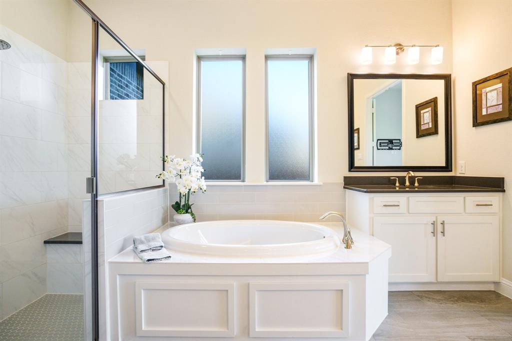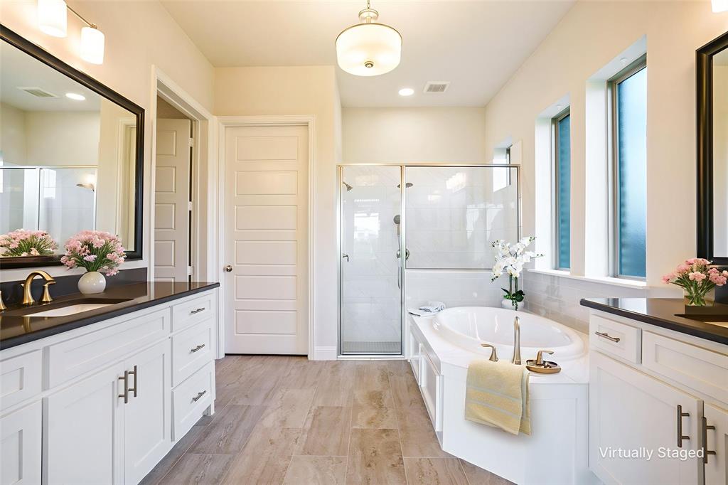 With four spacious bedrooms, each with its own private en suite bathroom, this home offers an ideal blend of privacy and togetherness. The primary suite is tucked away from the secondary bedrooms for quiet retreat, complete with a massive walk-in closet and tranquil views of the backyard oasis.